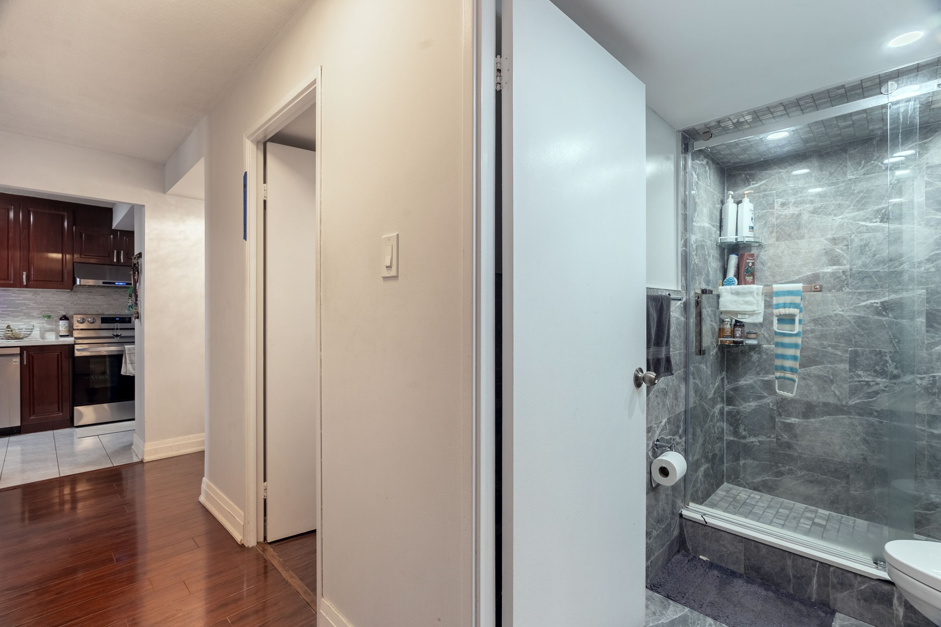 Step into this bright and spacious 2-bedroom + den condo designed for both comfort and convenience. The open layout is filled with natural light and extends onto a large private balcony-perfect for morning coffee, evening unwinding, or hosting family and friends. The versatile den easily serves as a home office, reading nook, or kids' study space, giving you the flexibility to suit your lifestyle. Inside, you'll love the updated kitchen featuring quartz countertops, new cabinetry, and 1-year-old appliances, along with a newly renovated modern bathroom equipped with a power panel shower system. The primary bedroom also offers a generous walk-in closet, providing excellent storage. Located in the vibrant victoria village community, you're just minutes from top amenities including fairview mall, shops at don mills, grocery stores, parks, and excellent schools. Enjoy nearby dining options, cafes, and community centres, along with easy access to ttc routes, major highways, and the upcoming eglinton lrt. This home is truly move-in ready and offers exceptional value with maintenance fees that include heat, electricity, water, basic cable, internet, and parking. A beautifully maintained space in a highly convenient location-your ideal toronto home awaits.