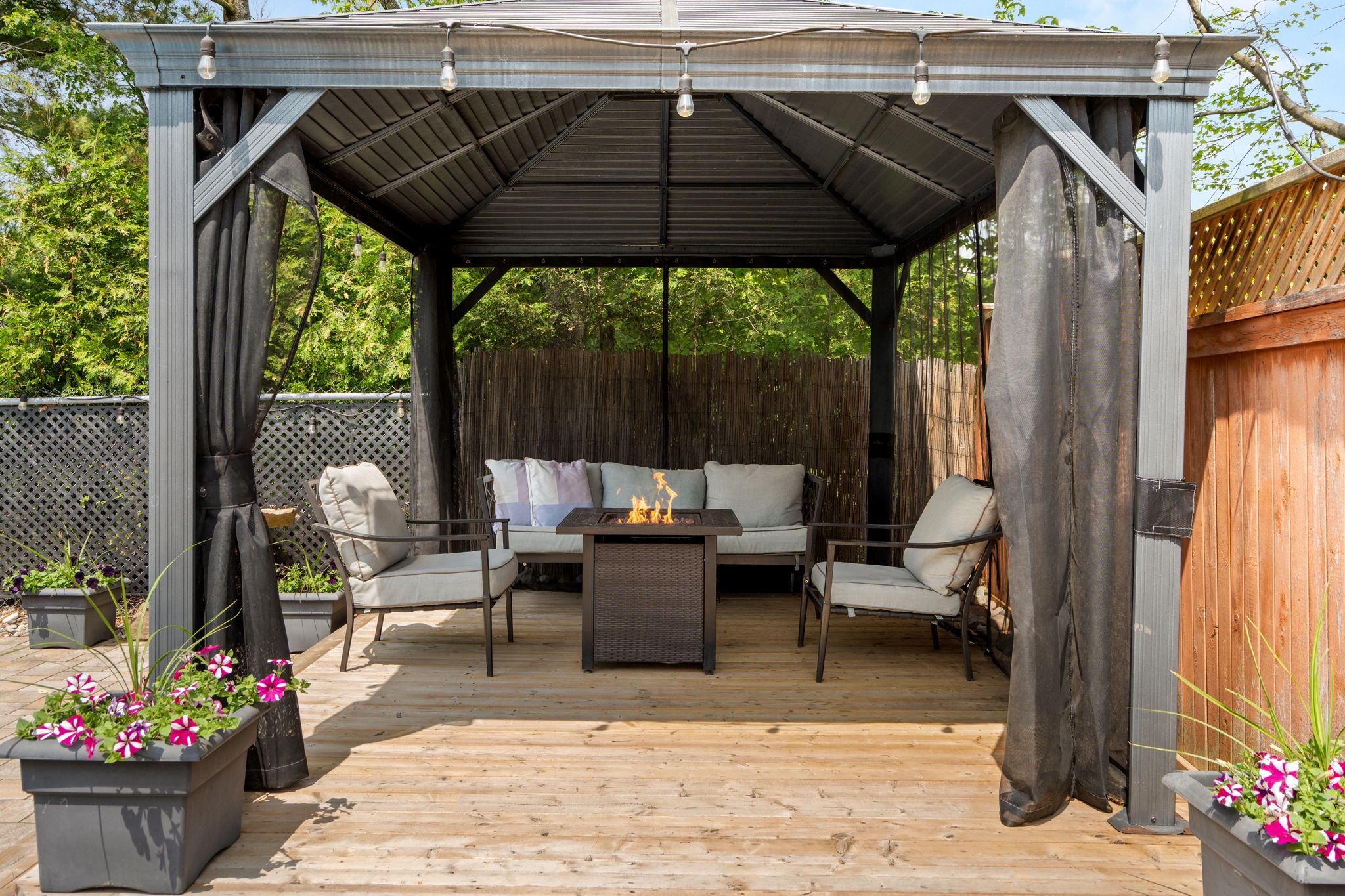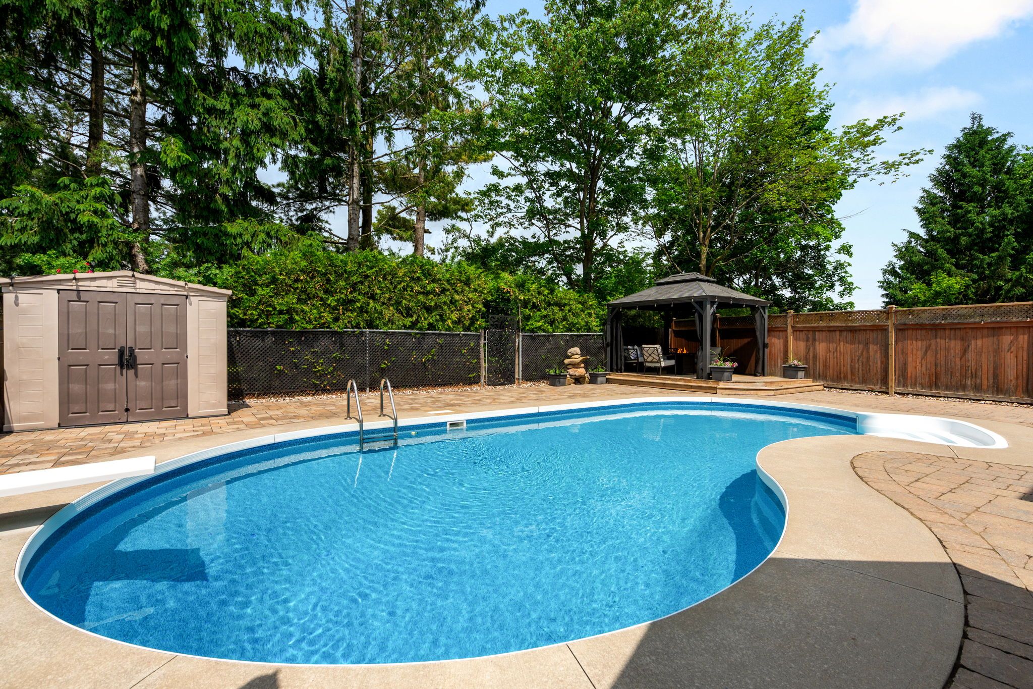• Stunning backyard with inground pool, hot tub, and gazebo for summer fun.