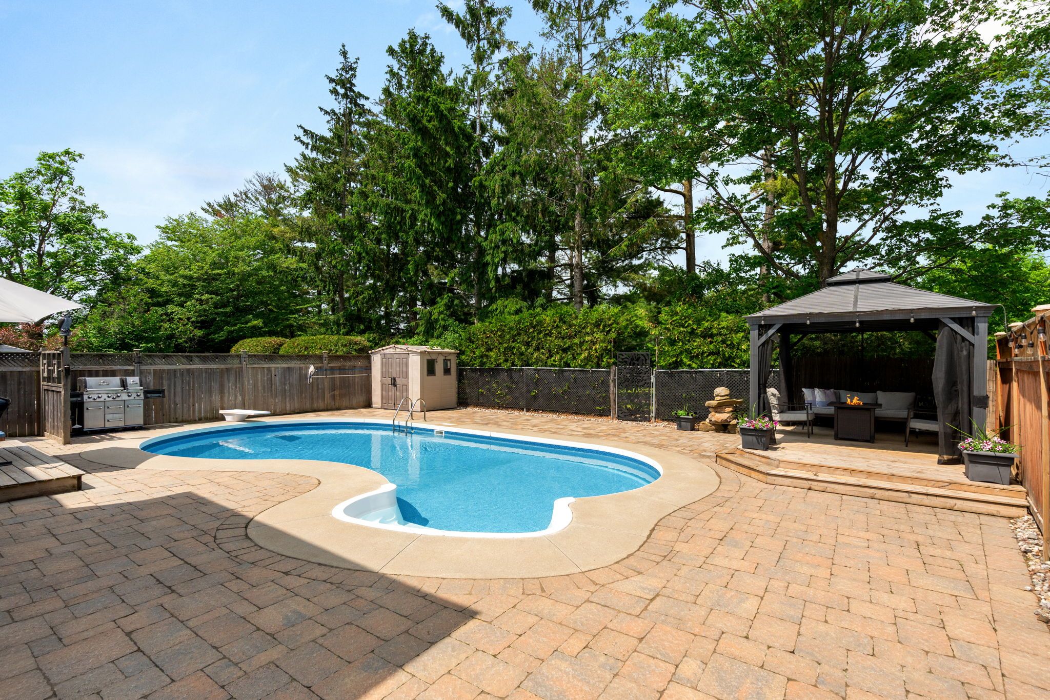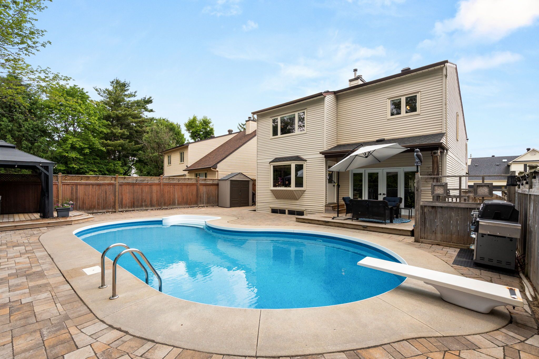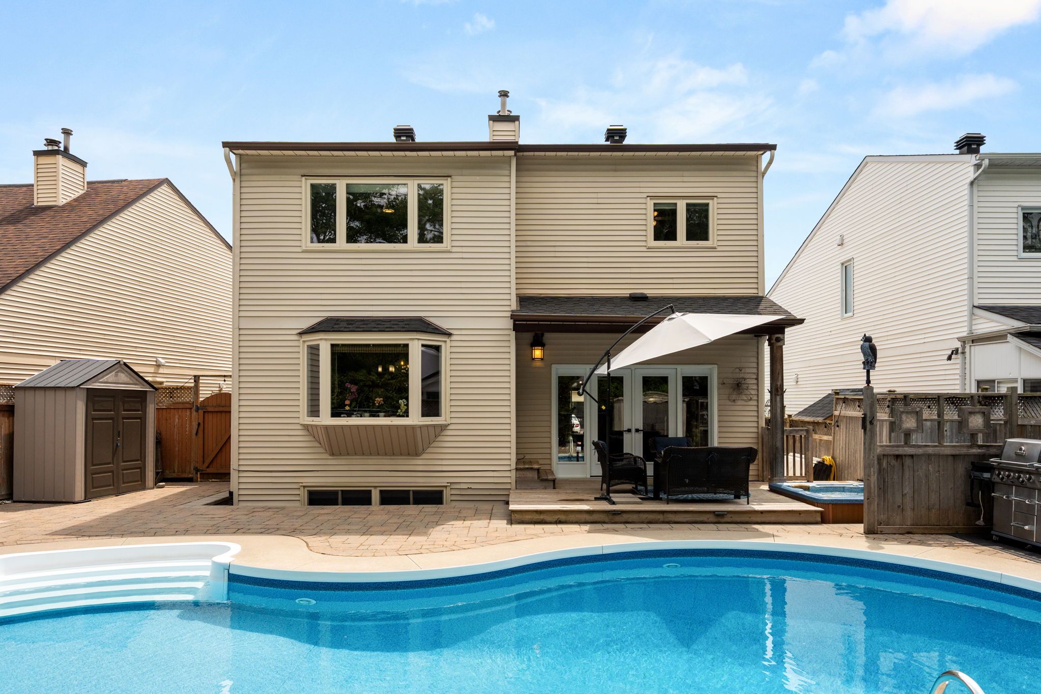 Welcome to 45 townsend drive - a beautifully updated family home on a premium lot with no rear neighbours in one of old barrhaven's most established neighbourhoods. Situated on a quiet, tree-lined street, the backyard here genuinely stops people in their tracks. The inground pool, hot tub, interlock patio, deck, and gazebo create the kind of outdoor space where summers get remembered. Fully fenced, beautifully landscaped, and completely private. Inside, the home has been updated in all the right places. Cherry hardwood flows through both the main and upper levels, giving the whole home a warm, cohesive feel. The renovated kitchen is the heart of the home - large island, excellent storage, and windows that look straight out to the pool. The living room is anchored by a wood-burning fireplace, and the layout is practical and easy to live in. Upstairs, the primary suite offers a walk-in closet and a beautifully renovated ensuite with a glass shower, soaker tub, and double vanity. Two more spacious bedrooms, an updated main bath, and a flexible bonus room - ideal as a fourth bedroom, home office, or playroom - round things out nicely. The finished basement gives you even more room to grow - a bedroom, 3-piece bath, laundry, and plenty of storage. Ideal for extended family or simply the extra breathing room a busy household needs. Top-rated schools, parks, and everyday amenities are all close by. Homes with resort-style yards on streets like this don't come up often.