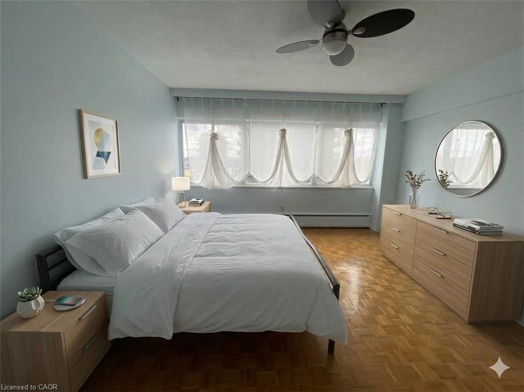 Bright, spacious, and full of potential! This 7th-floor corner unit offers a sun-filled 2-bedroom layout in a highly convenient waterloo location. Large windows bring in plenty of natural light, while the spacious semi-enclosed sunroom is the perfect spot to relax and enjoy warm summer days. The kitchen flows into a generous dining area, ideal for everyday living and entertaining. The primary bedroom features built-in cabinetry and a closet, and the second bedroom includes a walk-in closet for added storage. In-suite laundry adds to the comfort and convenience of this well-designed unit. Located directly across from westmount place mall, you're steps to shopping, bus routes, and the lrt, with uptown waterloo and local universities just minutes away. Condo fees include all utilities, heat, hydro, and water, making for easy, predictable monthly expanses. An excellent opportunity for first-time buyers, investors, or downsizers looking to add their personal touch. Great value in a prime location!