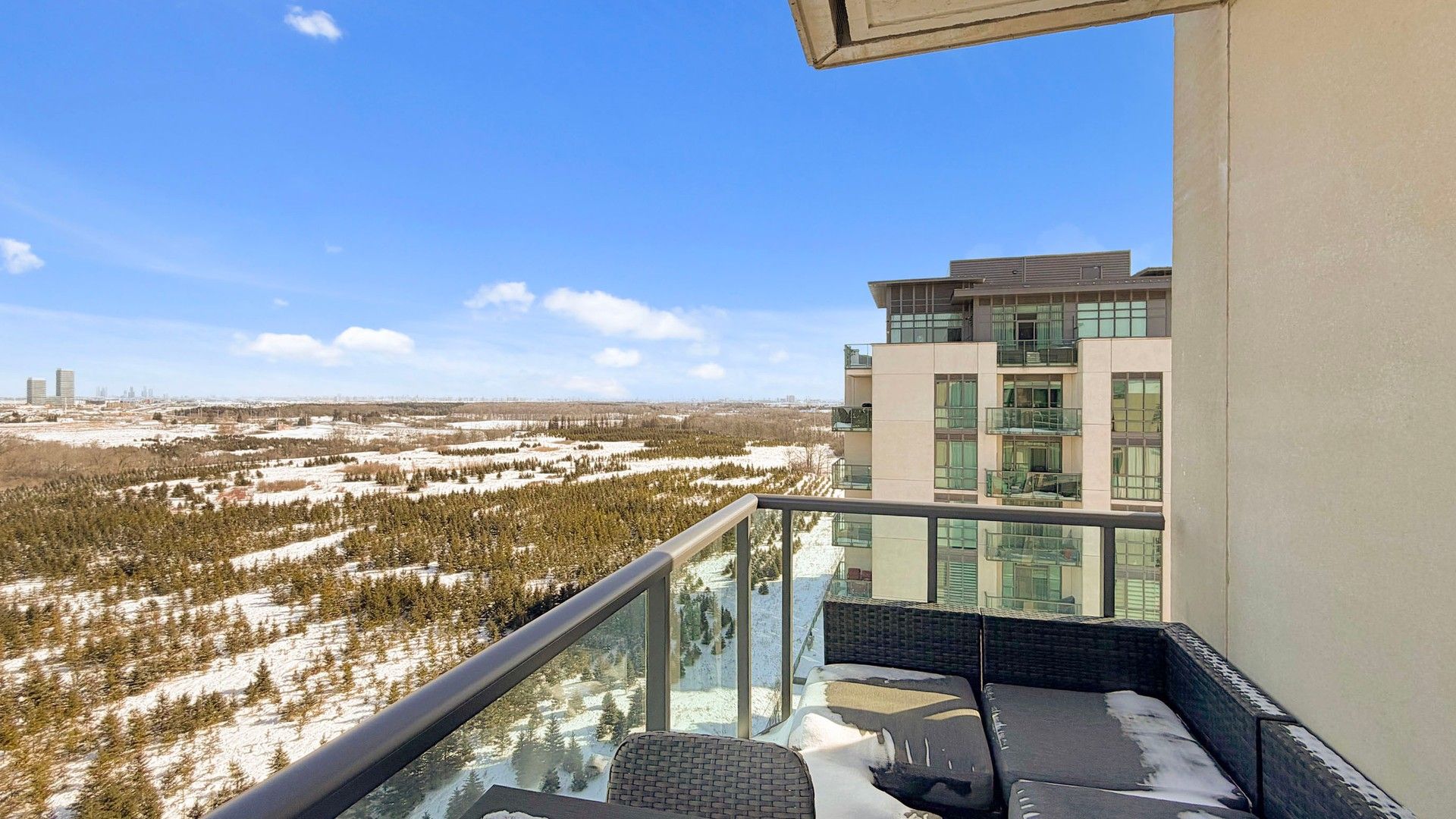 • Private balcony with unobstructed views of conservation area and skyline.