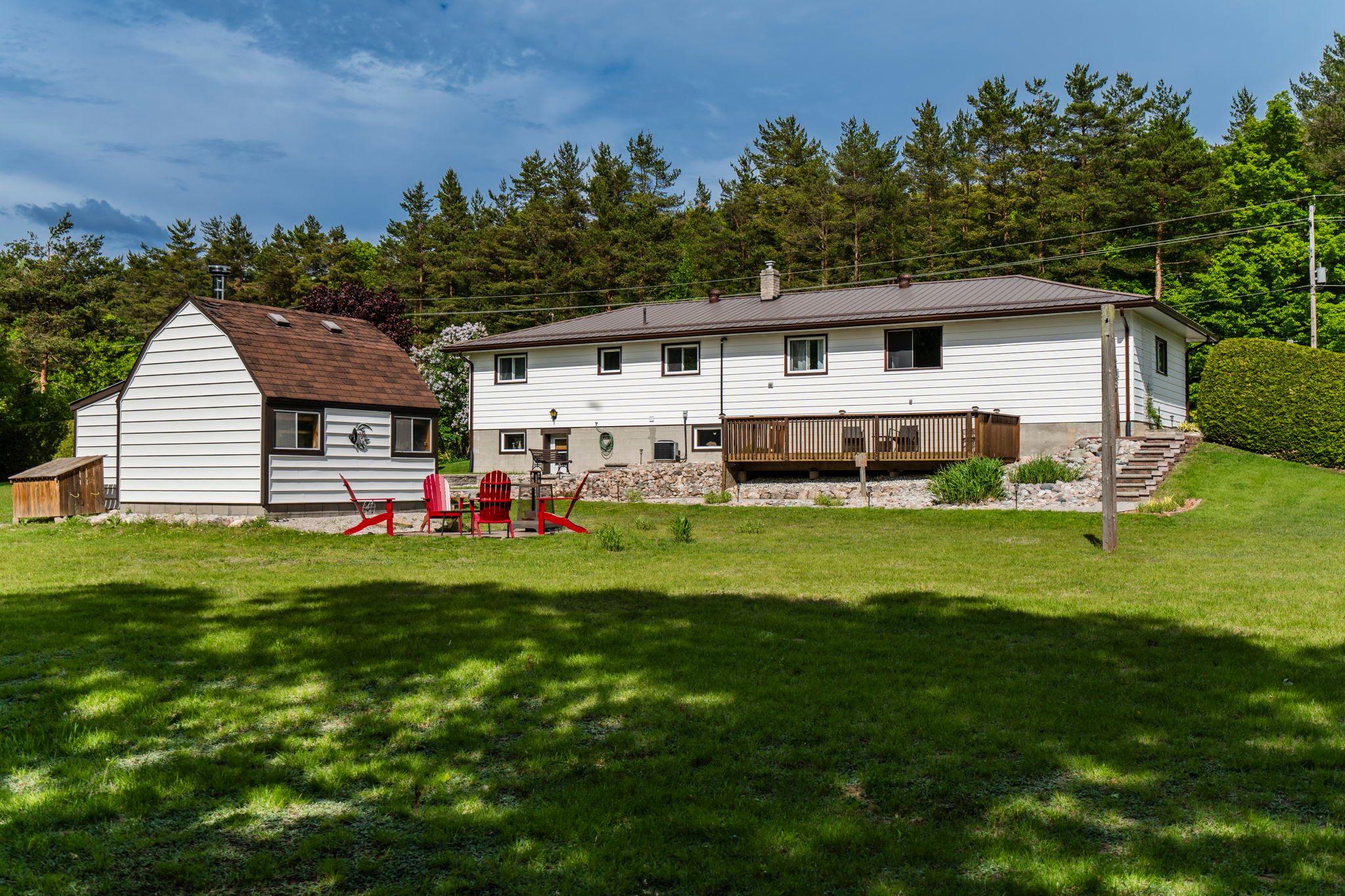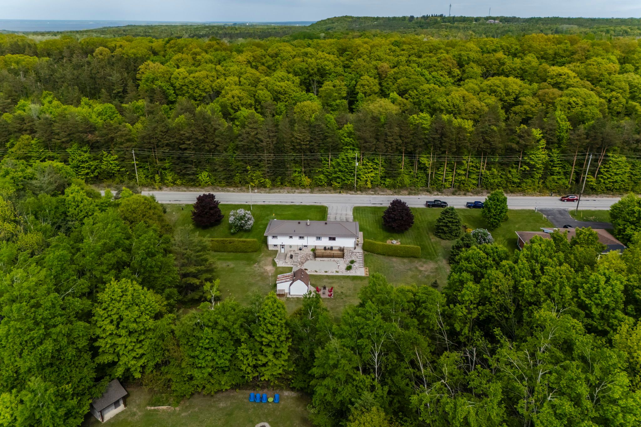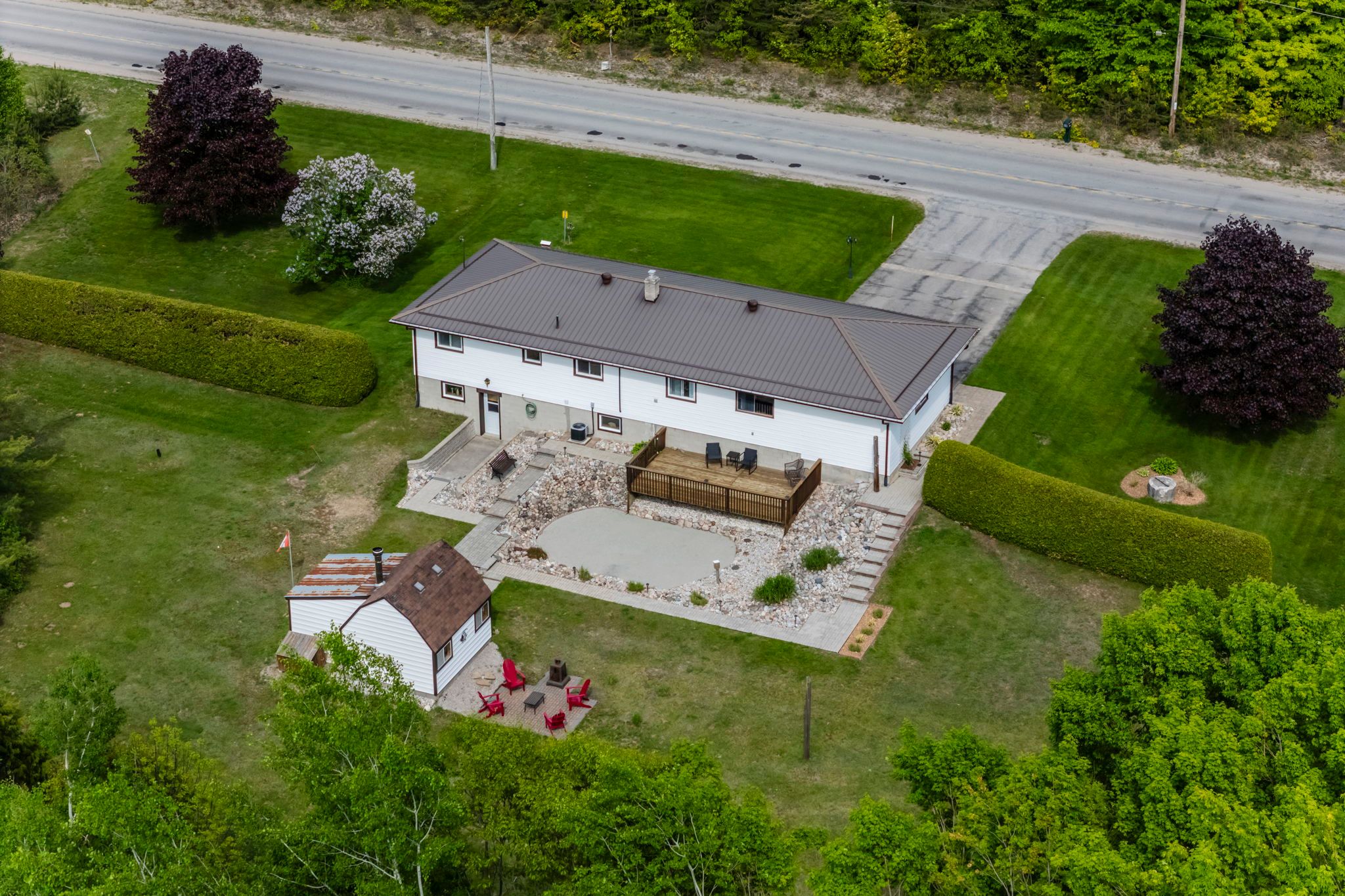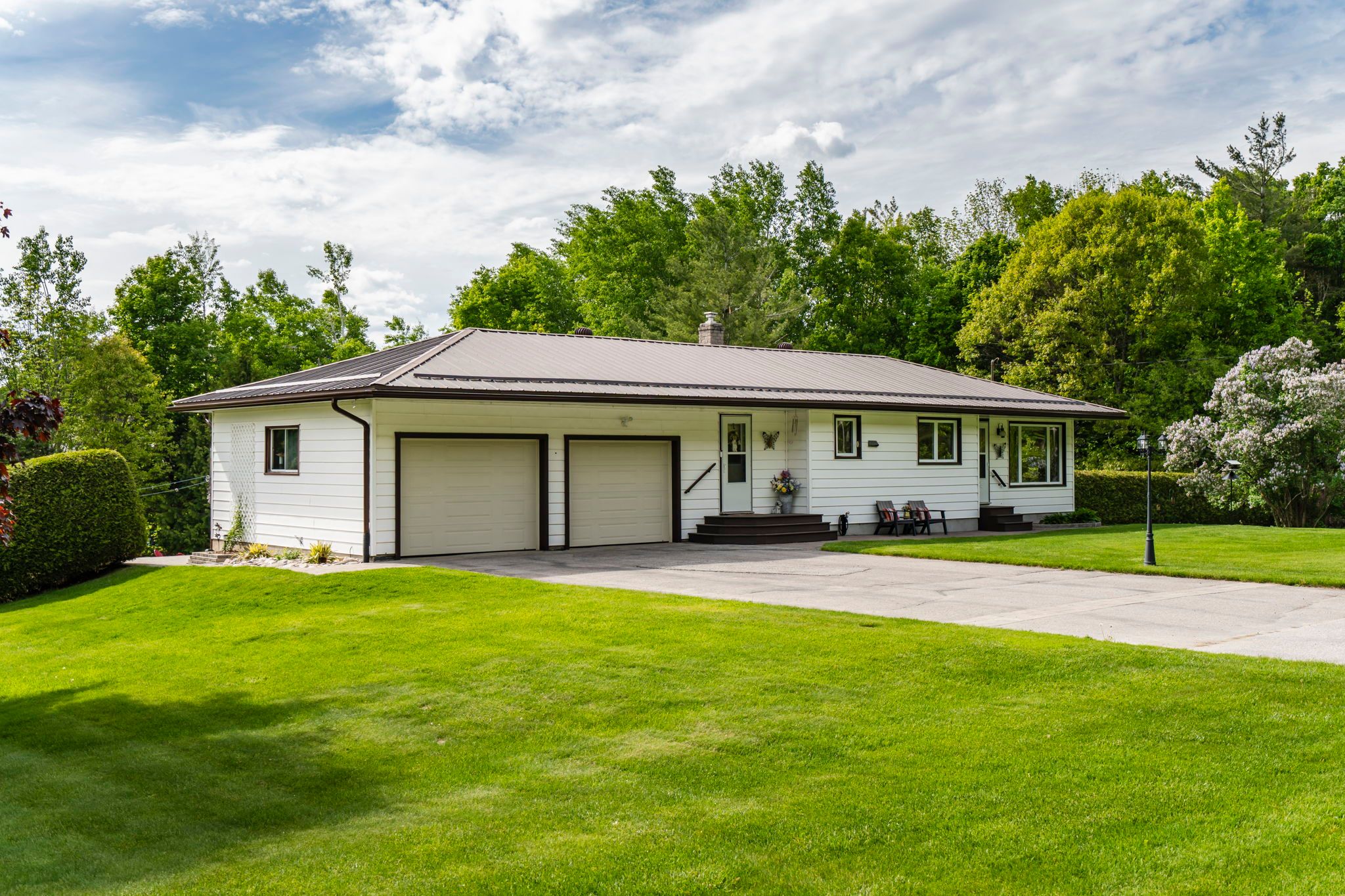 Charming 2-bedroom, 2-bath bungalow situated on a beautifully maintained 1-acre property insought-after tiny township, offering peaceful country surroundings with plenty of room to roamwhile still being conveniently close to town. This well cared-for home features a fullyfinished walkout basement with in-law capability, including space for a potential third bedroomand expanded living area. The main floor offers the convenience of laundry, along with agenerous double car garage and a detached workshop at the back of the property-perfect forprojects or additional storage. Notable features include a gas forced air furnace, municipalwater service, a long-lasting steel roof, and an expansive deck ideal for outdoor enjoyment. Just minutes from golf, beaches, trails, and everyday amenities, this property combines ruraltranquility with easy access to everything you need.