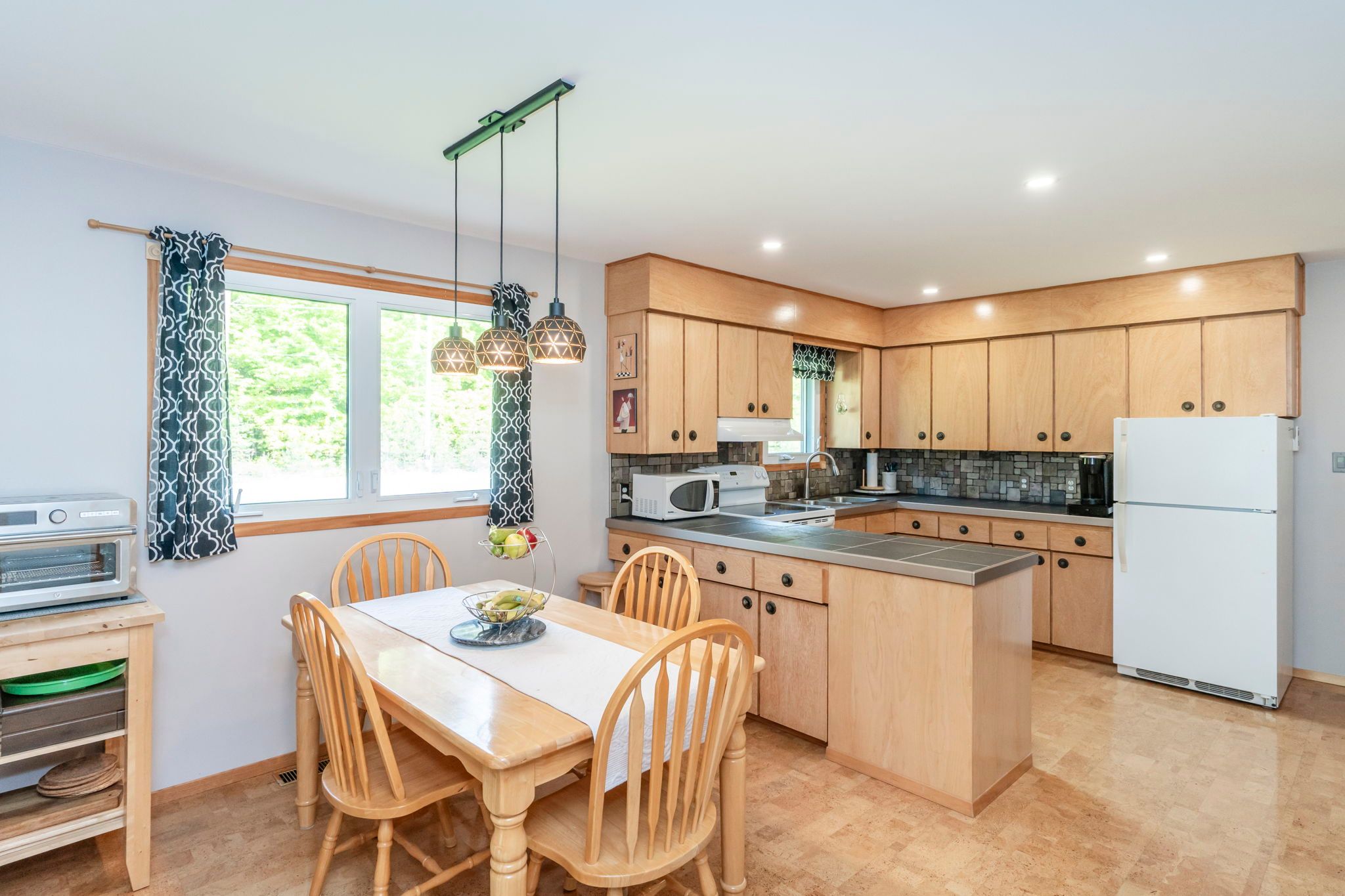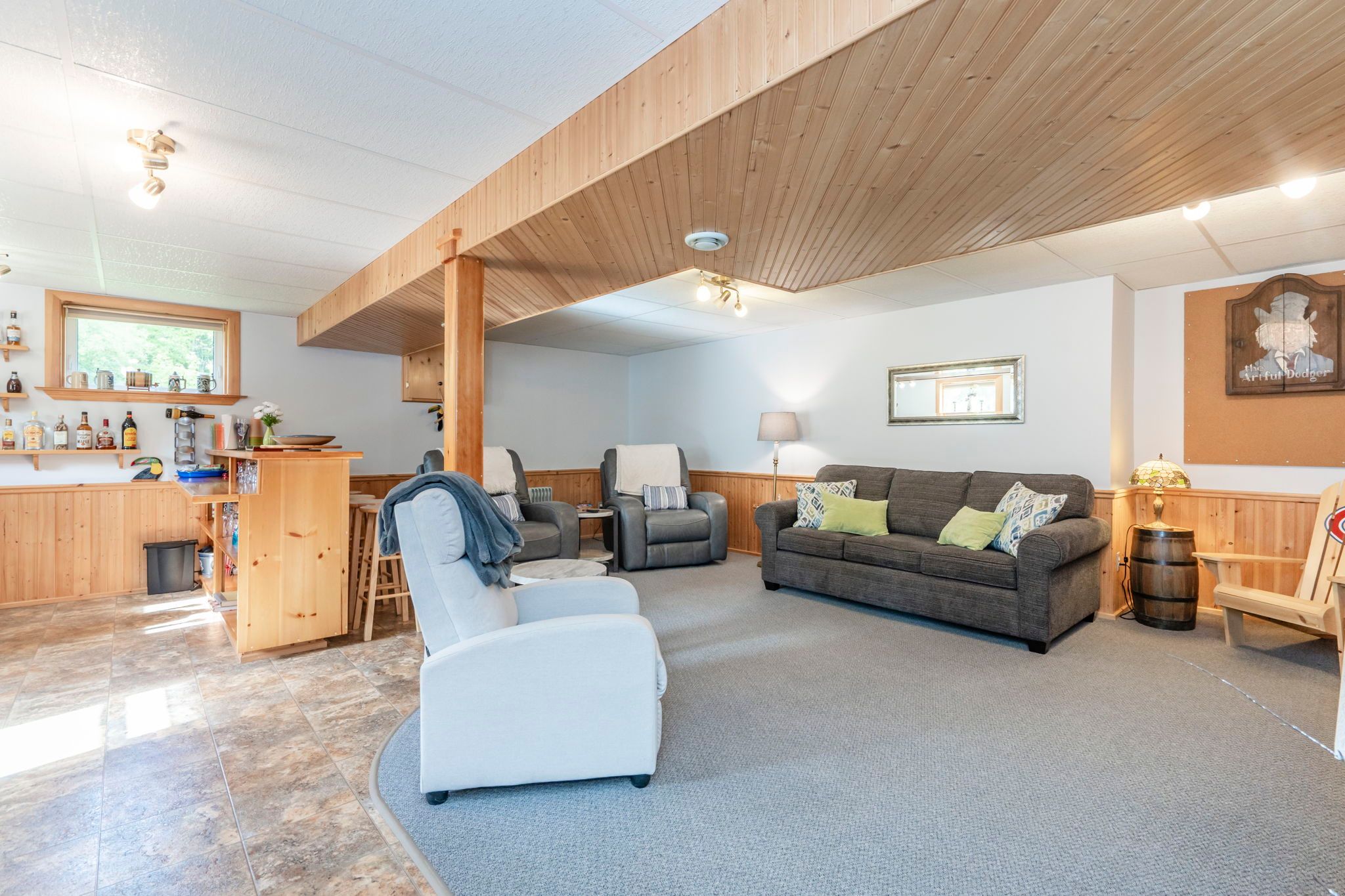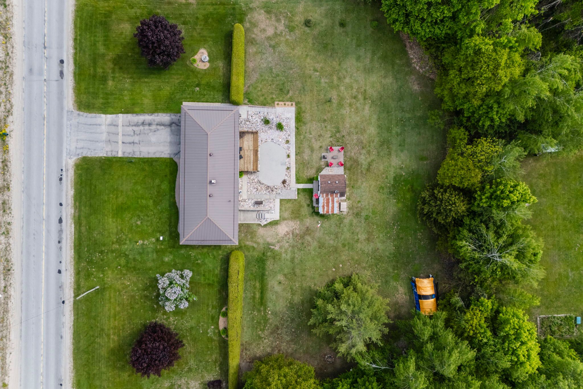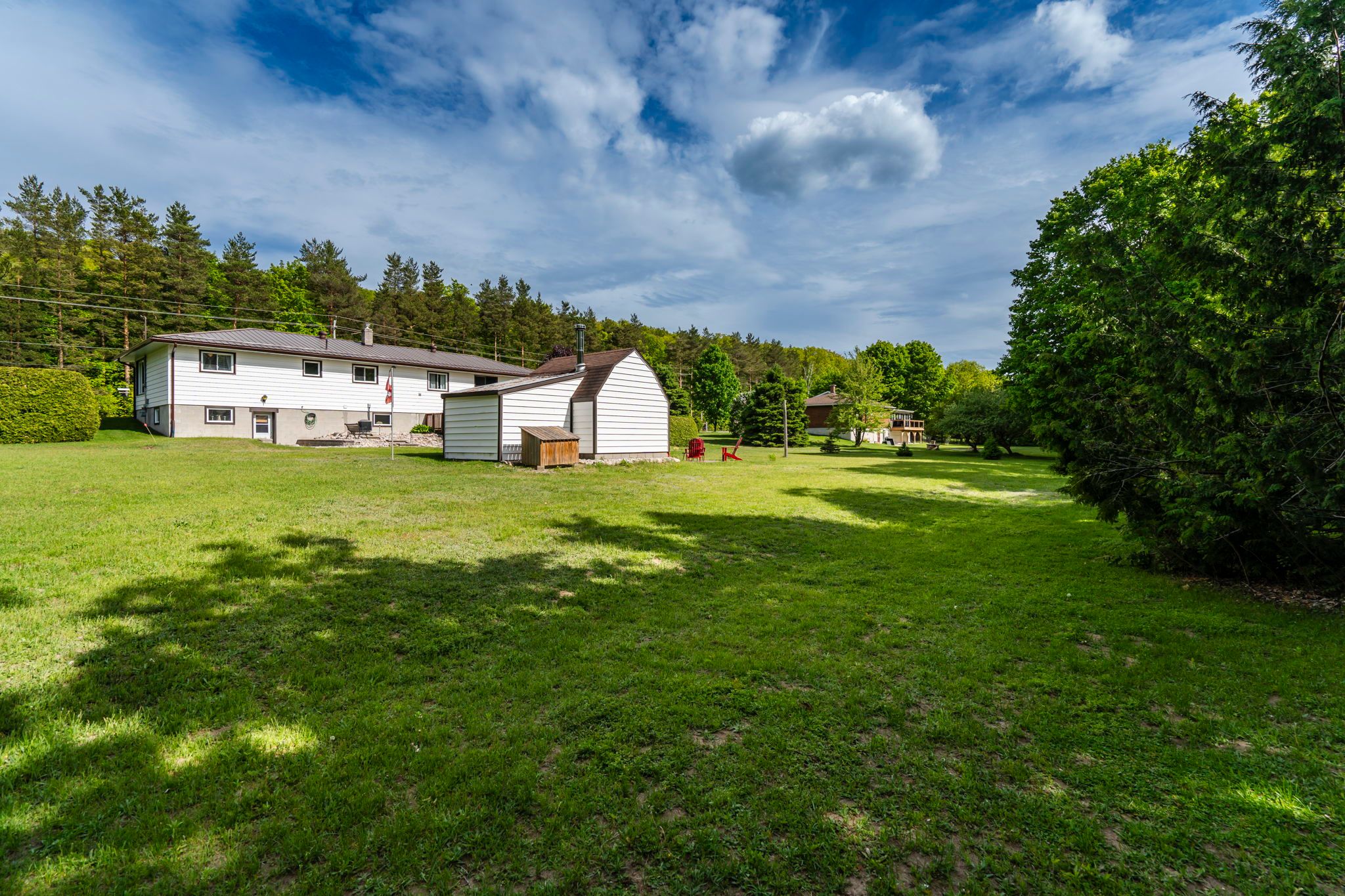 Charming 2-bedroom, 2-bath bungalow situated on a beautifully maintained 1-acre property insought-after tiny township, offering peaceful country surroundings with plenty of room to roamwhile still being conveniently close to town. This well cared-for home features a fullyfinished walkout basement with in-law capability, including space for a potential third bedroomand expanded living area. The main floor offers the convenience of laundry, along with agenerous double car garage and a detached workshop at the back of the property-perfect forprojects or additional storage. Notable features include a gas forced air furnace, municipalwater service, a long-lasting steel roof, and an expansive deck ideal for outdoor enjoyment. Just minutes from golf, beaches, trails, and everyday amenities, this property combines ruraltranquility with easy access to everything you need.