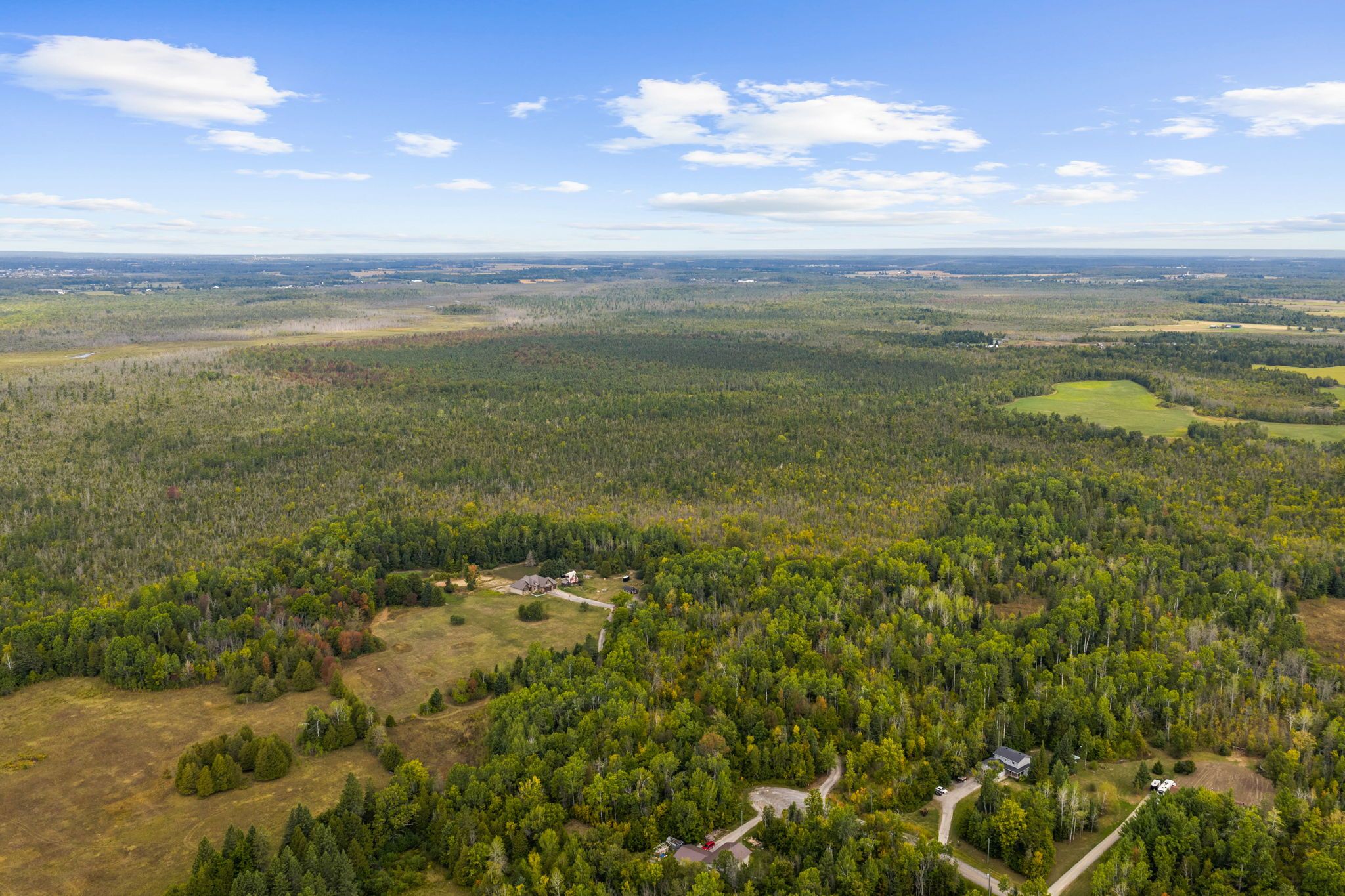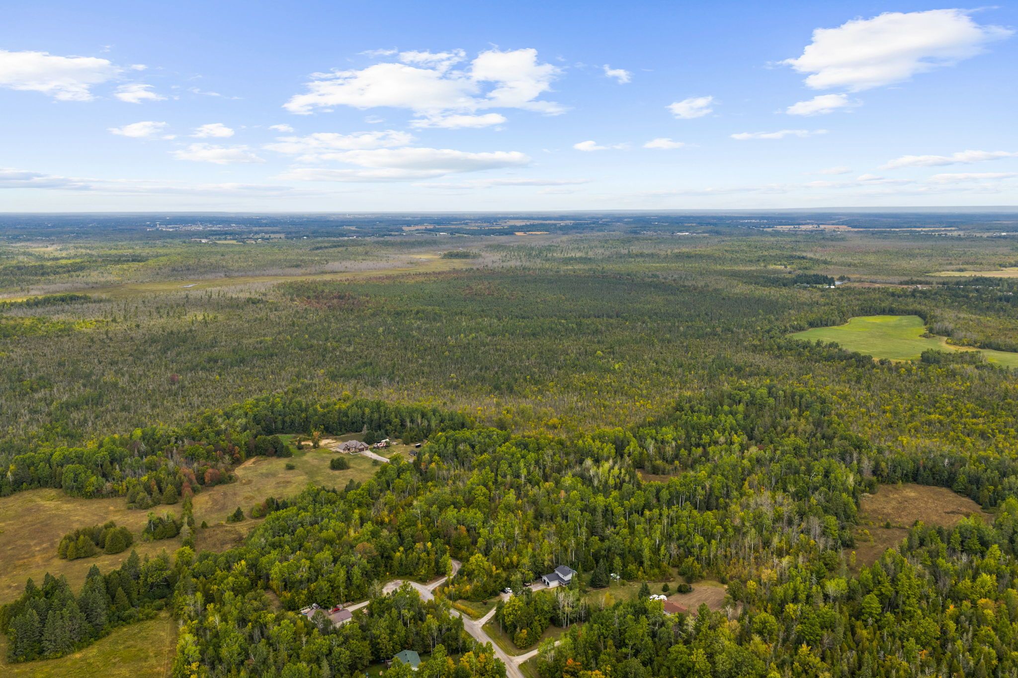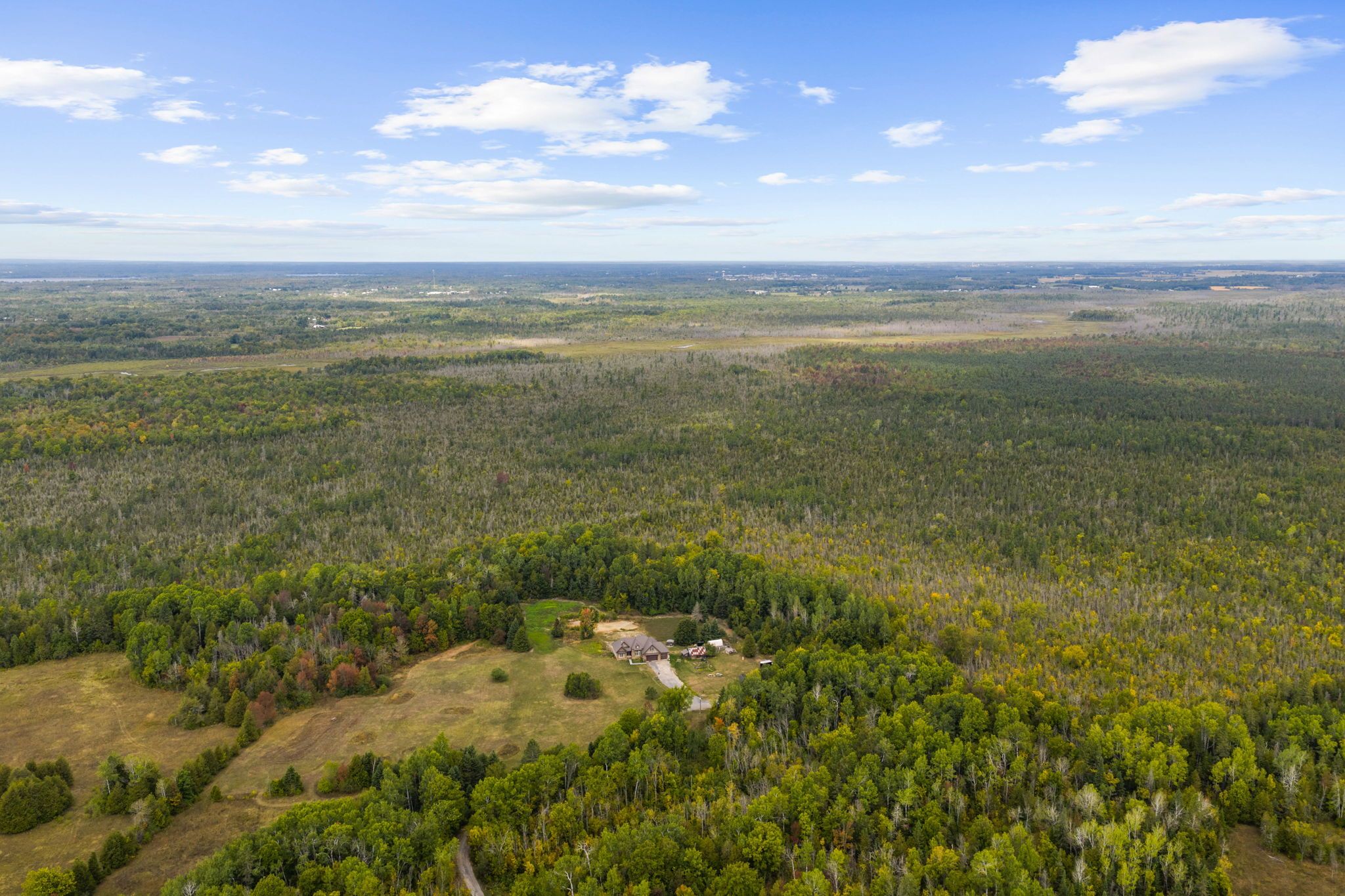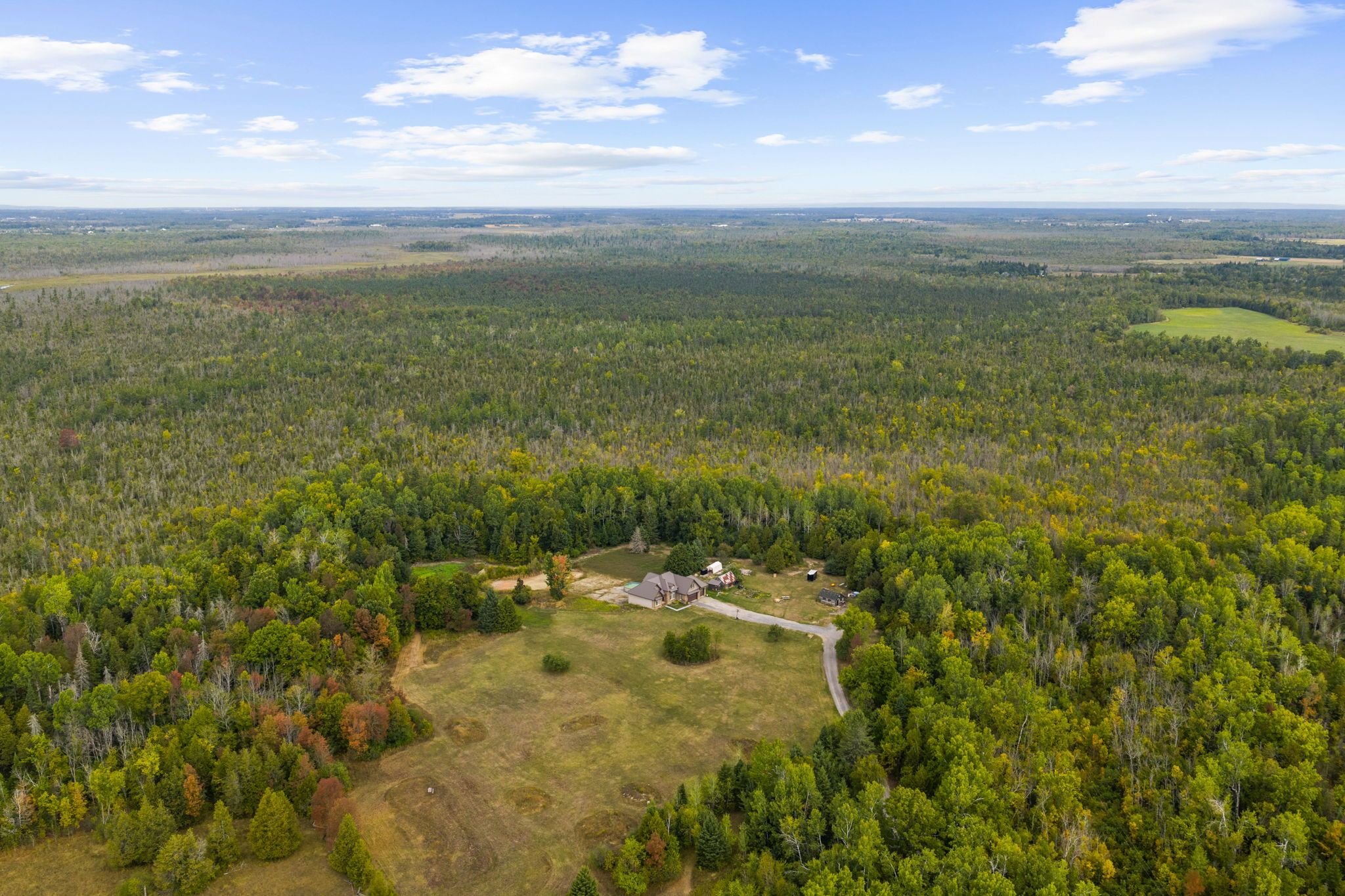 Welcome to your dream country escape! Nestled on nearly 300 acres of pristine land, this exceptional 5-bedroom, 3-bathroom walk-out bungalow offers the perfect blend of comfort, quality, and opportunity. Built approx 10 years ago to the highest standards, this home features icf construction from foundation to roofline, providing superior energy efficiency (ask about the r-value!) and incredible year-round comfort, topped with a lifetime steel roof for peace of mind. The spacious main floor boasts a high-end kitchen, with a bright dining area and walk-out to the elevated deck (ideal for morning coffee with wildlife views), a cozy living room, and three generous bedrooms including a private primary suite with ensuite bath. The two additional bedrooms share a full bath. A main floor office & bonus room above the garage give more flexibility. Below, the light-filled, walk-out basement offers radiant in-floor heating, two more bedrooms, a roughed in bathroom, and a family room that opens to a backyard oasis complete with a pond that freezes for winter skating & hockey. Dual heating systems, propane and a large outdoor wood furnace, keep utility bills in check. Cut your own wood from the land and heat the home for next to nothing! Radiant floor heating extends into the insulated triple car garage. The wood furnace is powerful enough to heat additional structures, offering excellent flexibility for future development. Outbuildings include a cabin with a wood stove and bunkbeds, perfect for guests or a rustic retreat. There's also a large barn with dual rafters for storage or hobby use. With hydro capacity to support a second home and zoning that permits one, the potential for expansion or multi-generational living is real. Trails wind through the landscape, teeming with deer, moose, turkey, and even the occasional bear, a true paradise for nature lovers, hunters, and those seeking peace and privacy. Contact the listing agent for a full list of premium construction details.