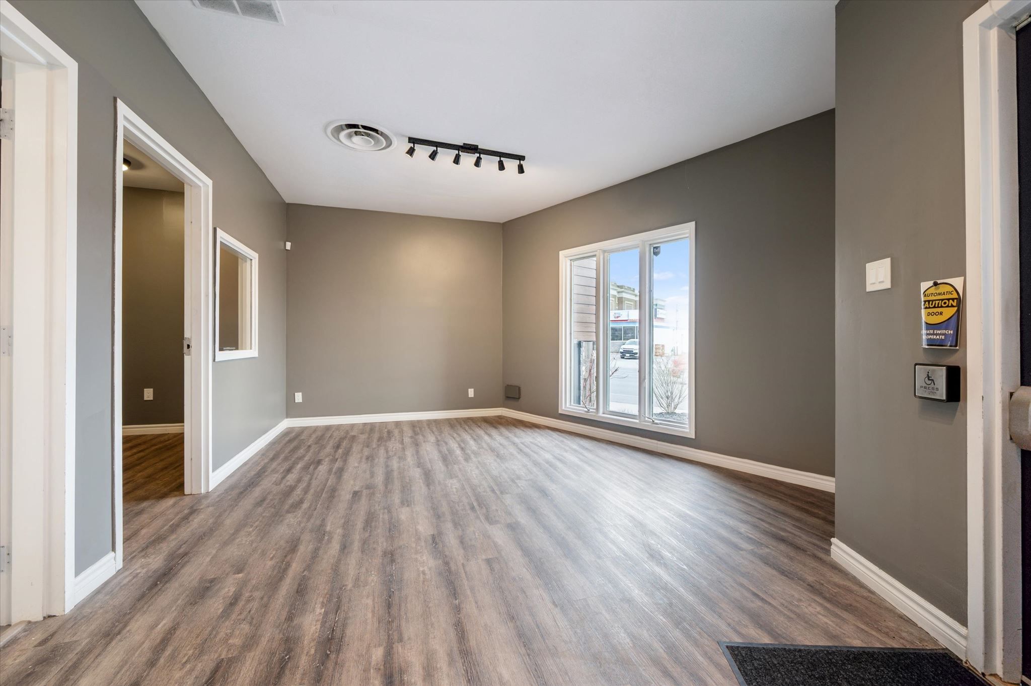 High-profile freehold commercial opportunity offering exceptional visibility and versatility for a wide range of business uses. This well-maintained property features an open-concept layout with a spacious retail showroom or lobby, a private office, and additional open space that is ready to be customized to suit the new owner's vision and needs. The building also has a kitchen area and a convenient 2-piece washroom. Converted to be wheelchair accessible, the building is designed for functionality and customer convenience, with ample on-site parking for approximately 12 vehicles. Numerous updates include a new roof-mounted hvac system installed in 2025, a flat pvc membrane roof approximately 12 years old and refreshed metal siding/exterior finishes completed in 2021. Additional improvements include blown-in attic insulation, freshly painted and a sewer backup valve. An excellent opportunity to own a move-in-ready commercial building in a prominent location with strong curb appeal, flexible interior space, and valuable upgrades already in place.