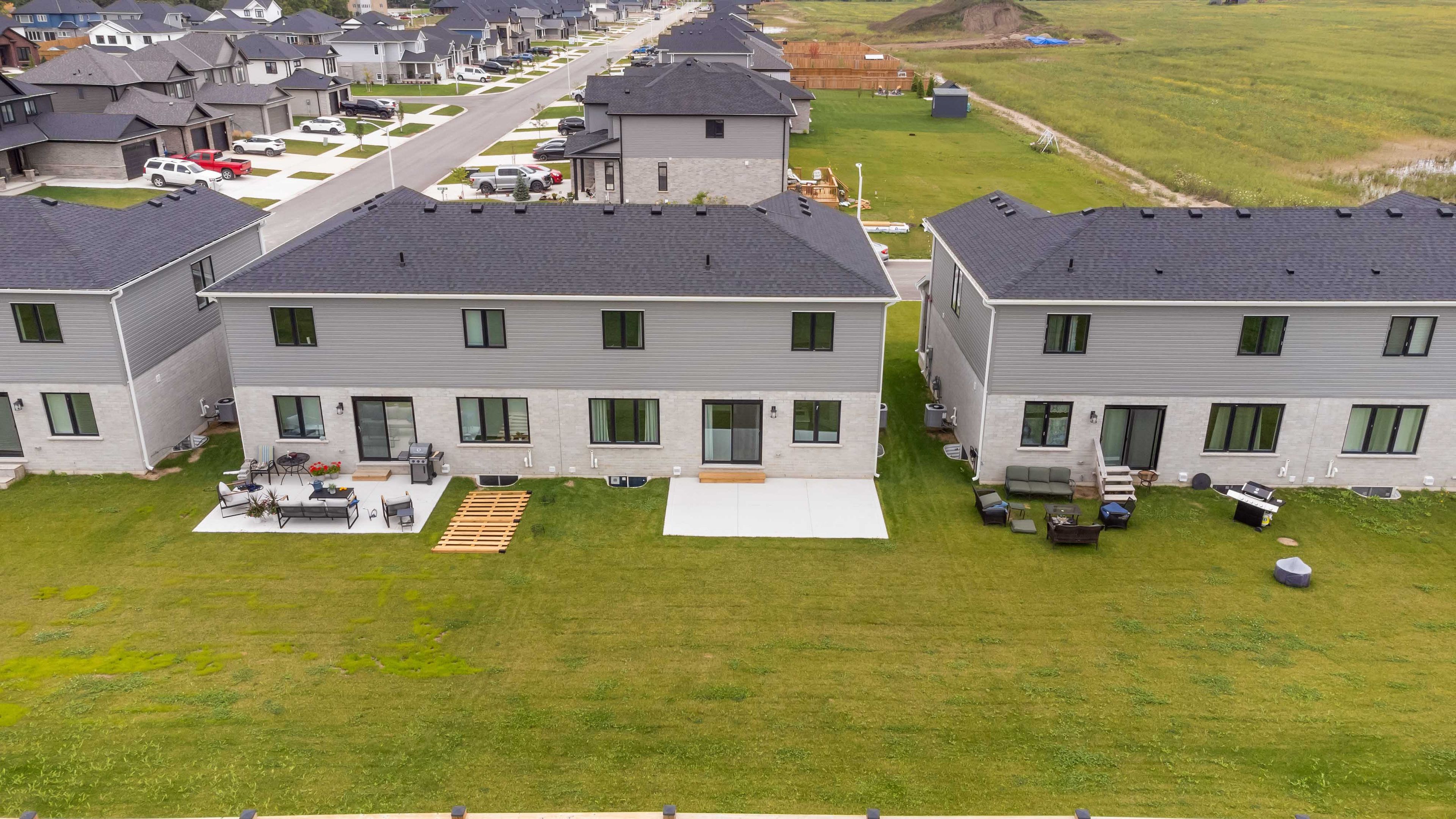 This stunning, better than new 2-storey semi-detached home offers 1,736 sq. Ft. Of beautifully finished living space and an attached 2-car garage. Perfectly suited for a growing family, this property combines modern elegance with functionality and comfort. Step inside to an open-concept main floor that's perfect for entertaining. The custom kitchen designed by casey's creative kitchens features carrara marmi quartz countertops, high end ss appliances, beautiful gold details, and an island reimagined from the original floor plan to create even more space in this already generous layout. The main floor also includes a 2-piece bathroom and a massive laundry/mudroom with inside entry to the garage. Upstairs, you'll find three spacious bedrooms - each a great size - including an oversized primary suite with a large walk-in closet and a 3-piece ensuite featuring marbled hexagon tiles and an upgraded adaptable hand-held wand shower fixture. Every finish has been thoughtfully chosen, with exquisite touches and tasteful upgrades throughout. The unfinished basement offers development potential, with room to add an additional bedroom, a bathroom (rough-in already in place), and a generous recreation area. Outside, enjoy a deep lot with plenty of green space, a deep concrete driveway, and freehold ownership with no condo fees - offering both freedom and value! Located under 10 minutes from highway 402, and just 15 minutes to sarnia or 30 minutes to strathroy, this home is close to schools, shopping, and a family-friendly park with a splash pad. This home must be seen to be truly appreciated!