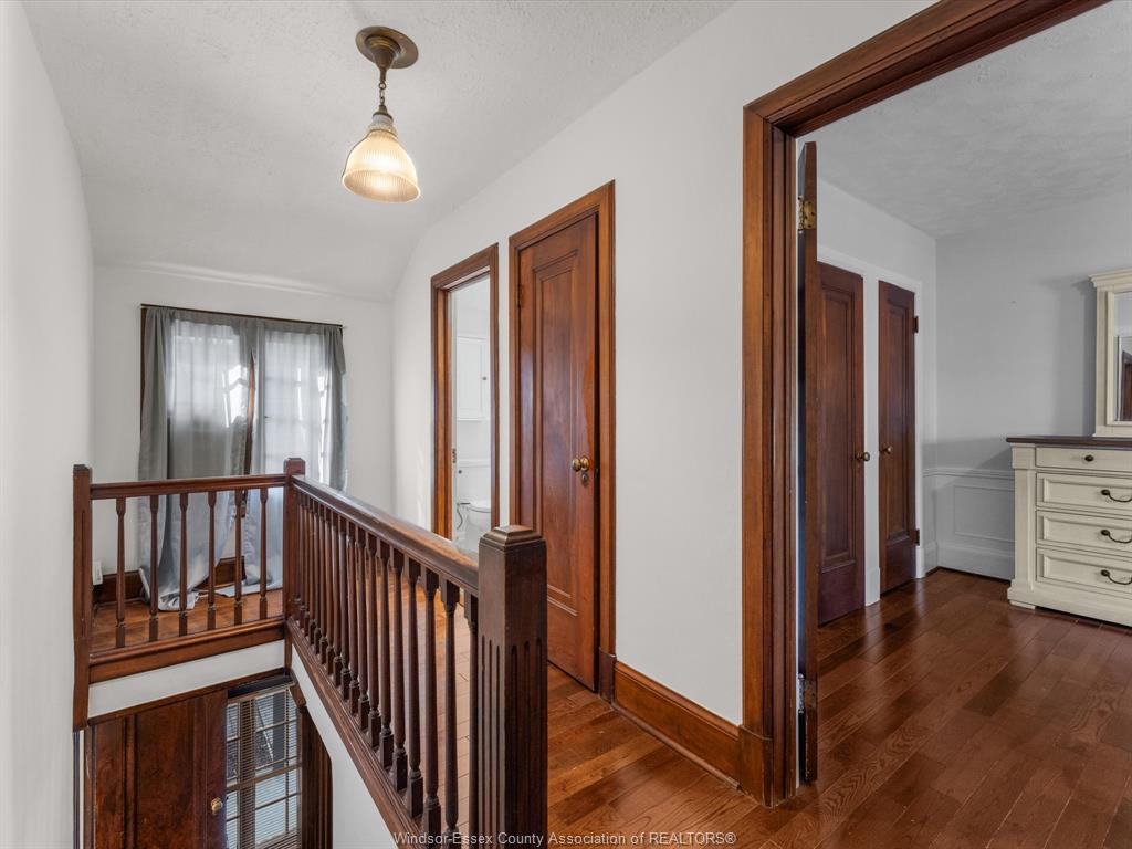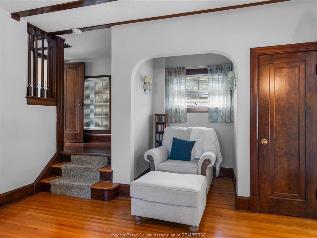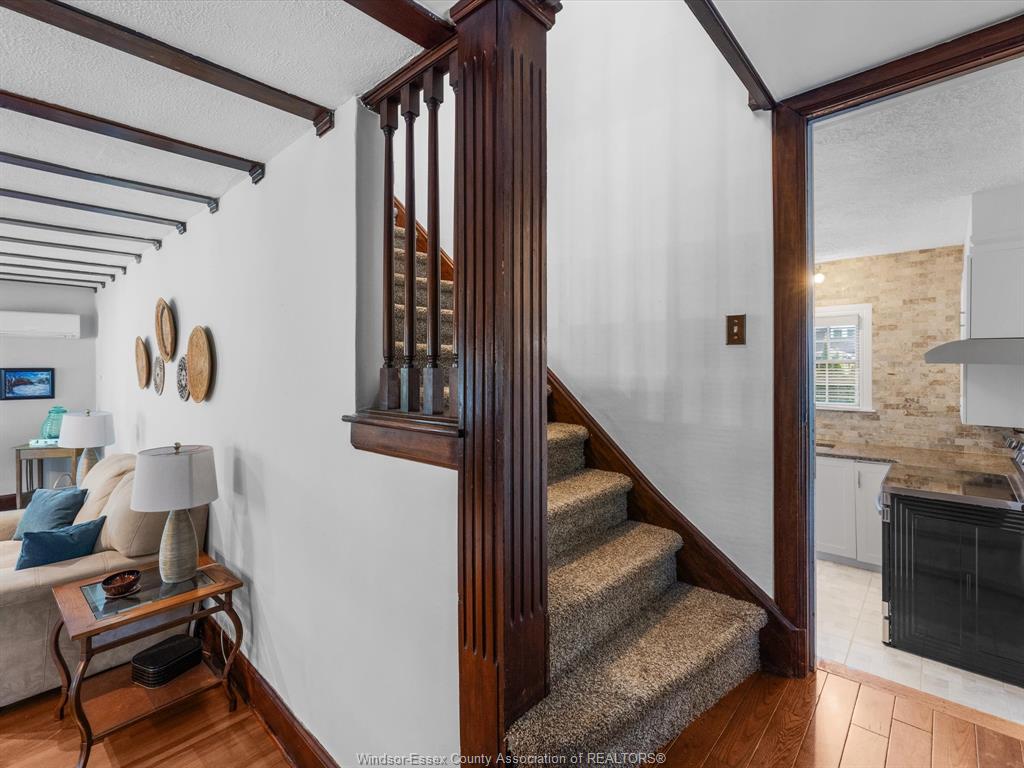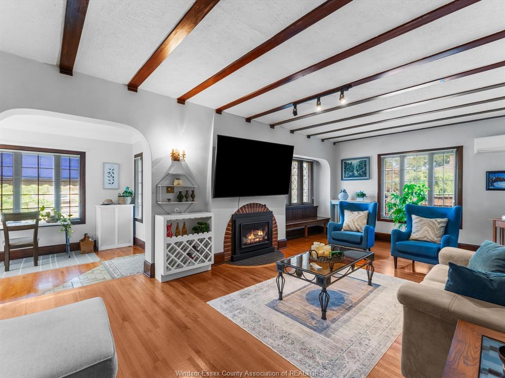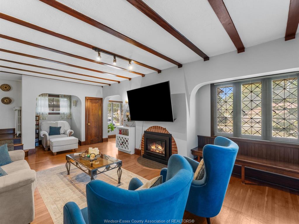 Welcome to 450 matthew brady in prestigious olde riverside. This 3-bedroom, 3-bath home offers timeless charm with modern comfort. The main floor features stained glass windows, a cozy gas fireplace, den, updated kitchen with dining area, and a family room with a second fireplace. Patio doors lead to your private, fully fenced yard with tranquil gardens. Upstairs offers 3 bedrooms and a full bath, while the finished basement adds a 3-piece bath, rec room, office/den, laundry, and ample storage. Just steps from the waterfront and minutes to boutique shopping, trails, parks, schools, and transit, this rare riverside gem is ready to welcome you home.