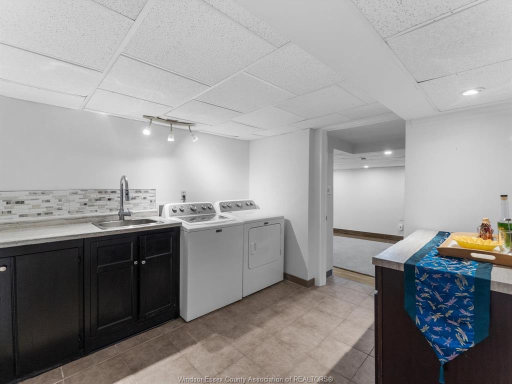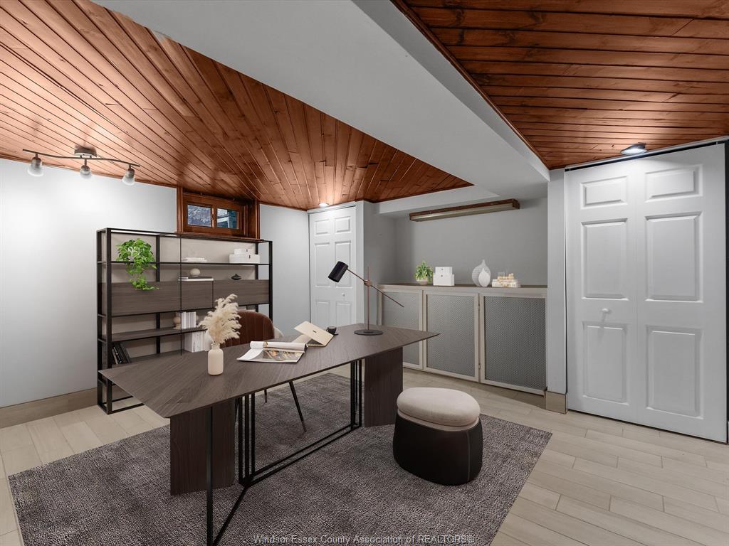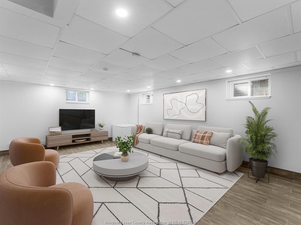 • Finished basement includes rec room, office, and extra bath.
