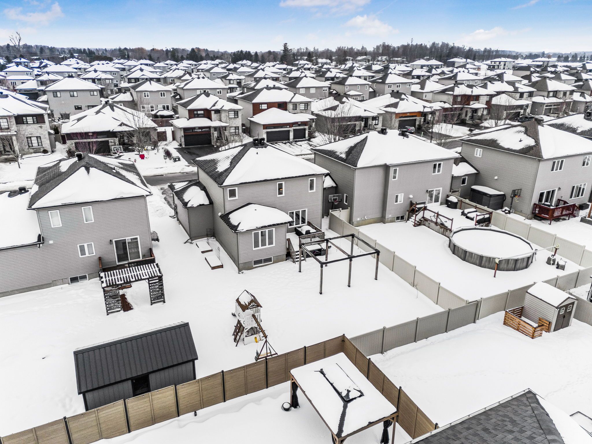 Open house sunday jan 18, 2-4pm. Where timeless character meets modern design, this stunning embrun home exudes style & warmth in every corner. From the moment you step inside, the magazine-worthy main floor impresses with its bright, open-concept layout & thoughtfully curated finishes throughout. The dream kitchen anchors the space, featuring a large center island, a walk-in pantry, and seamless flow into the sun-filled dining area with patio doors-perfect for entertaining & everyday living. The cozy yet modern living room is highlighted by an elegant gas fireplace, creating a warm & inviting atmosphere. A convenient main-floor powder room, inside access to the garage, and a dedicated fourth bedroom-currently used as a bright home office-complete this level. Upstairs, you'll find three generously sized bedrooms, two full bathrooms, and second-floor laundry for added convenience. The primary suite is a true retreat, offering a sleek five-piece ensuite, a spacious walk-in closet, and showcasing premium upgrades including a stunning white oak staircase and wide-plank 7" engineered white oak flooring-high-end finishes that elevate the home's overall design. Nearly all lighting, mirrors, and bathroom and kitchen fixtures have been thoughtfully upgraded, adding to the home's polished, modern feel. Outside, the backyard is designed for both function and relaxation, featuring a large 18-foot interlock patio complete with a tojagrid pergola secured with sono tubes beneath the patio, along with retractable privacy side and top screens. A designated christmas light plug on the soffit, controlled by an interior switch, adds a thoughtful seasonal touch. The partially fenced yard offers the ideal setting for outdoor gatherings, summer bbqs, and relaxing evenings. Ideally located in a prime embrun neighbourhood close to parks, schools, recreation facilities, shopping, & all essential amenities-this exceptional home truly checks every box. Don't miss your chance to make it yours.
