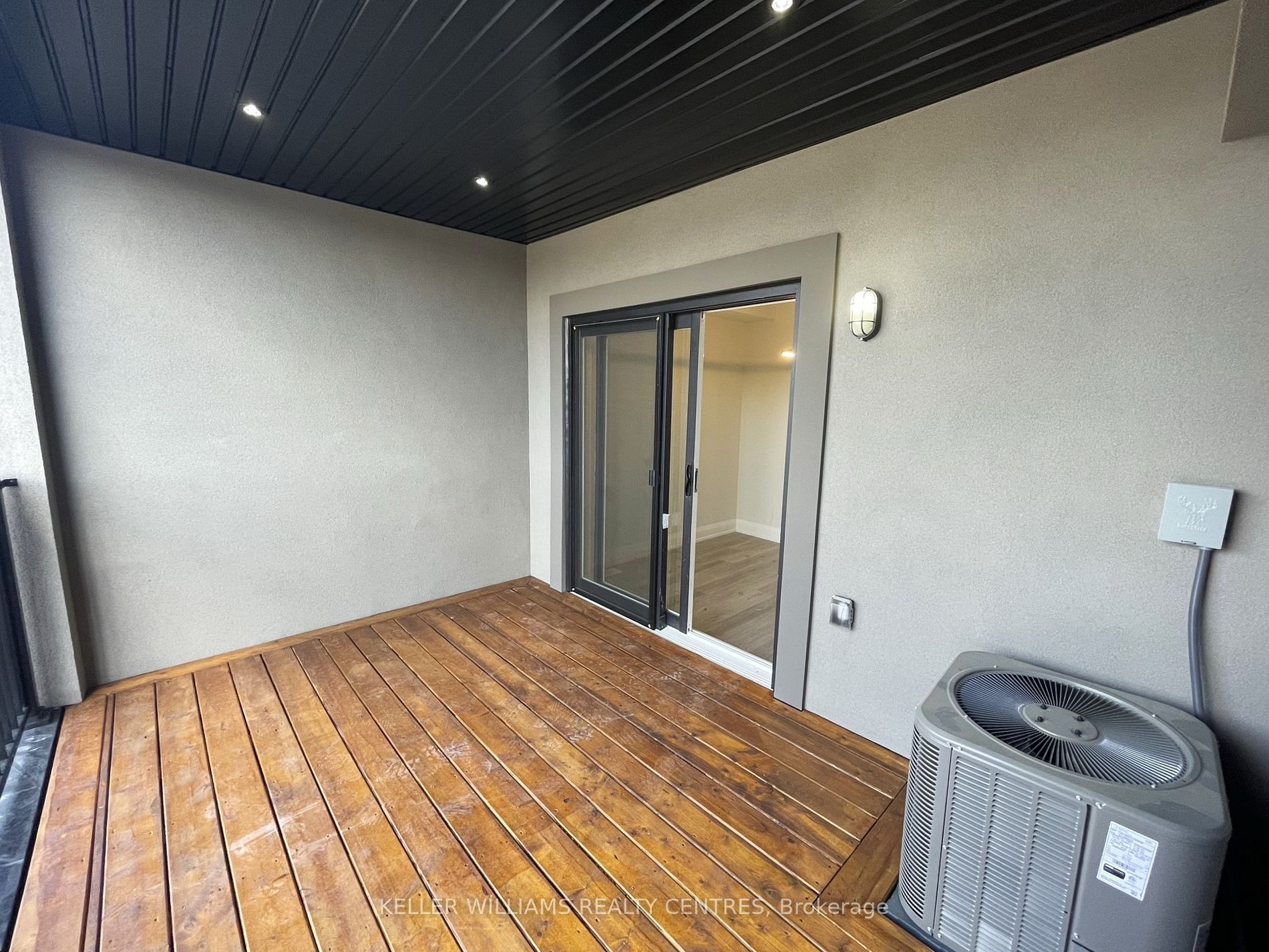 • Large balcony equipped with pot lighting and a cozy electric fireplace.