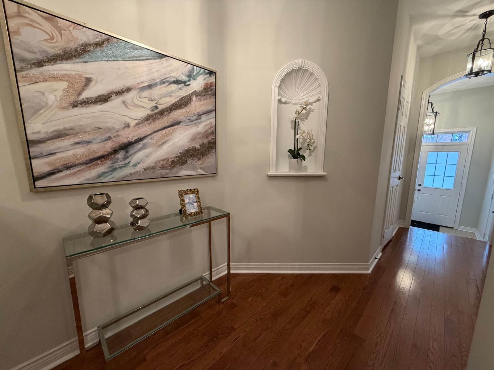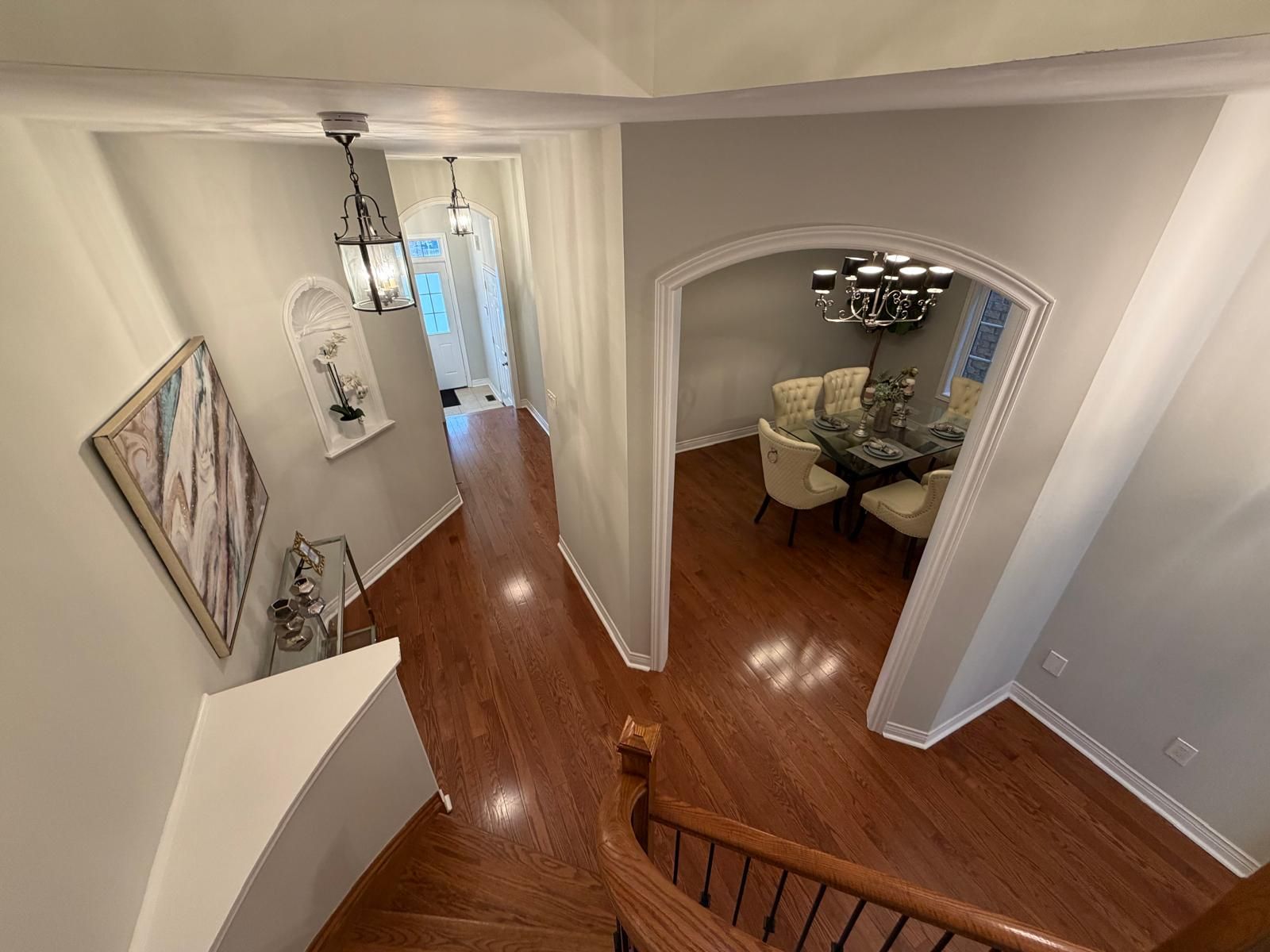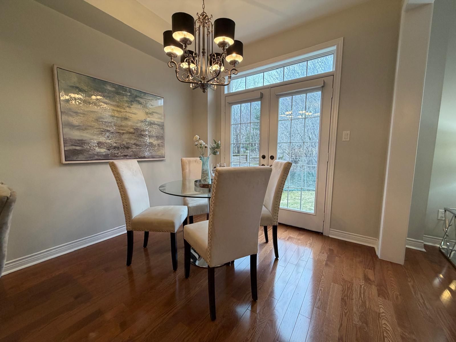 • Elegant hardwood flooring throughout the main level with high ceilings.