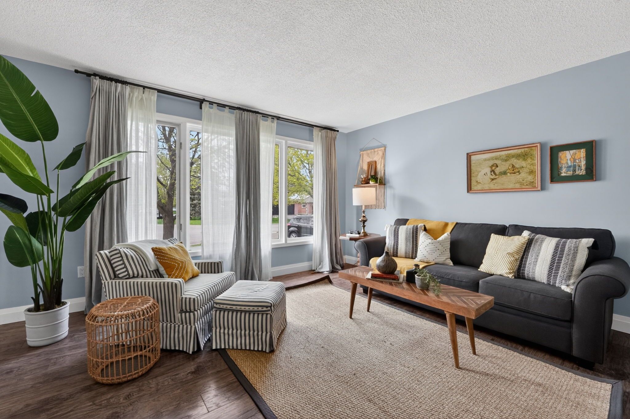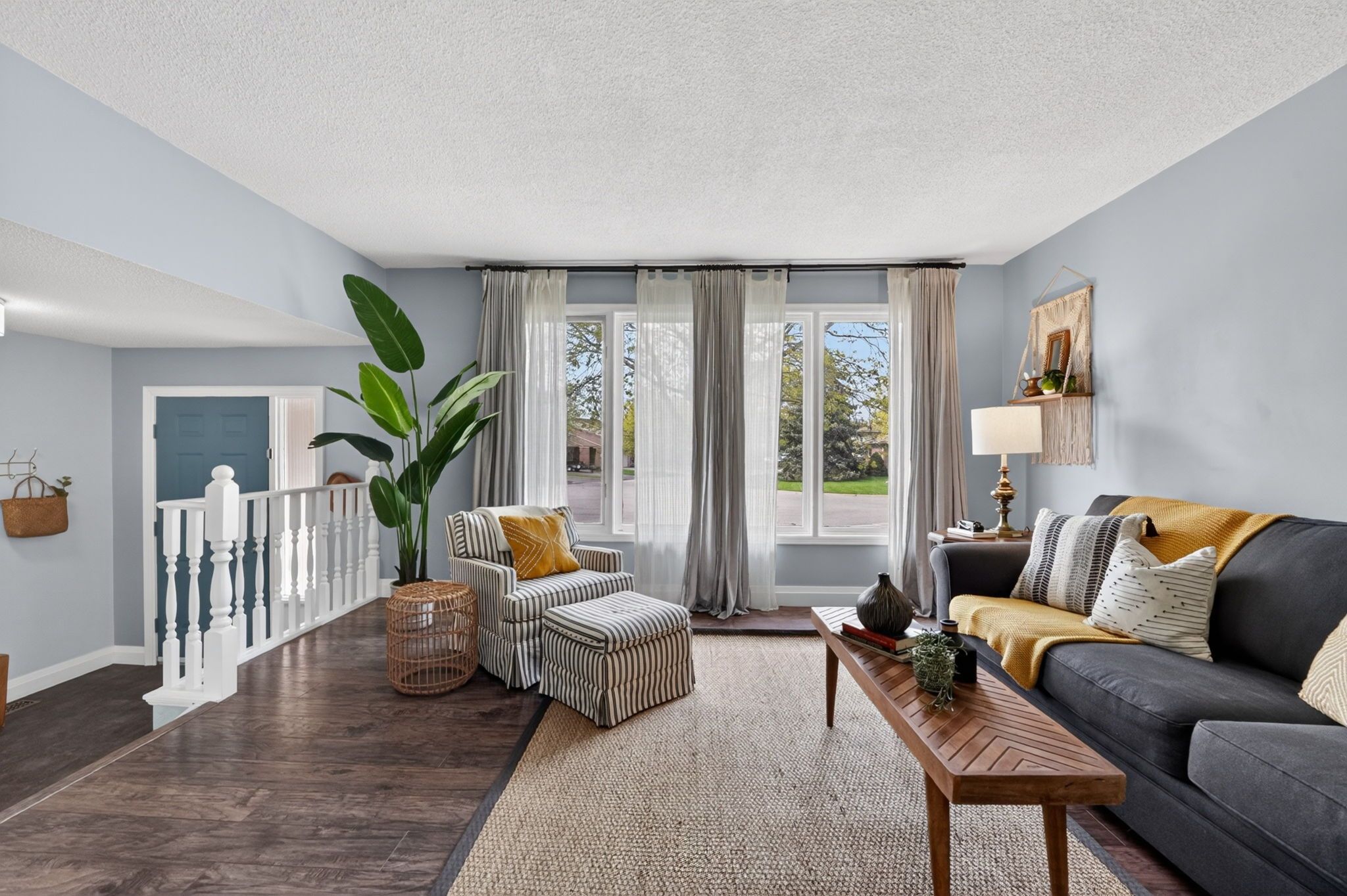 • Three separate living spaces offer flexibility and comfort.