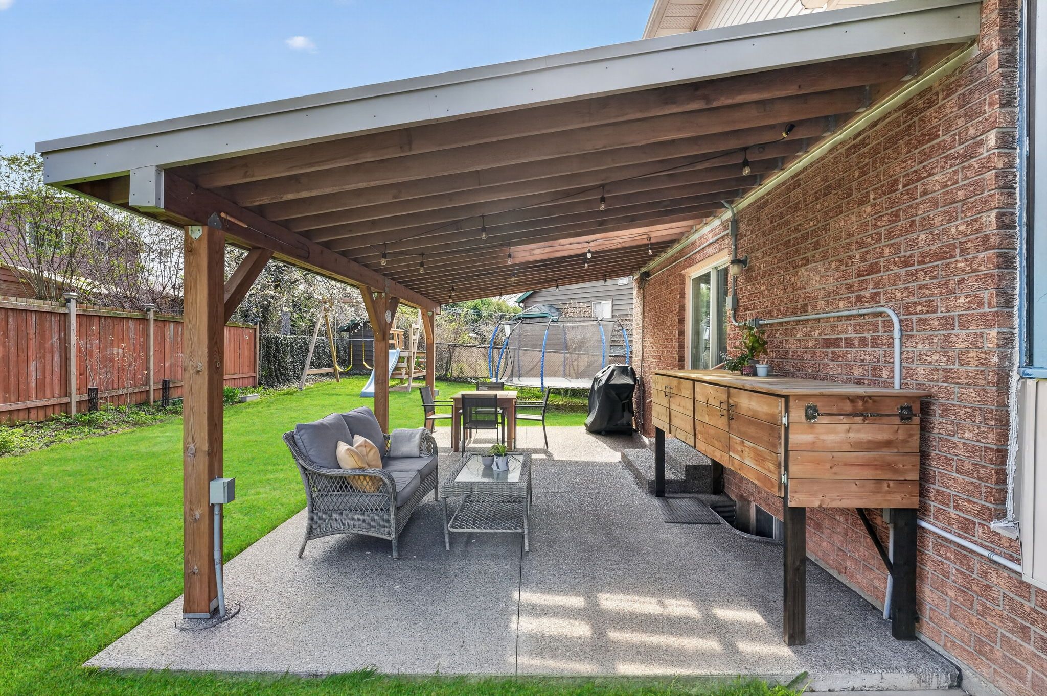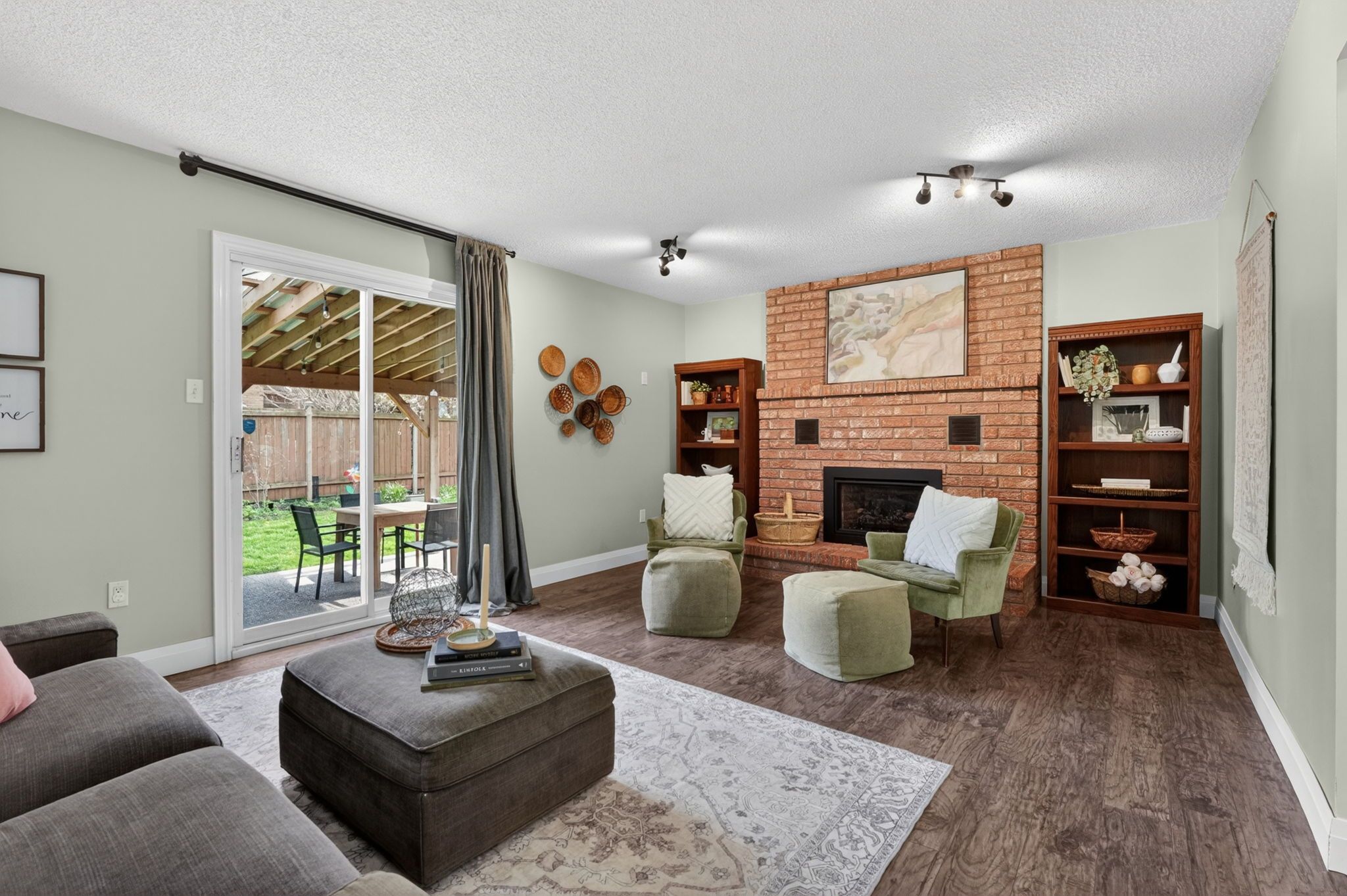 • Updated features include a gas fireplace and large covered patio.