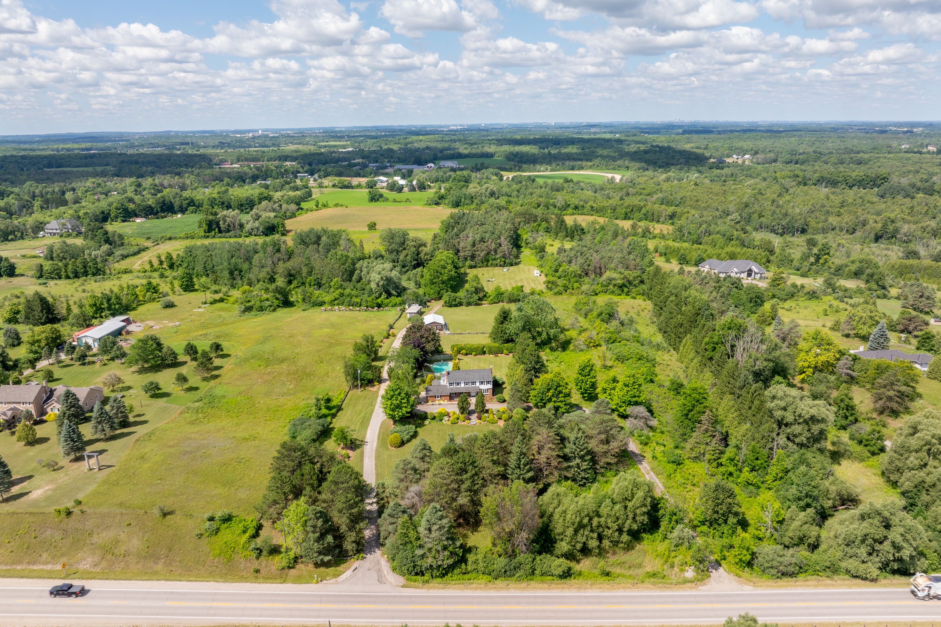 Stop the car!! An incredible opportunity awaits to own a stunning piece of property in a prime location just south of guelph and only minutes to the 401. Offered for the first time in nearly 50 years, this cherished family estate spans over 9 acres with a depth of almost 1300 feet, offering a serene mix of forest and open fields and surrounded by other large properties for ultimate privacy. This expansive home offers ample space and opportunity to update and create your own dream. A morning coffee can be enjoyed on the covered front porch, and at the end of the day you can experience beautiful sunsets on the back deck. Explore winding trails, relax by the in-ground pool, or take advantage of the existing outbuilding formerly a dog kennel with endless potential for other uses. The approximately 3000 sq ft two-storey home features 4 spacious bedrooms and 4 bathrooms, including a large, bright eat-in kitchen with a centre island, a family room, living room, and a versatile converted garage space perfect for additional living, storage, or returning to a double garage. The basement with a separate entrance opens up even more possibilities. Beautifully landscaped and welcoming from the moment you arrive, this property offers a rare blend of peaceful country living with exceptional convenience - your private escape is here.