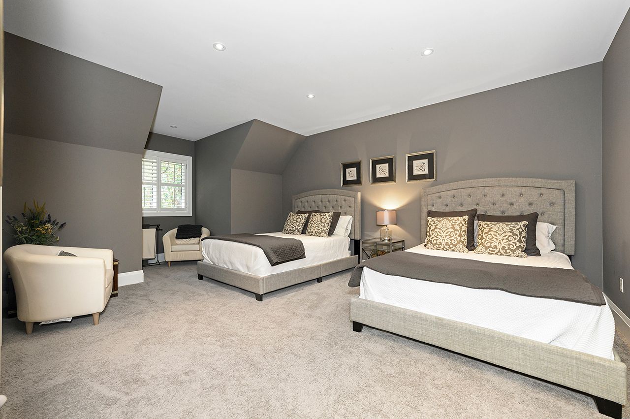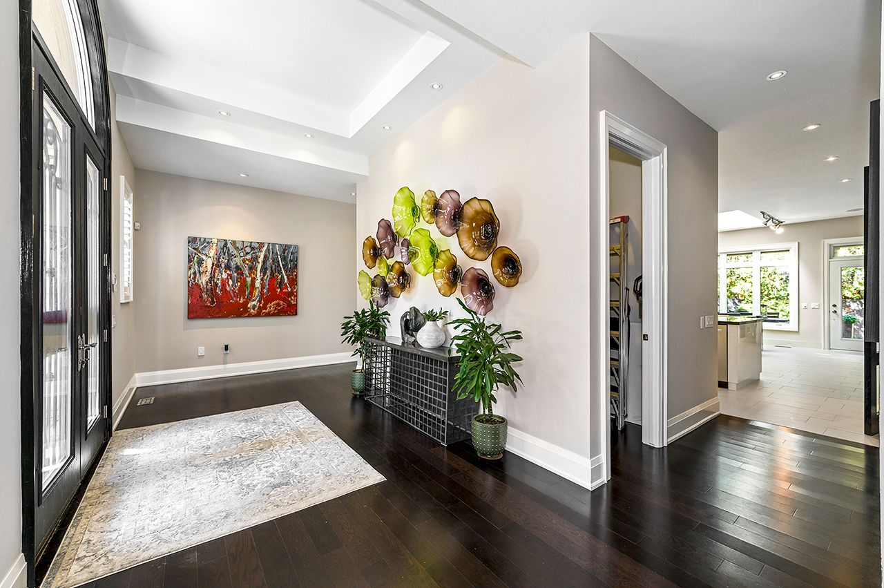 Stunning modern elegance in this custom-built home offering over 7,300 sq. Ft. Of impeccable quality. The designer kitchen features top-of-theline viking stainless steel appliances, white high-gloss cabinetry, and a 14-ft granite island with s. S. Sink and custom faucet, flowing into a bright breakfast area with a massive skylight, multiple windows, and walkout to a covered porch with built-in bbq and grill. A separate dining room with a light brick accent wall opens to the living/family room with gas fireplace, wall-mounted tv, pot lights, and built-in speakers. The main floor primary retreat offers access to an outdoor hot tub, a spa-like 6-piece ensuite with heated floors, jacuzzi tub, oversized shower, separate water closet, a dedicated dressing room, and convenient main floor laundry. Upstairs, two large bedrooms each feature their own 3-piece ensuites and ample closet storage, plus a barrel-vault family room perfect for kids or guests, with a rough-in for laundry. The lower level includes two additional bedrooms, a washroom, large gym, temperature-controlled wine cellar, recreation room with bar and tasting area, gas fireplace, and a dedicated games room. The epoxy-finished oversized 2-car garage is ideal for car enthusiasts! Complete with a security system (including exterior security cameras), a private fenced yard with mature gardens and in-ground sprinkler system, ample parking, and perfectly located just steps to the lake, close to schools, shopping, and minutes to the go. Estates like this don't hit the market often in the prestigious shoreacres neighbourhood!