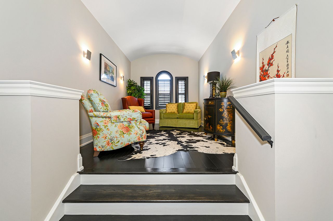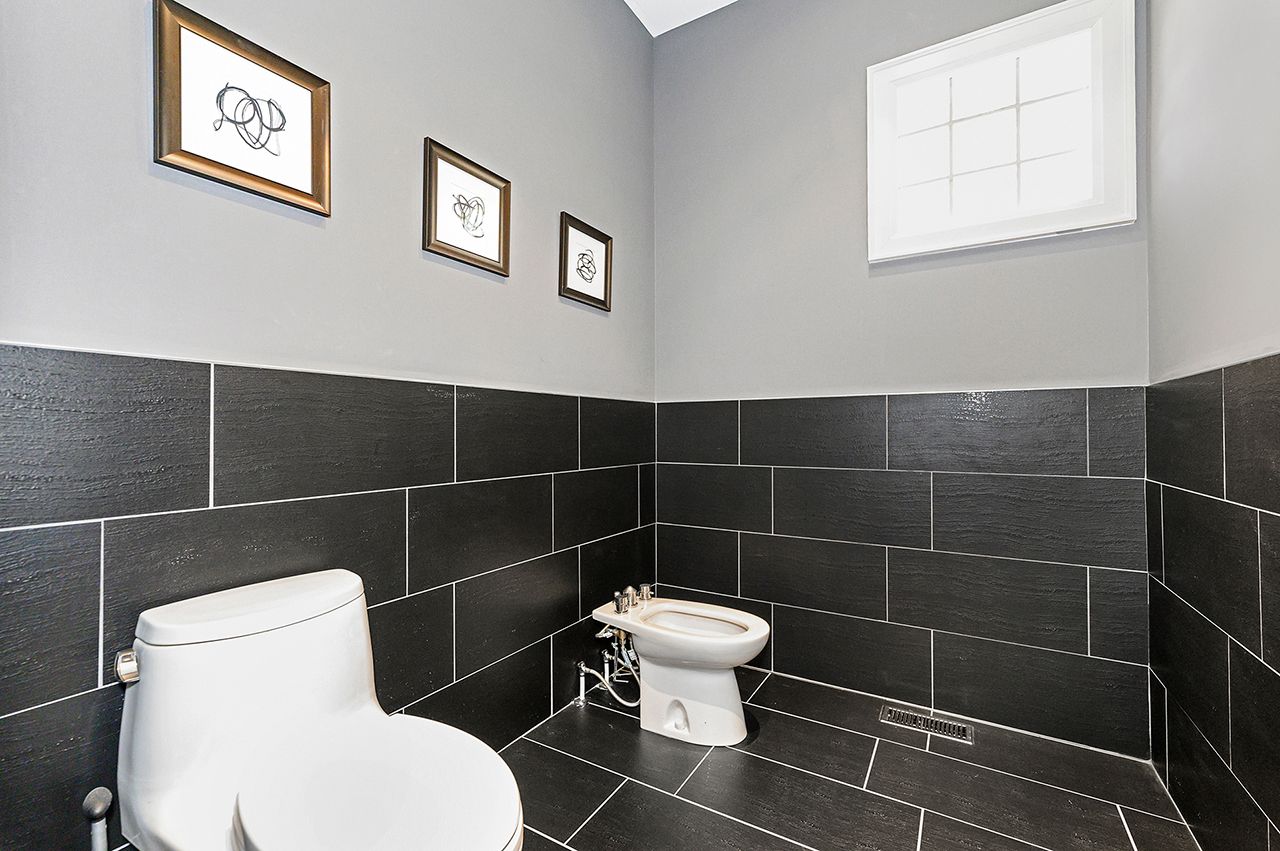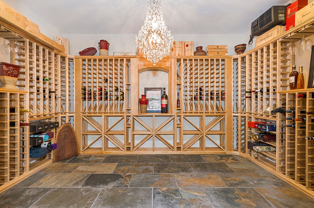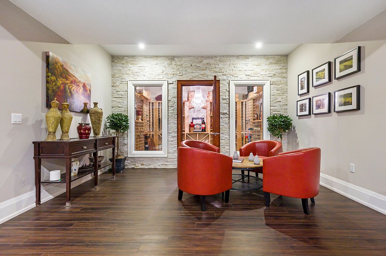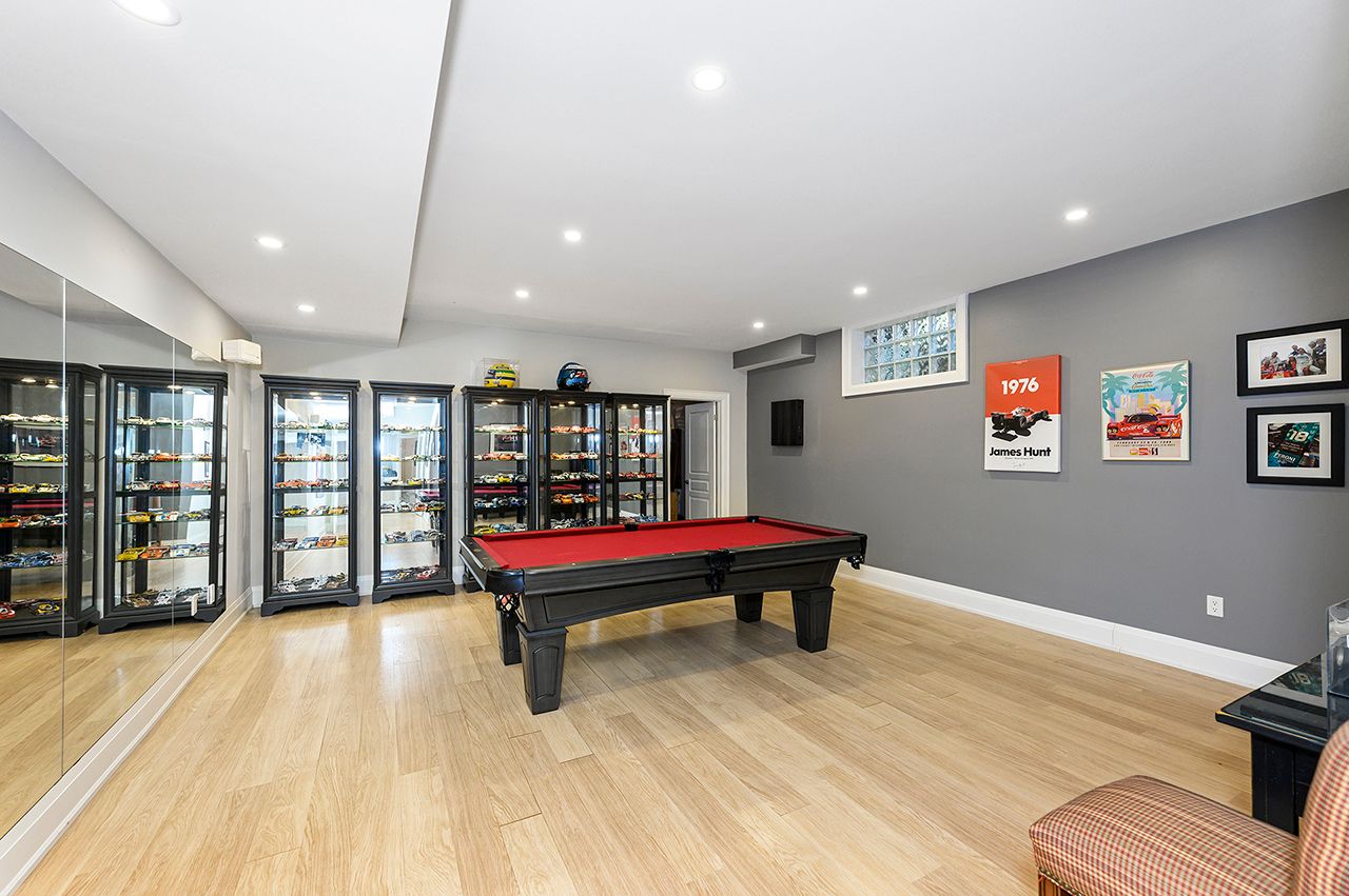 • Lower level includes gym, wine cellar, and recreation room with bar.