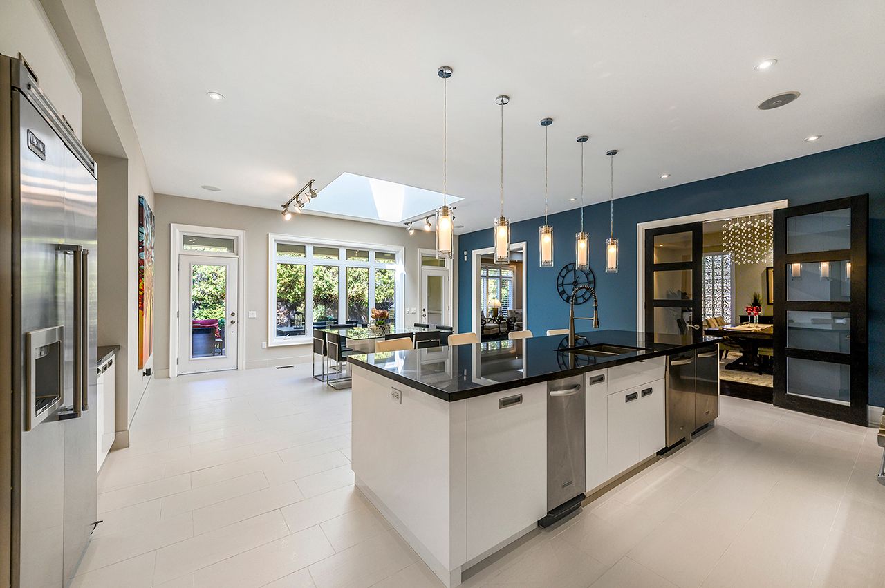 • Designer kitchen with top-of-the-line Viking appliances and a large granite island.