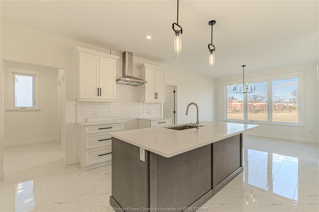 Welcome to beautiful comber!! Built and ready for immediate possession, extra extra lrg brand new modern/stylish 2 storey style home nestled on a gorgeous cul-de-sac with no rear neighbours in a beautiful brand new development in comber/lakeshore location. Great curb appeal with brick/stucco finishes. Step inside to the lrg inviting foyer that leads you to the open concept main lvl. Massive lr/dr/kitchen combo, custom kitchen w/stylish cabinets & granite/quartz counter tops & glass tiled backsplash! Main floor bedroom with ensuite bath! Four good size bedrooms upstairs with main floor laundry. Total 5 bedrooms and 3. 5 bathrooms. High quality finishes thru-out are a standard w/sun built custom homes 'because the future is bright with sun built custom homes!'. Come discover the difference today for yourself!! Peace of mind with 7 years new home tarion warranty!! First time home buyers are eligible for 5% gst rebate on purchase price - ask listing realtor® for full details!!