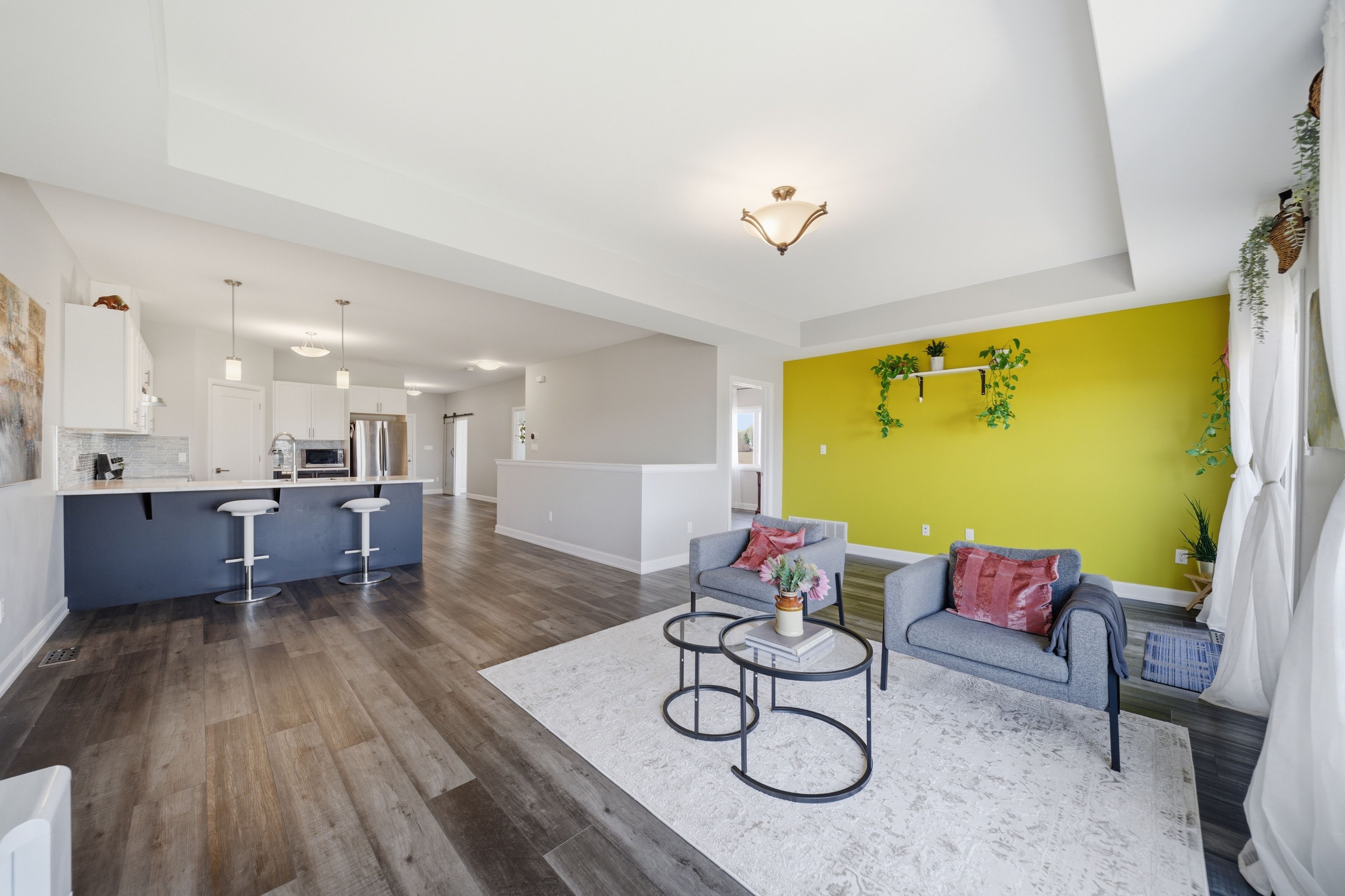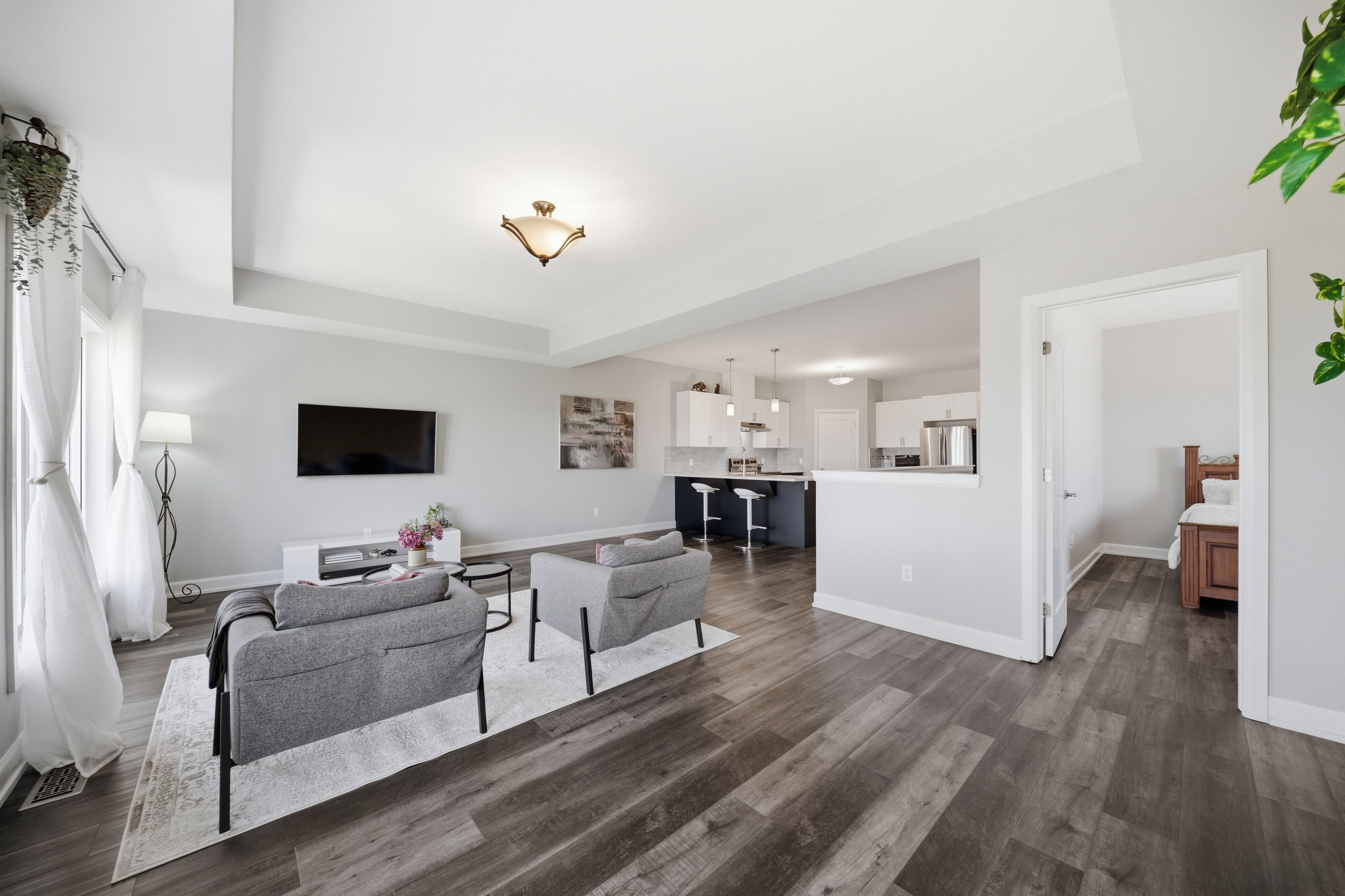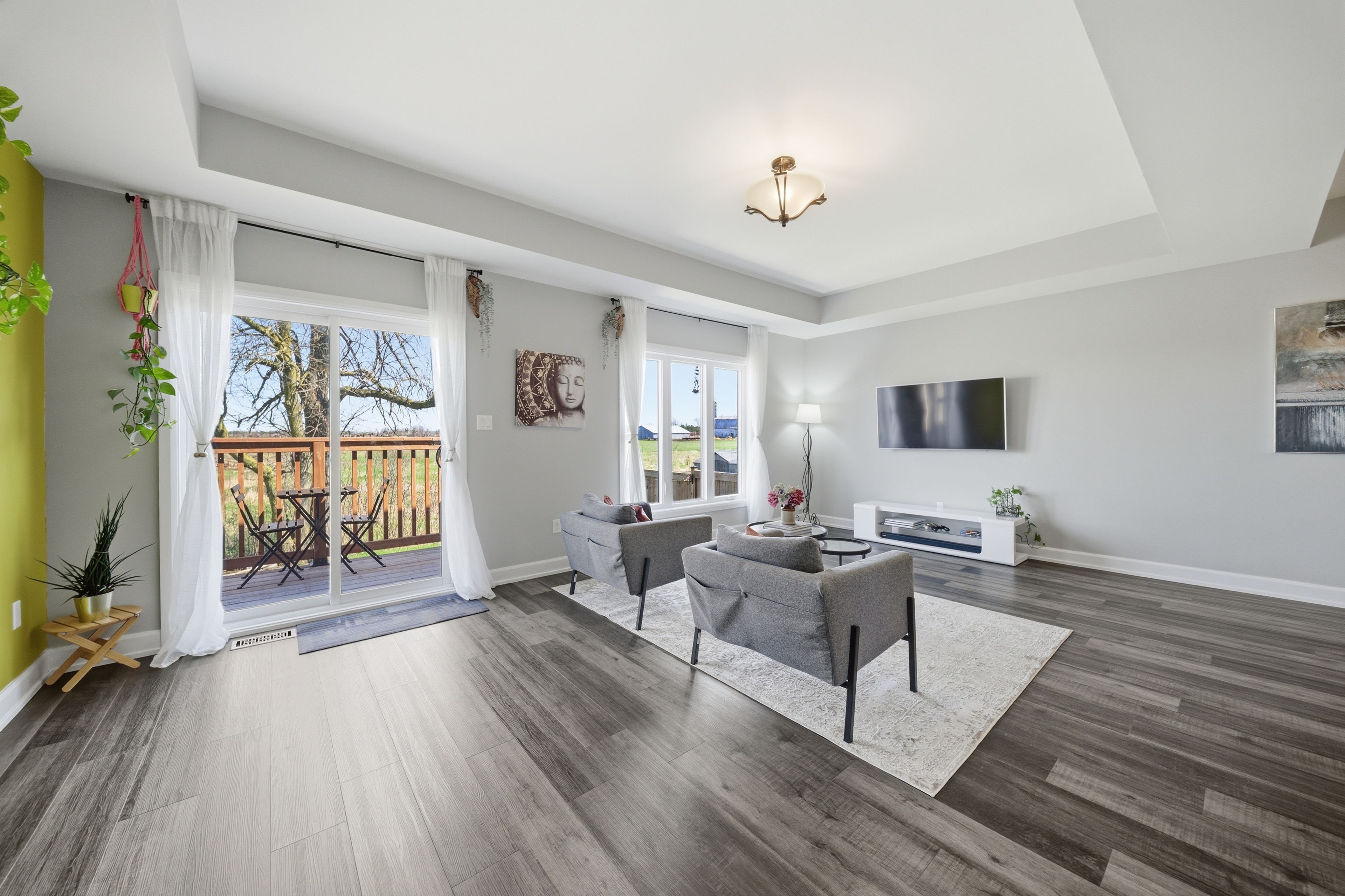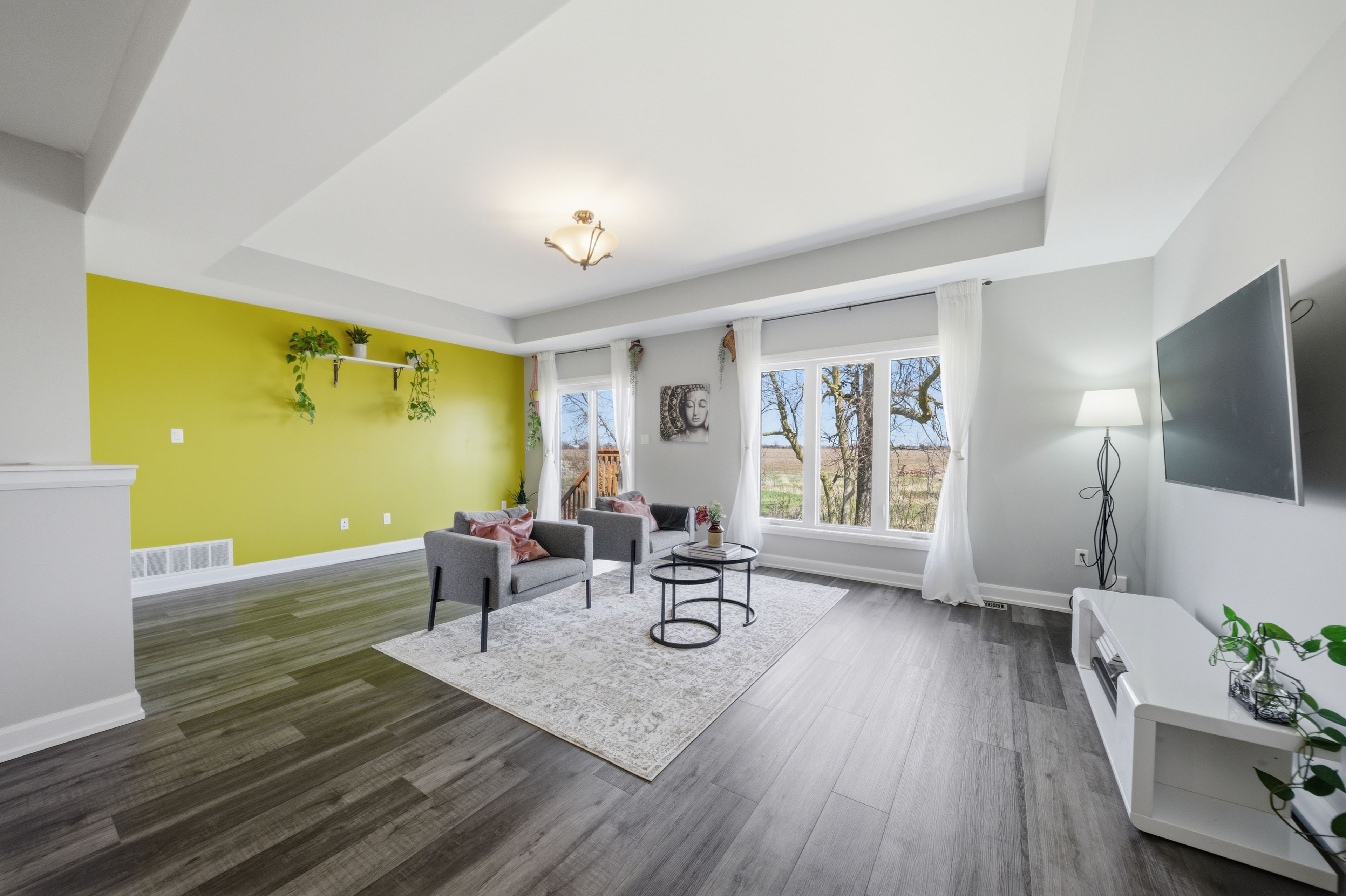 • Bright open-concept layout with large windows for natural light.