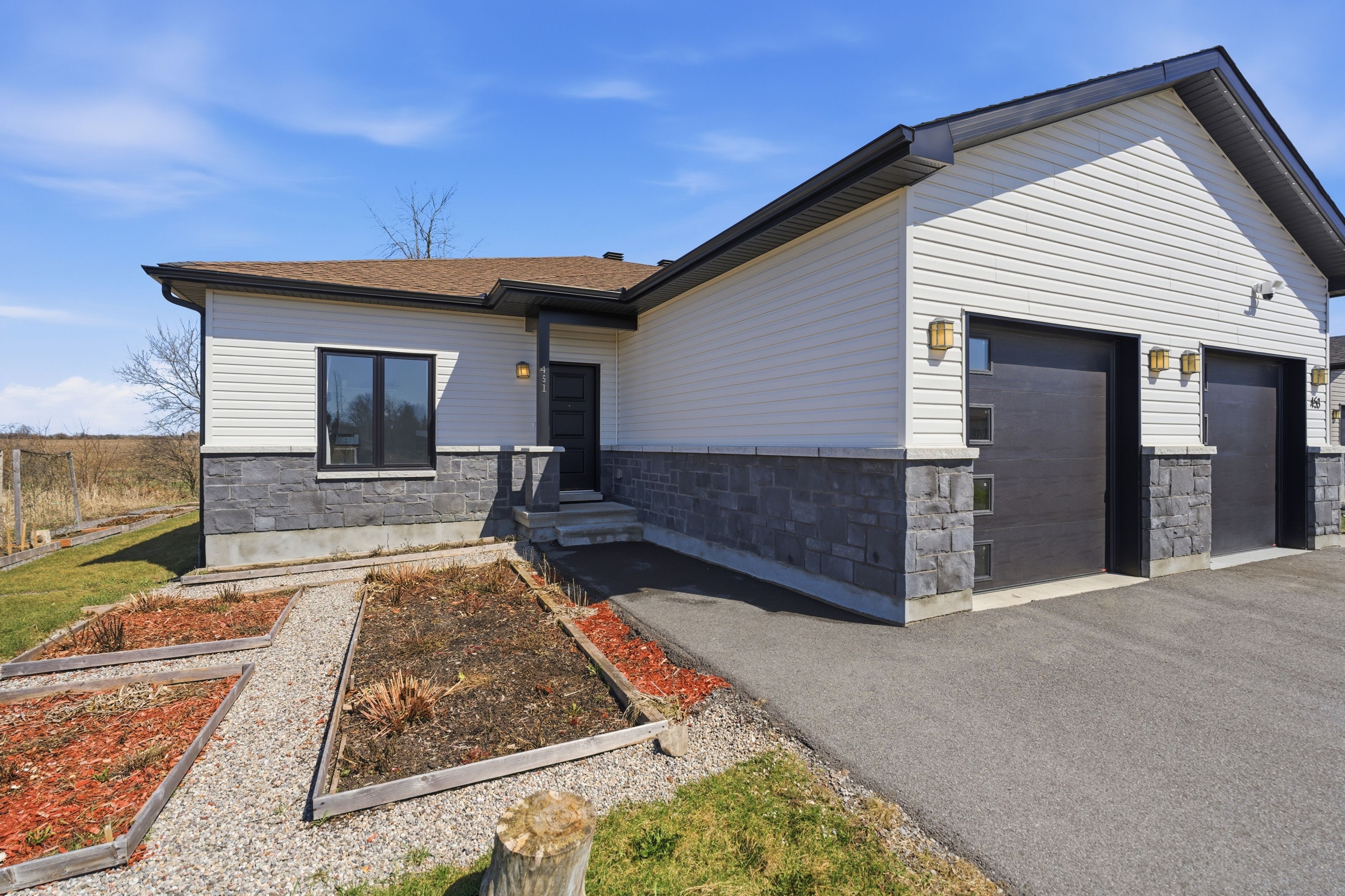 Welcome to 451 lancaster lane, a beautifully built 2020 semi-detached bungalow tucked away at the end of a quiet cul-de-sac with no rear or side neighbours, offering a rare level of privacy and peaceful surroundings. With over 2600 sq ft of livable space, this well-appointed 3-bedroom, 3 bathroom plus den home blends modern design with thoughtful finishes throughout. The main level features a bright open-concept layout with high-end flooring, contemporary lighting, and a seamless flow between the living and dining areas. The kitchen is designed to impress with sleek cabinetry, quality appliances, a dedicated walk in pantry for added storage, and ample workspace, all anchored by built-in elements that enhance both function and style. Large windows bring in natural light while framing the open views beyond. This level also includes two well-sized bedrooms plus a den, offering flexibility for work or additional living space, along with a beautifully finished bathroom. The fully finished lower level expands your living space with a third bedroom, its own 3 piece bathroom, a large recreation area, and plenty of storage, providing versatility for a variety of uses. Outside, enjoy a private backyard with no rear neighbours, backing onto open land for unobstructed views and a sense of tranquility rarely found. The home offers parking for up to 5 vehicles, including 4 in the driveway. Located in winchester, this home offers a peaceful setting while still being within a short drive to amenities, shops, excellent schools and hospitals.