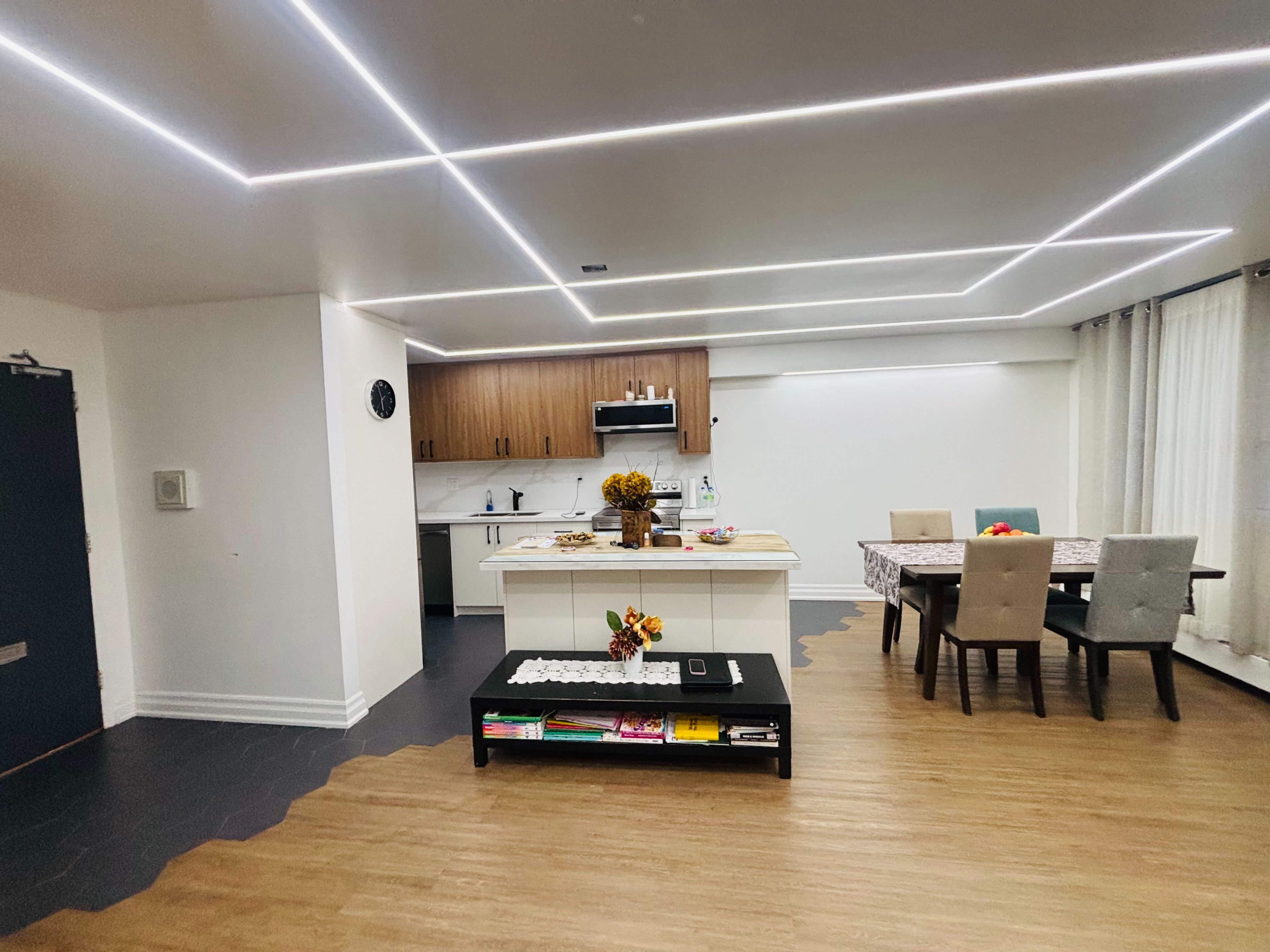 Fully renovated two-bedroom unit in a fantastic etobicoke location. Welcome to this sun-filled condo with stunning views featuring 2 large bedrooms, a massive open-concept living/dining area, and new flooring. Enjoy the convenience of an ensuite laundry, walk-in closet, and storage. Stay connected with ttc & bus transit at your doorstep, plus easy access to hwy 427. Balcony overlooks beautifully maintained gardens and parks, offering peaceful, unobstructed, and stunning sunset views. This unit comes with one underground parking space. Good-rated schools nearby, a kids' park, and coffee shops within walking distance. This unit offers access to a wide range of amenities, including a gym, sauna, swimming pool, tennis court, party room, and bbq/picnic area. Maintenance fee includes all utilities (electricity, water, heating), bell fibe internet & tv, and 1-car parking. Just move in and enjoy a lifestyle of comfort, convenience, and connection!