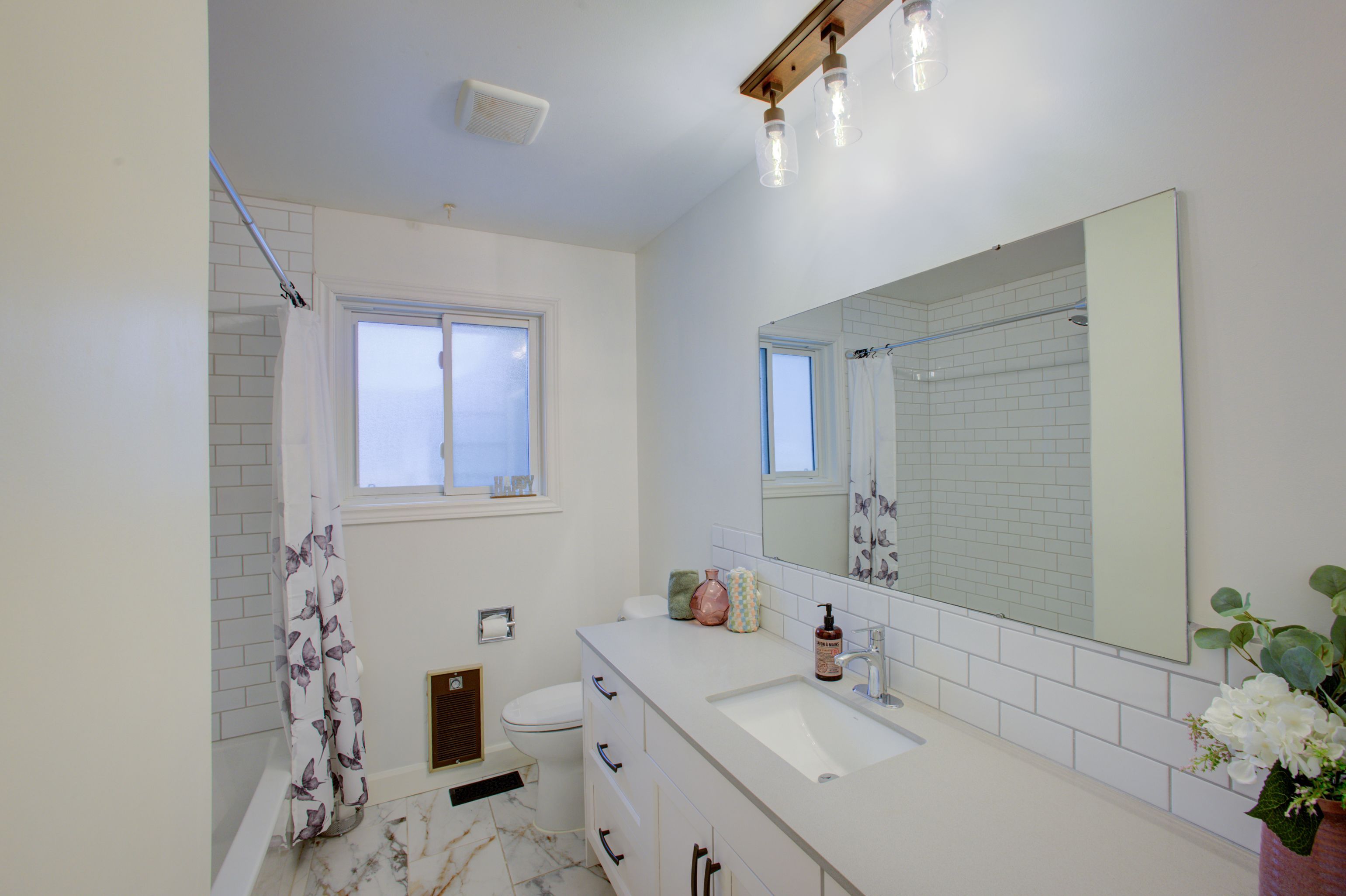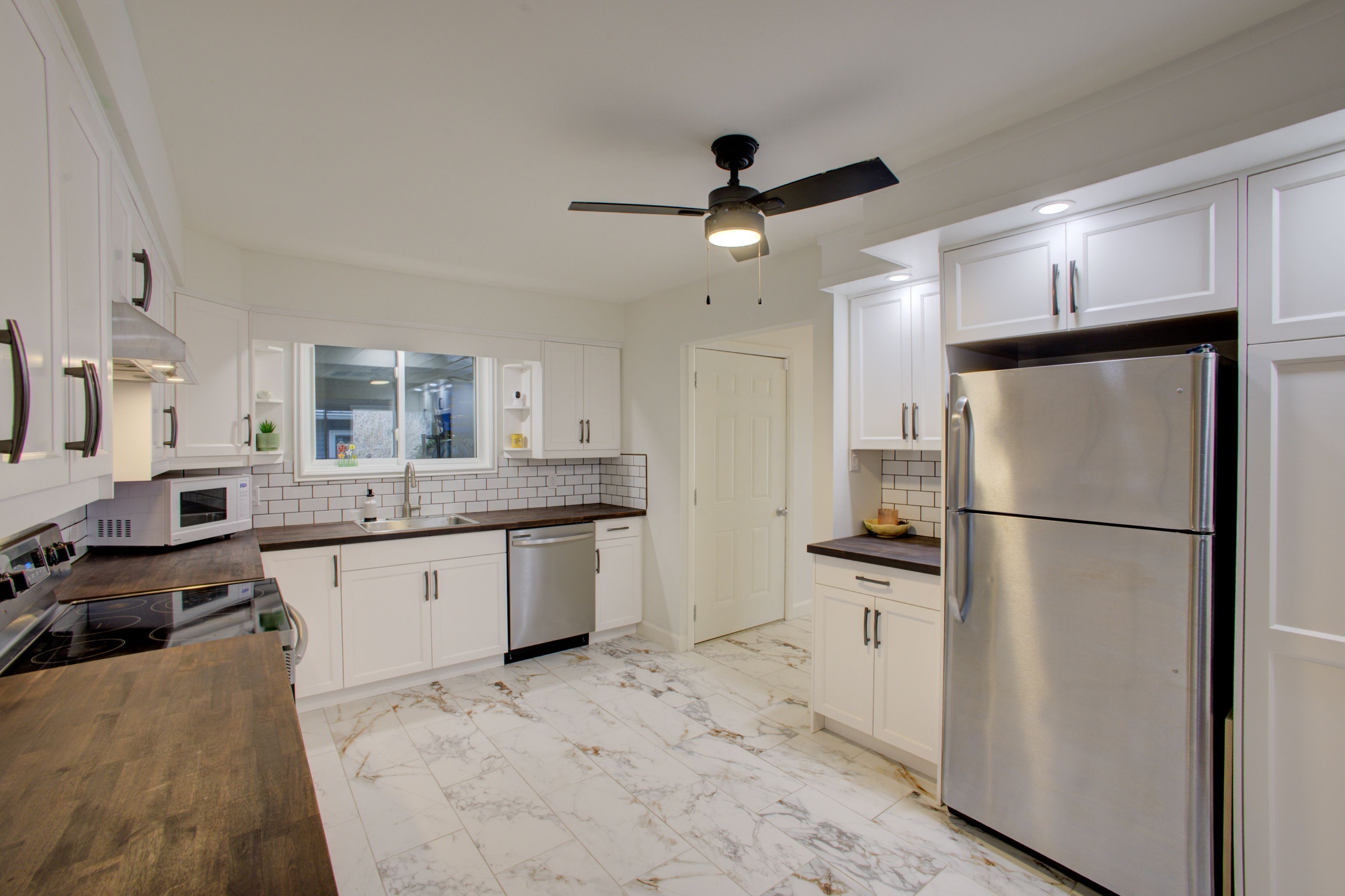 • New kitchen and main bath with heated porcelain tile floors.