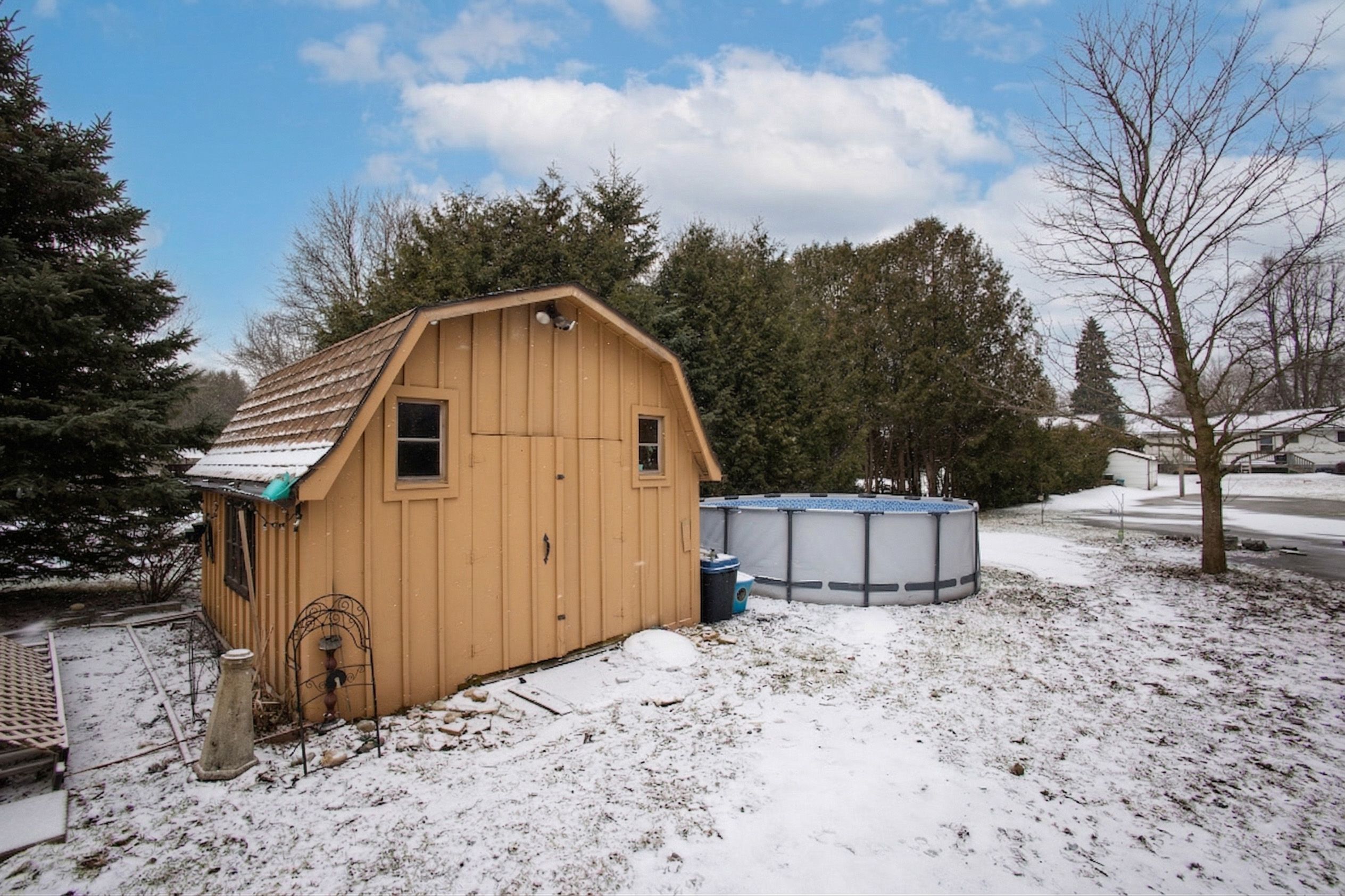 • Lovely gardens and fruit trees on a deep lot with an above-ground pool.