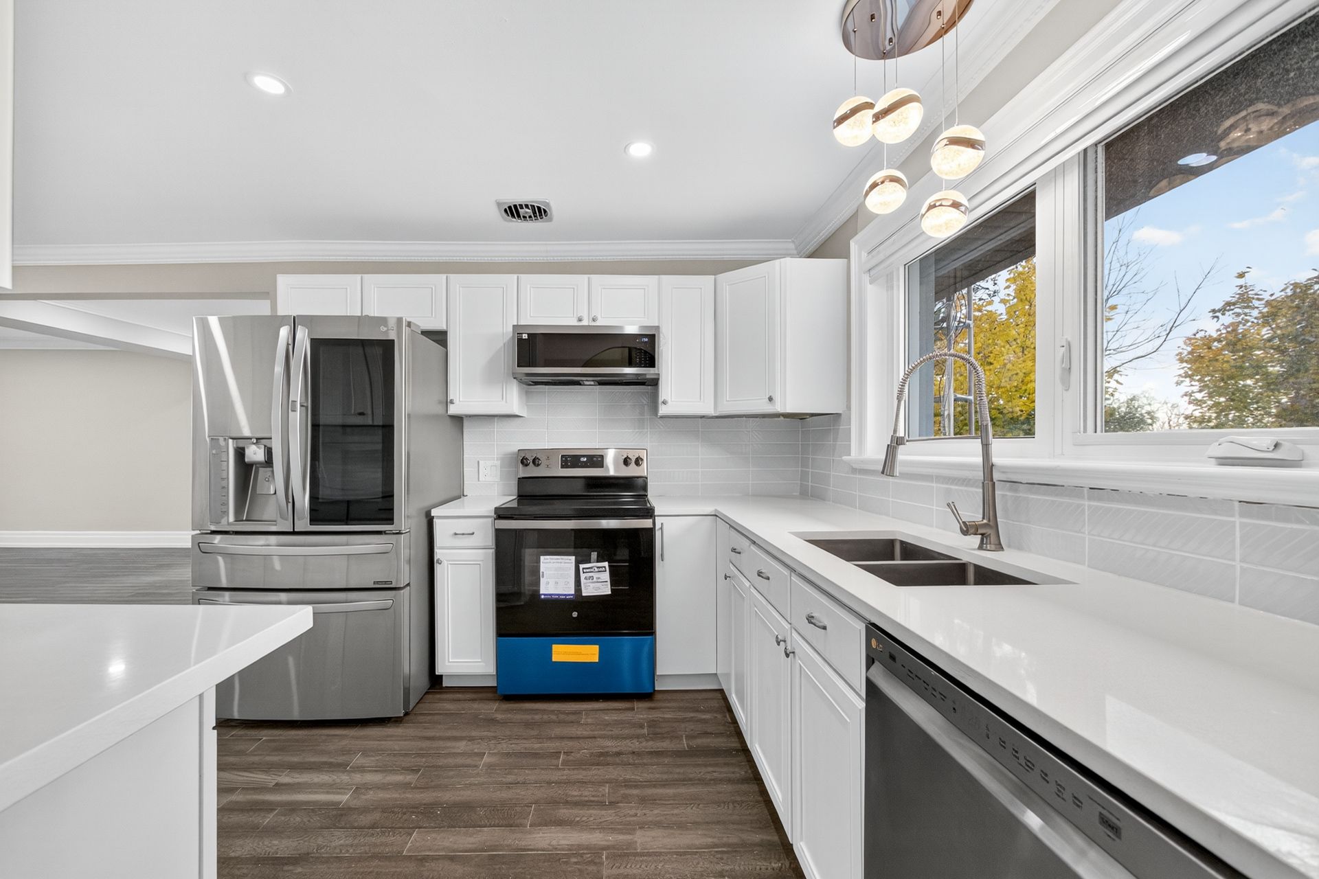 Discover a tastefully renovated side-split where no detail has been overlooked. Nestled on over a half-acre of land, this home offers a perfect blend of indoor and outdoor living. Inside, an open-concept layout flows from a custom kitchen to a spacious living area, with a main-floor den that easily serves as a fourth bedroom. The finished basement provides ample extra space. Outside, your private oasis awaits with a heated pool, multiple decks for capturing beautiful sunsets, and room to grow your own crops. Premium upgrades: includes a 6000-gallon backup cistern and refrigerator, brand-new kitchen stove, brand new over-the-range microwave, dishwasher, washer, and dryer.