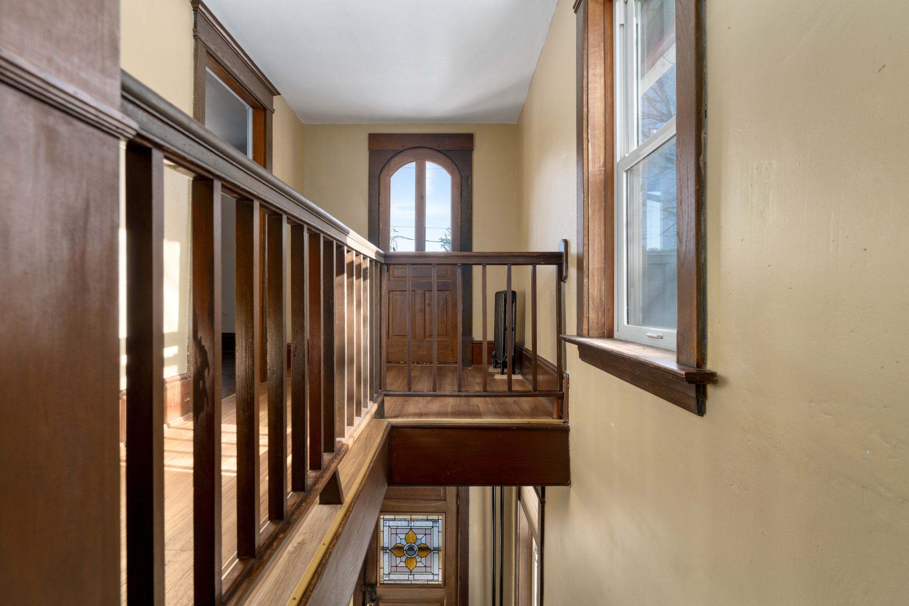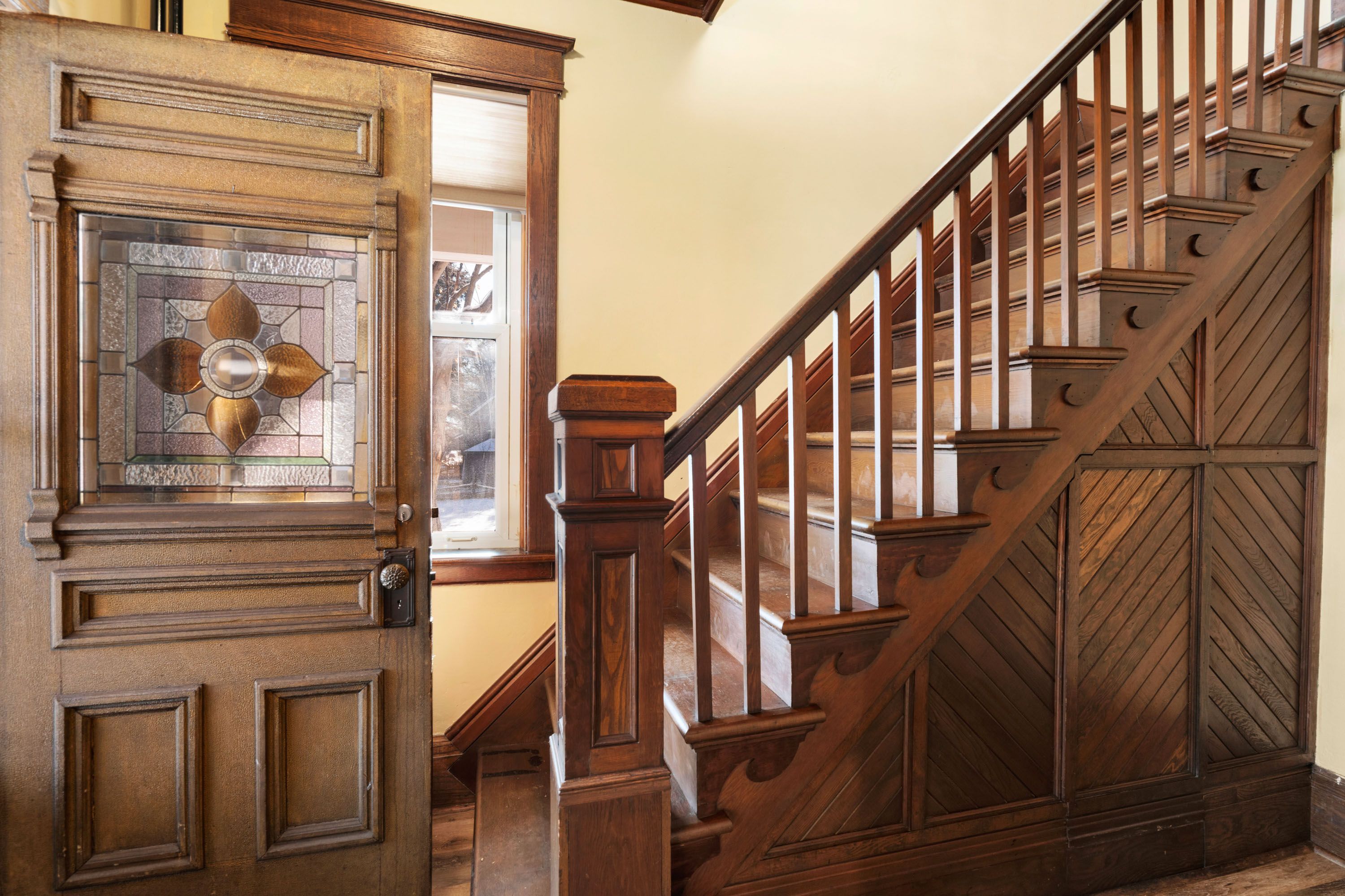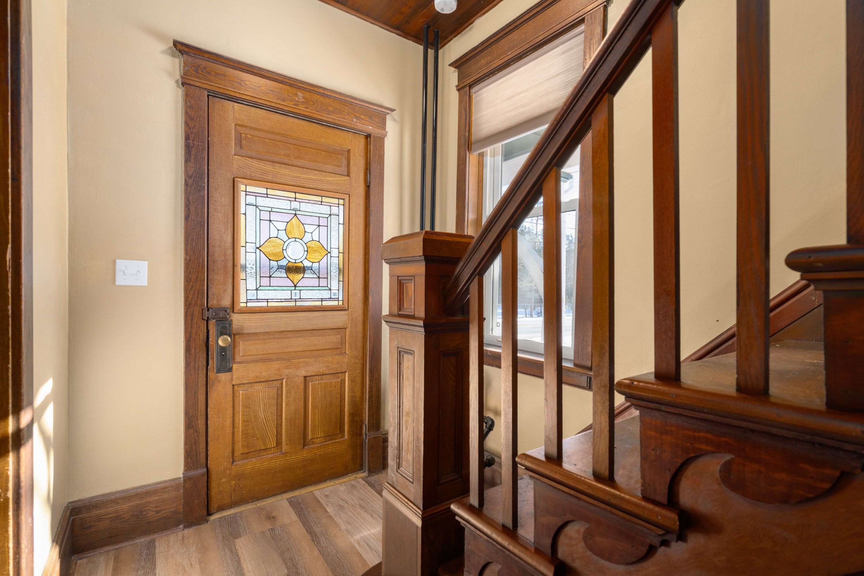 • Wrap around covered porch and original craftsman front door with stained glass.