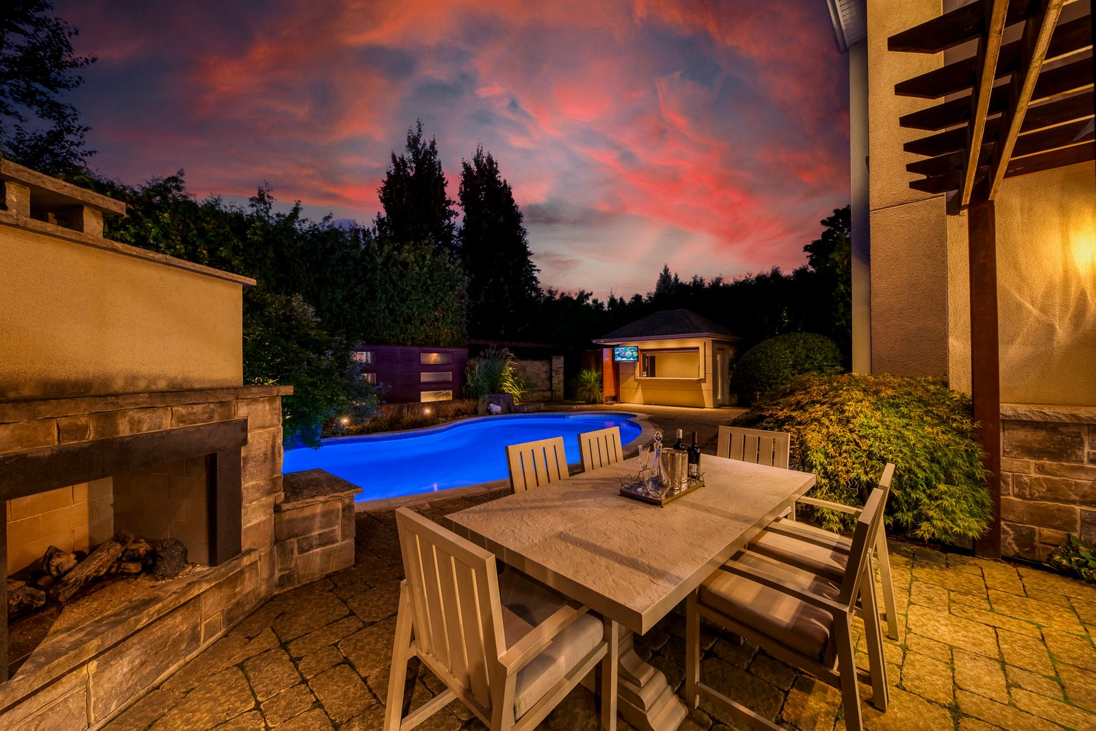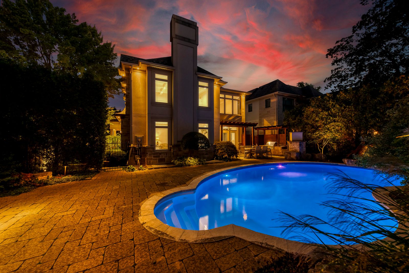 Welcome to this stunning custom-built residence in prestigious morrison, offering over 5,000 sq. Feet of finished living space plus an award winning rear yard oasis and heated double-car garage with pet access to a private enclosed outdoor area. Recently upgraded with fresh paint, brand-new engineered hardwood flooring on the main and second levels, a new quartz kitchen island, and stylish modern pendants in the foyer and dining room, this home blends timeless elegance with modern convenience. A grand mahogany double door opens to a soaring two-storey foyer with polished marble floors. The formal dining room is enhanced with a tray ceiling and new pendant, while the great room showcases a dramatic two-storey coffered ceiling, gas fireplace, and abundant natural light. Adjacent to it, the spacious home office offers brightness, natural light, and tranquil views of the beautifully landscaped front yard, creating an inspiring space with direct access to the great room. The gourmet kitchen features custom cabinetry, high-end stainless steel appliances, the new quartz island centerpiece, and a walk-in pantry. Upstairs, the master retreat includes a gas fireplace, walk-in closet, and spa-inspired ensuite with infinity soaker tub. Three additional bedrooms with walk-in closets, two more baths, and a convenient laundry room complete the upper level. The fully finished lower level is designed for entertaining, with a theatre featuring new laminate flooring, a projection screen with surround sound, an exercise room with closet which can be easily changed to a guest bedroom. A dual steam shower in lower bathroom, a wet bar with a granite countertop, and a temperature-controlled wine cellar. Step outside to your private resort-style backyard, featuring a heated salt-water pool with waterfall, cabana with bar and tv mount, built-in gas bbq oven & fireplace, and professional landscaping. Perfect for entertaining or quiet family enjoyment, this home defines luxury living.