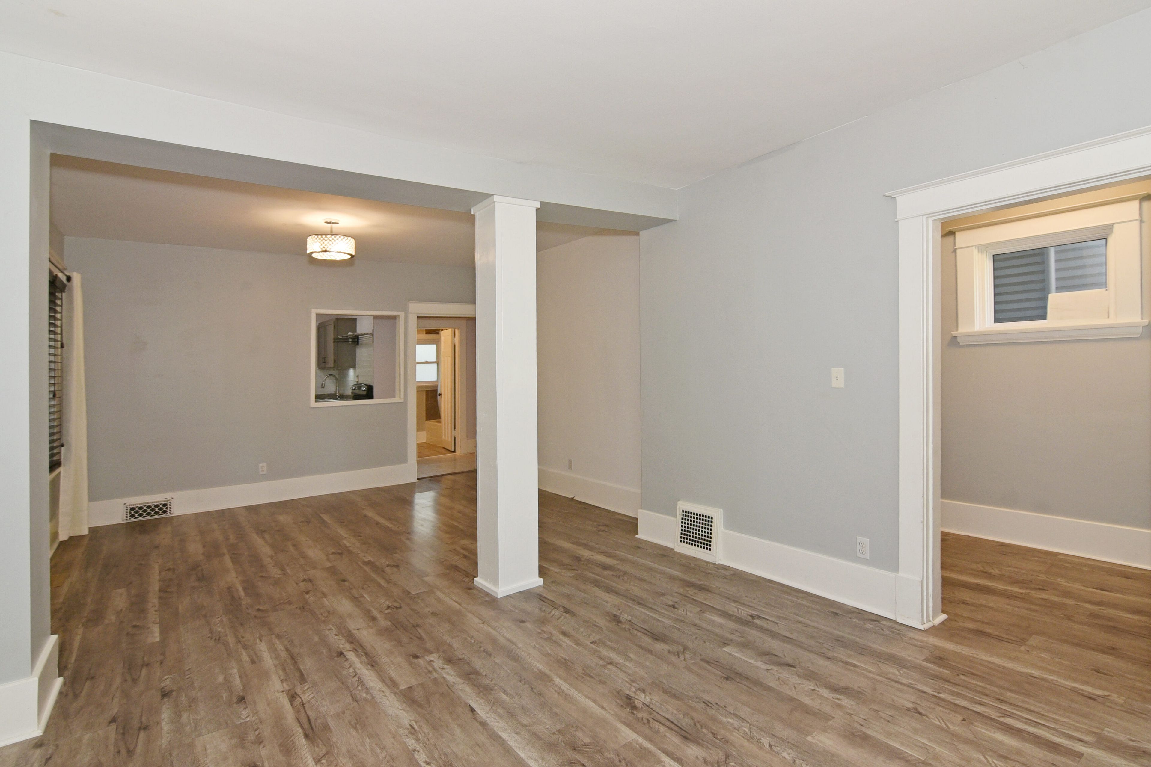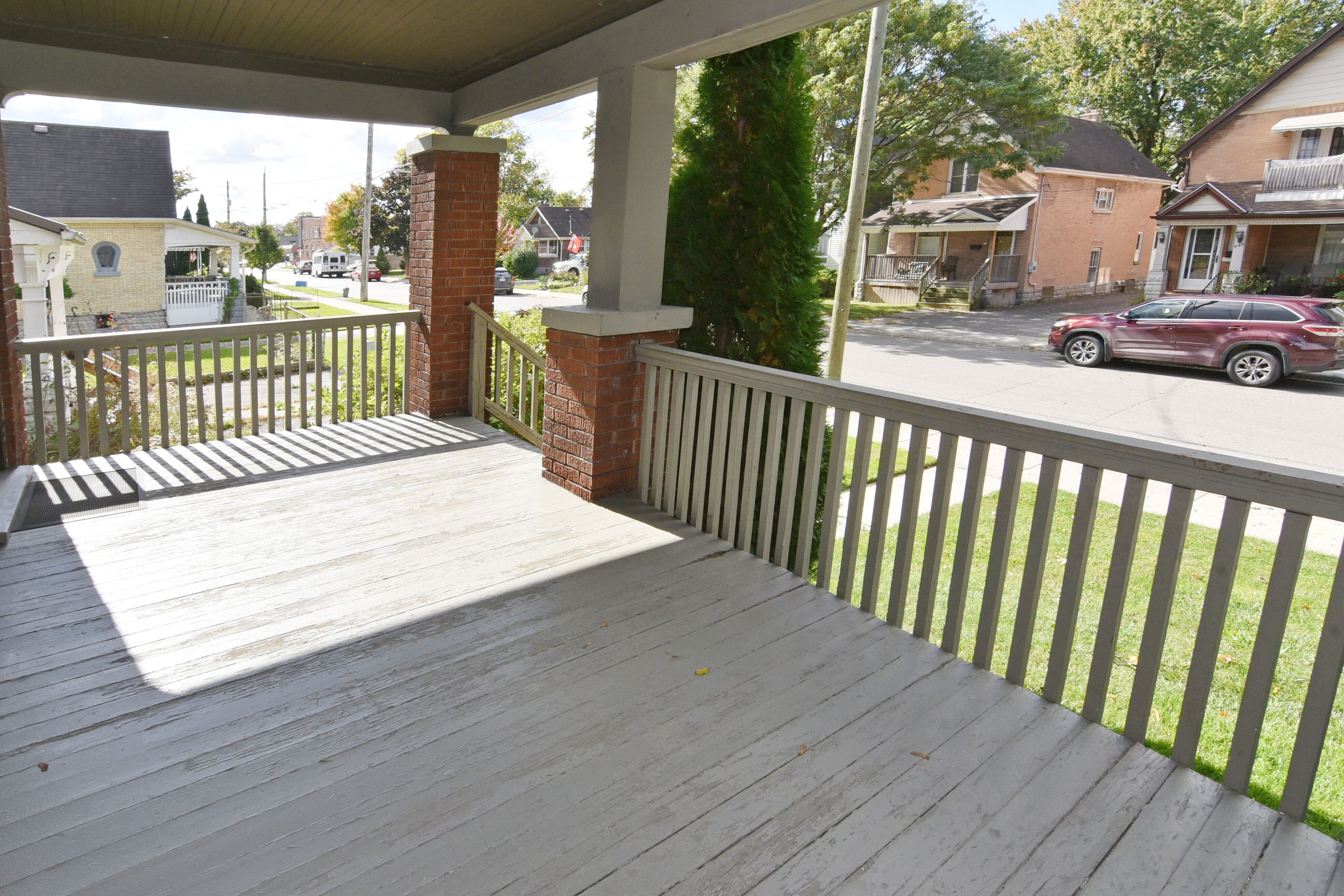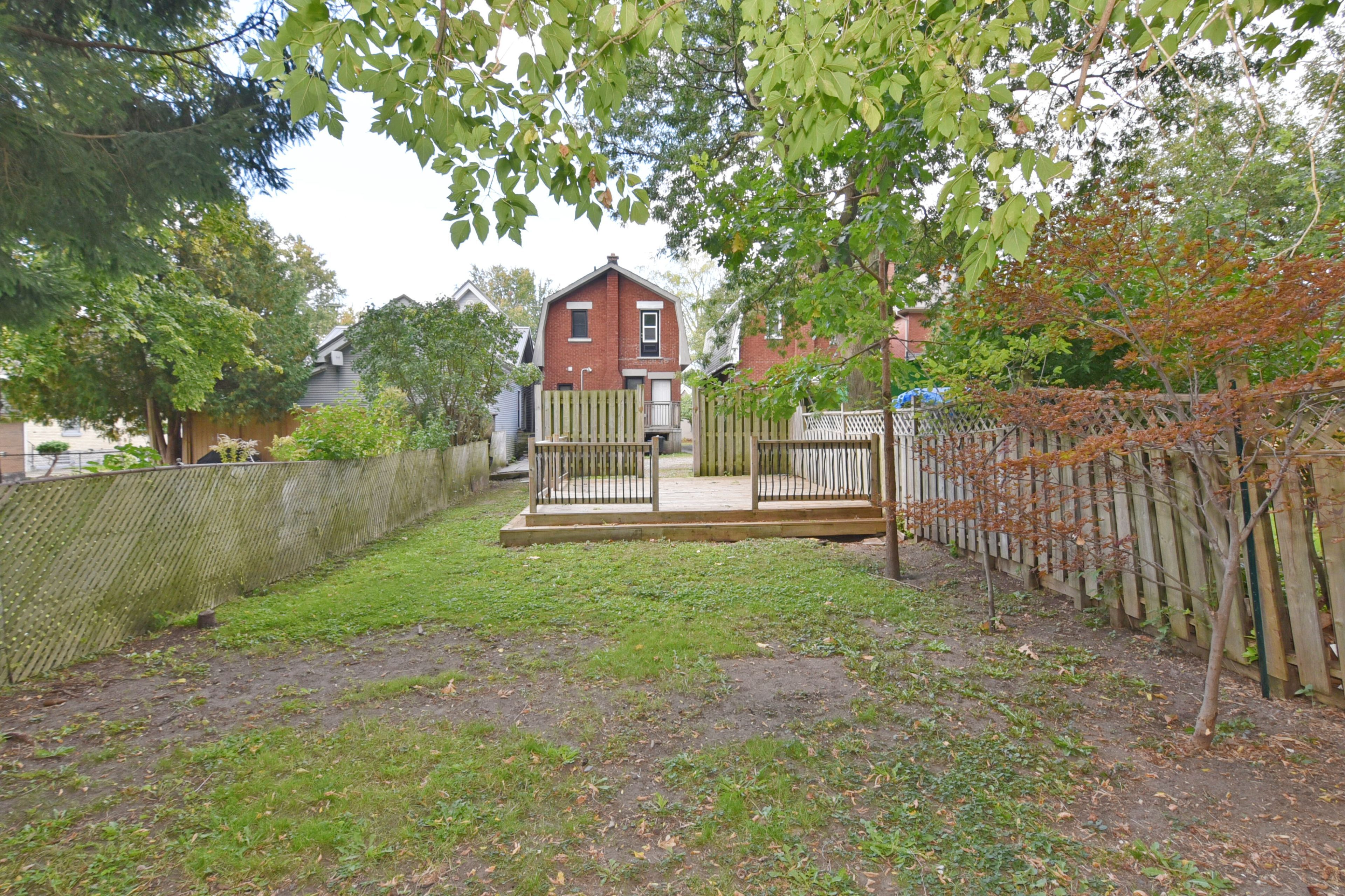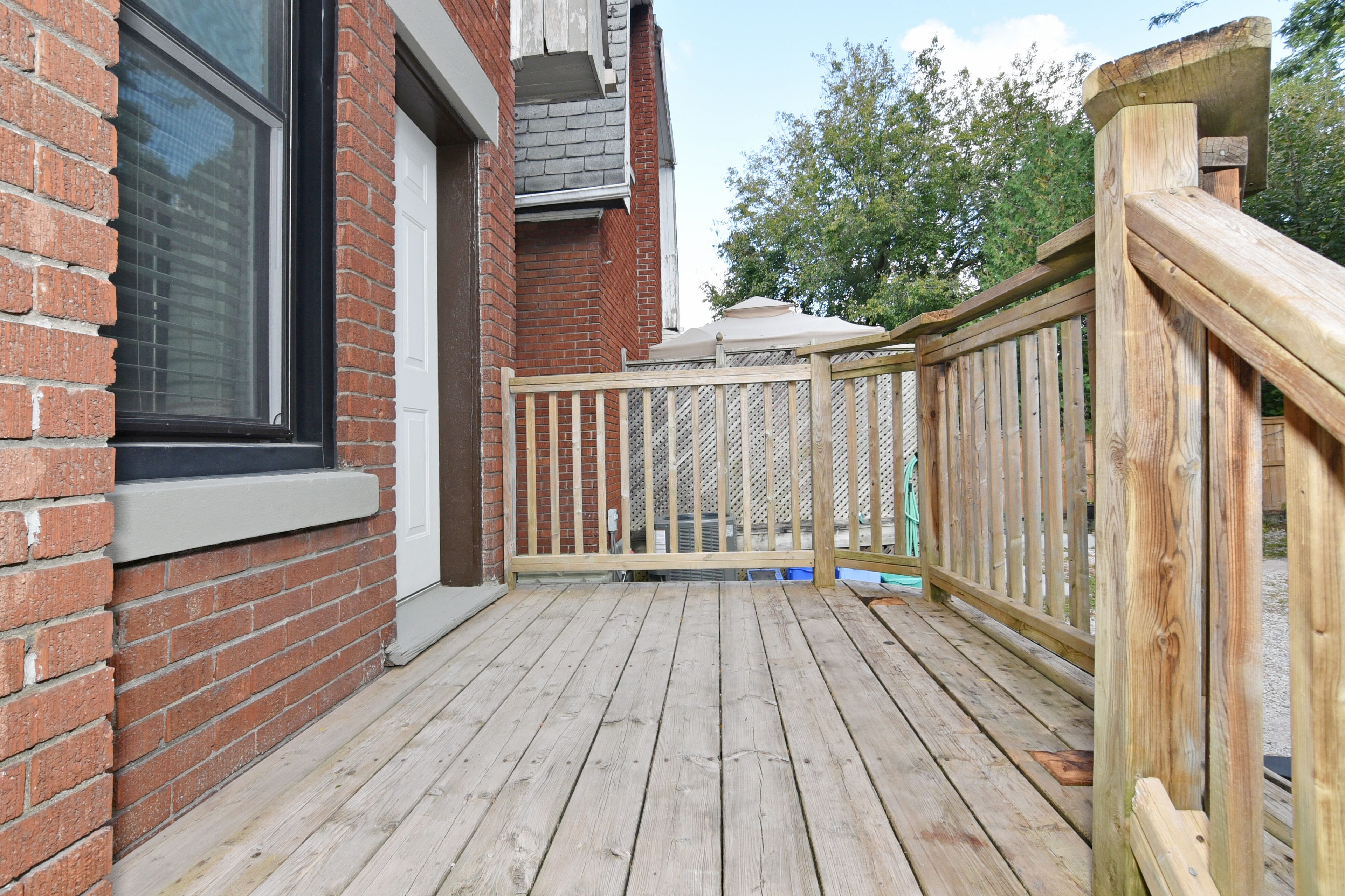 Beautiful 2-storey brick home with large covered porch in the heart of old east village. First floor boasts open concept living & dining areas with 9-foot ceilings, decorative baseboards & 4-piece bathroom. Second floor has 3 bedrooms, walk-in closets, large linen closet, another 4-piece bathroom & potential balcony. Basement is unfinished with laundry, recreational/storage spaces & access door to the backyard, which is private, deep & fully fenced with a large deck for entertaining. Mutual driveway with ample parking spaces for 2 cars. Renovated & updated throughout with scratch-free vinyl flooring (2012), roof (2012), windows (2015), air conditioner (2016), insulation (2017), washer & stove (2023). Short walk to kellogg place, children's museum, rts, library, community center, restaurants & specialty shops.