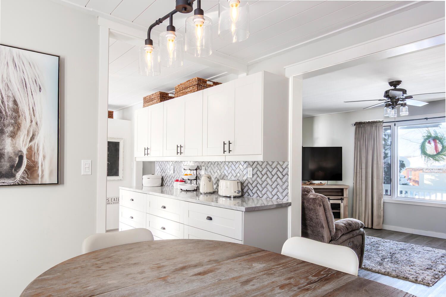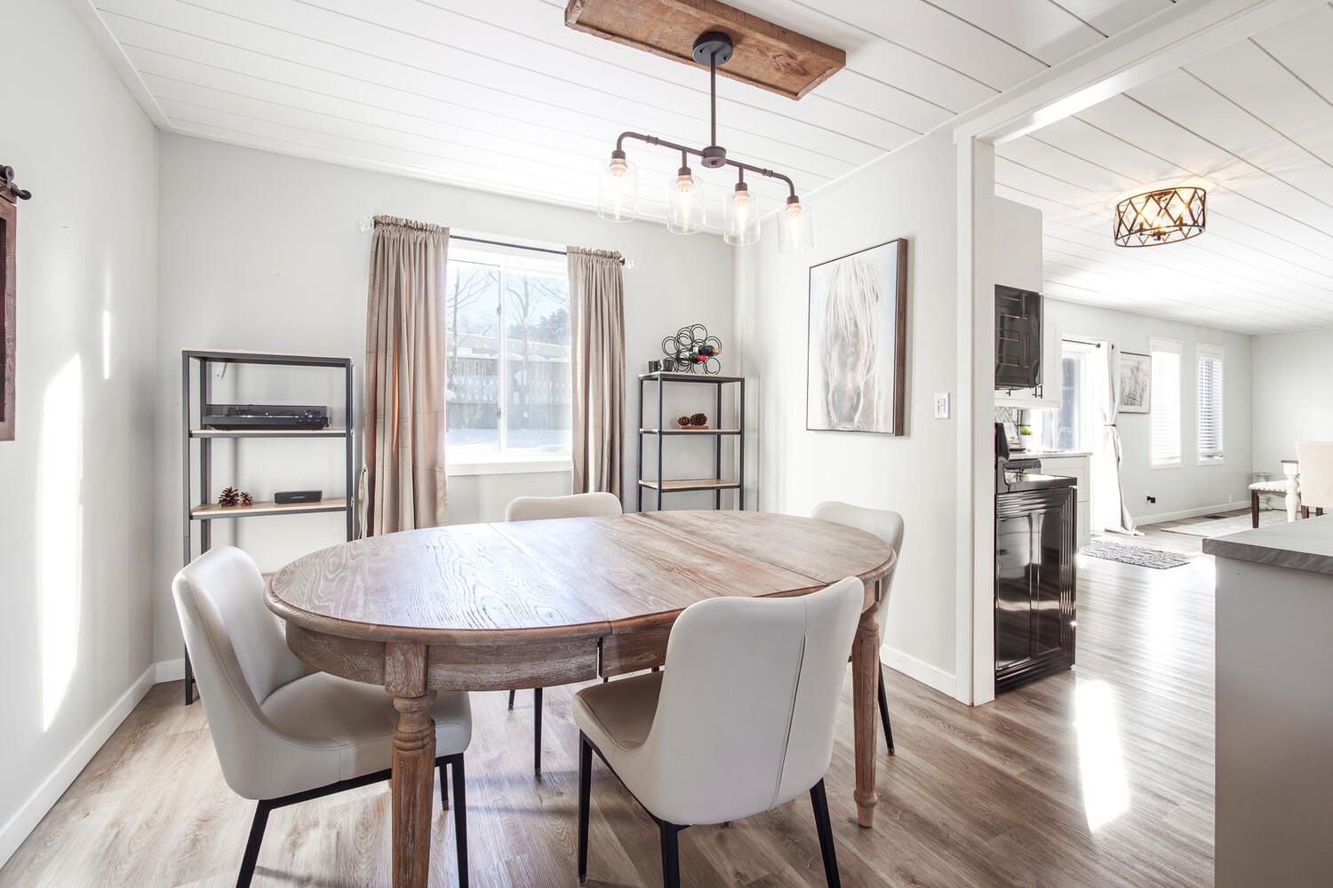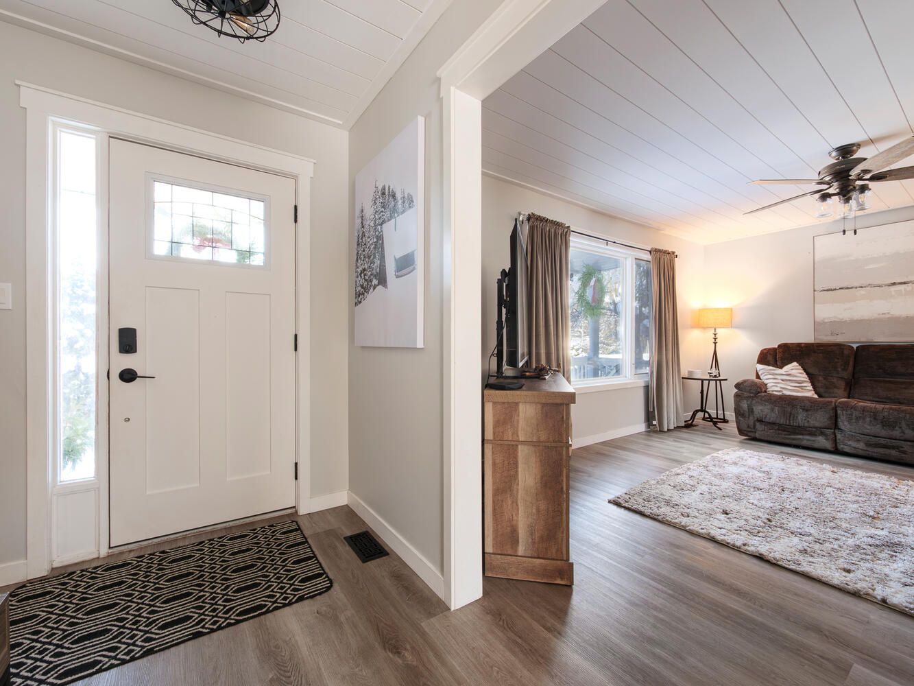 • Modern shiplap ceilings and new carpeting throughout the home.