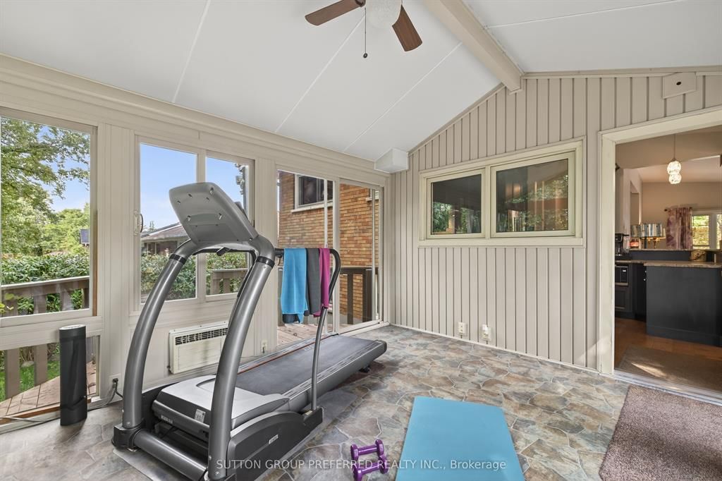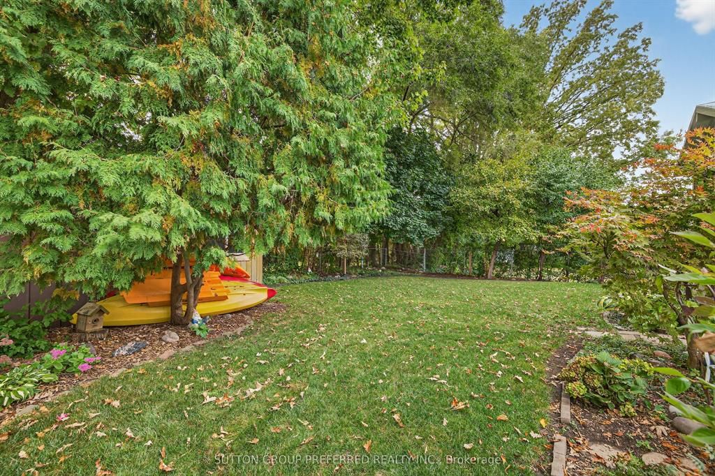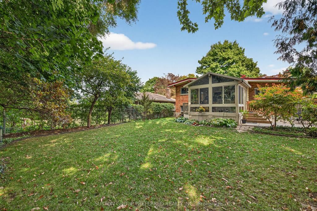 • Bright sunroom and fully fenced backyard with landscaping and water feature.