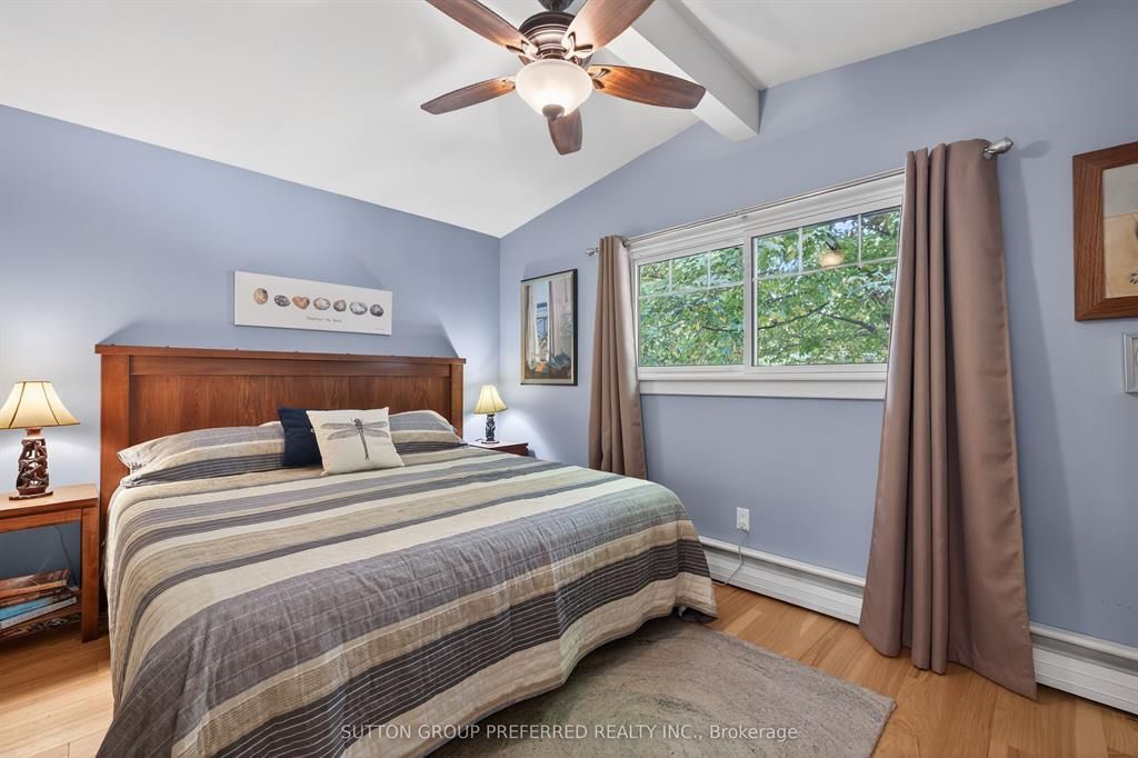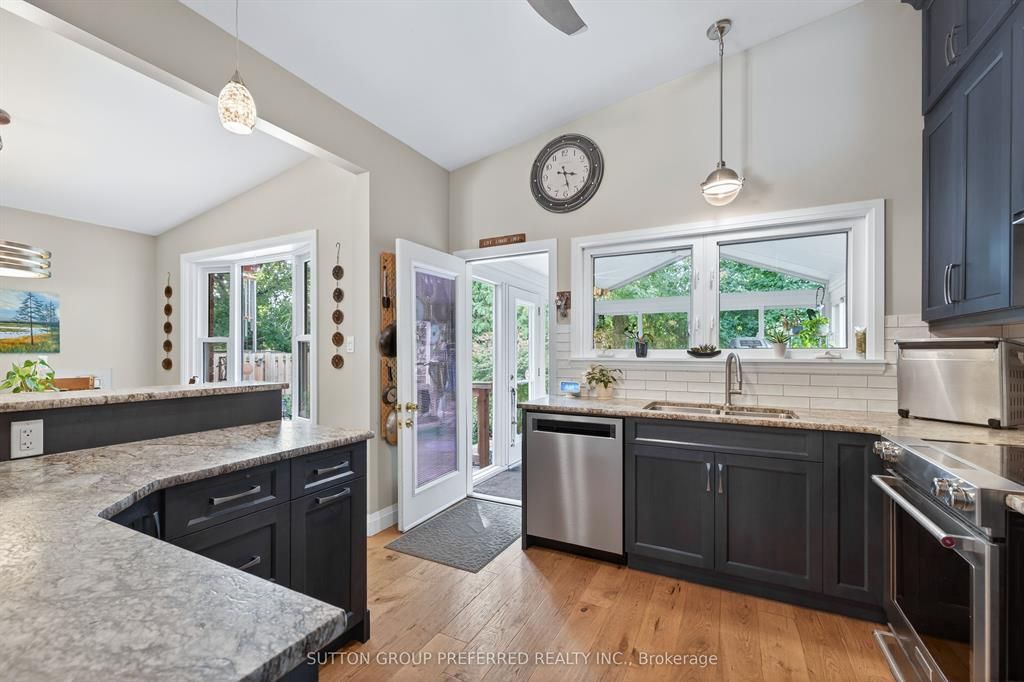 Welcome to this beautiful and unique home located in old south near victoria hospital. Perfectly situated close to downtown while tucked far enough away to enjoy the charm of a mature neighborhood. Entering the home your eyes will be drawn to the vaulted ceilings and quality finishes throughout. The completely renovated main level (2019) features hand-scraped white oak engineered hardwood floors that create a warm and welcoming space. The custom kitchen is highlighted by the floor to ceiling solid wood cabinetry which provides an abundance of storage with striking leathered granite countertops. The upper level features cozy hickory hardwood flooring (2022), two freshly painted good sized bedrooms also with vaulted ceilings. The newly renovated bathroom boasts of a large soaker tub combined with a dual head shower system. Off the kitchen is a large, bright and airy sunroom where you can enjoy your private backyard oasis even on rainy days. The yard is fully fenced, beautifully landscaped with a burbling water feature . A peaceful place to relax and enjoy morning coffee or an evening beverage. This home has many updates including a new roof (2025)with transferable warranty, new windows within the past 8 years and an automated sprinkler system. The lower level has a separate entrance and could be converted into an in-law or rental suite.