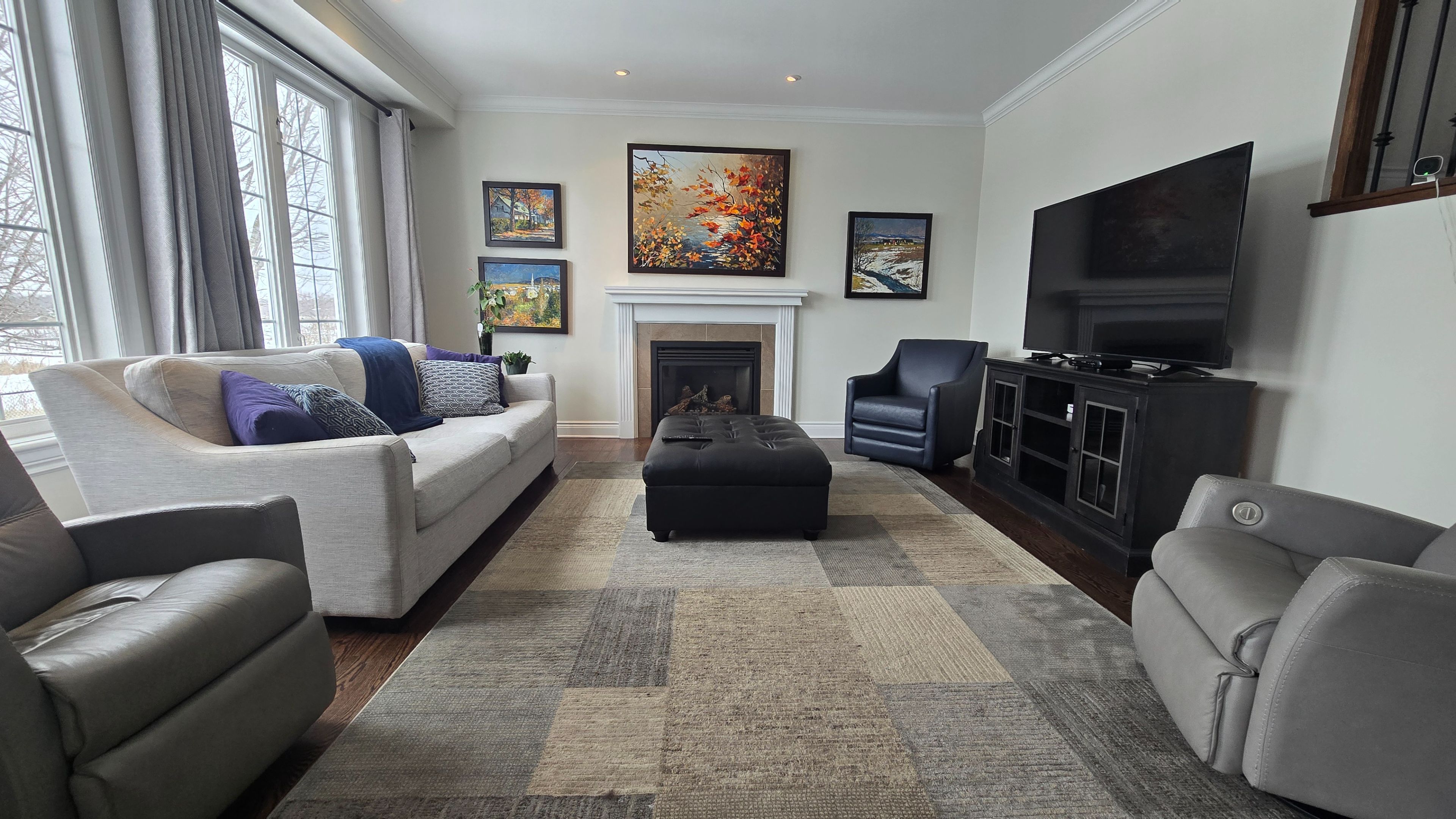 Executive monarch home backing on south-west view of ncc greenbelt and beautiful pond. Rare sought-after premium lot in bradley estates! This 3,100 sf home offers privacy, tranquility from traffic. Great curbside appeal invites you to a welcoming entrance with gleaming hardwood floors, luxury and space. The main floor starts with a formal living room open to the dining area with moulded ceilings. The chef style kitchen with island has ample cupboards and granite countertops with breakfast counter and separate eating area. The family room has a gas fireplace and several large windows for that amazing view. A powder room next to the elegant hardwood staircase brings you to the landing, with a palladian window, that may be used as an office or study room, before arriving to the second floor. Here you will find a royalty suite with walkin entrance and closet that separates the 5 piece ensuite from the bedroom looking over the yard. Two other bedrooms has it connected with a jack & jill full bathroom, and a 4th separate spacious bedroom with full ensuite for in-laws, nanny suite or as a teenage haven. The laundry room is conveniently centered between the four bedrooms. The hardwood glass staircase prepares you for an elegant finished daylight basement that features a professionally styled recreation room with full theatre screen, sound system, projector, mini bar and gas fireplace. Enjoy the modern bathroom with quartz countertop, glass shower, elegant tiles and heated floor. You will also find an exercise room, a 5th fair size bedroom, two storage areas and a utility room. The backyard has the million dollar view of the greenbelt and a yard professionally landscaped with in-ground pool and roof top heater. Located on the west end of orleans to avoid the traffic and close to some of the best french and english schools, nature trails and parks. Direct access to the 72-km prescott-russell trail. Roof 2022, furnace 2019