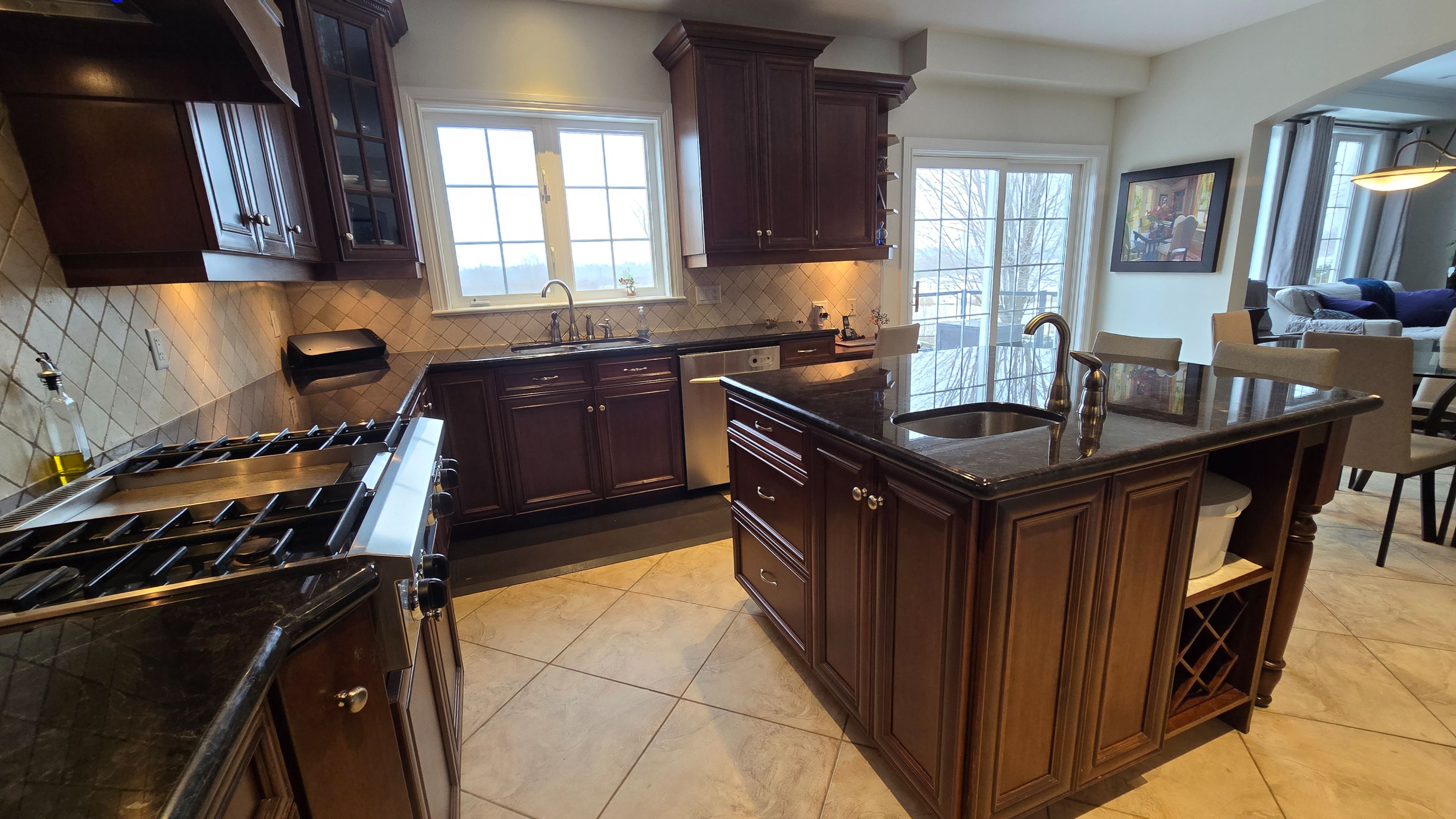 • Chef-style kitchen with granite countertops and breakfast bar.