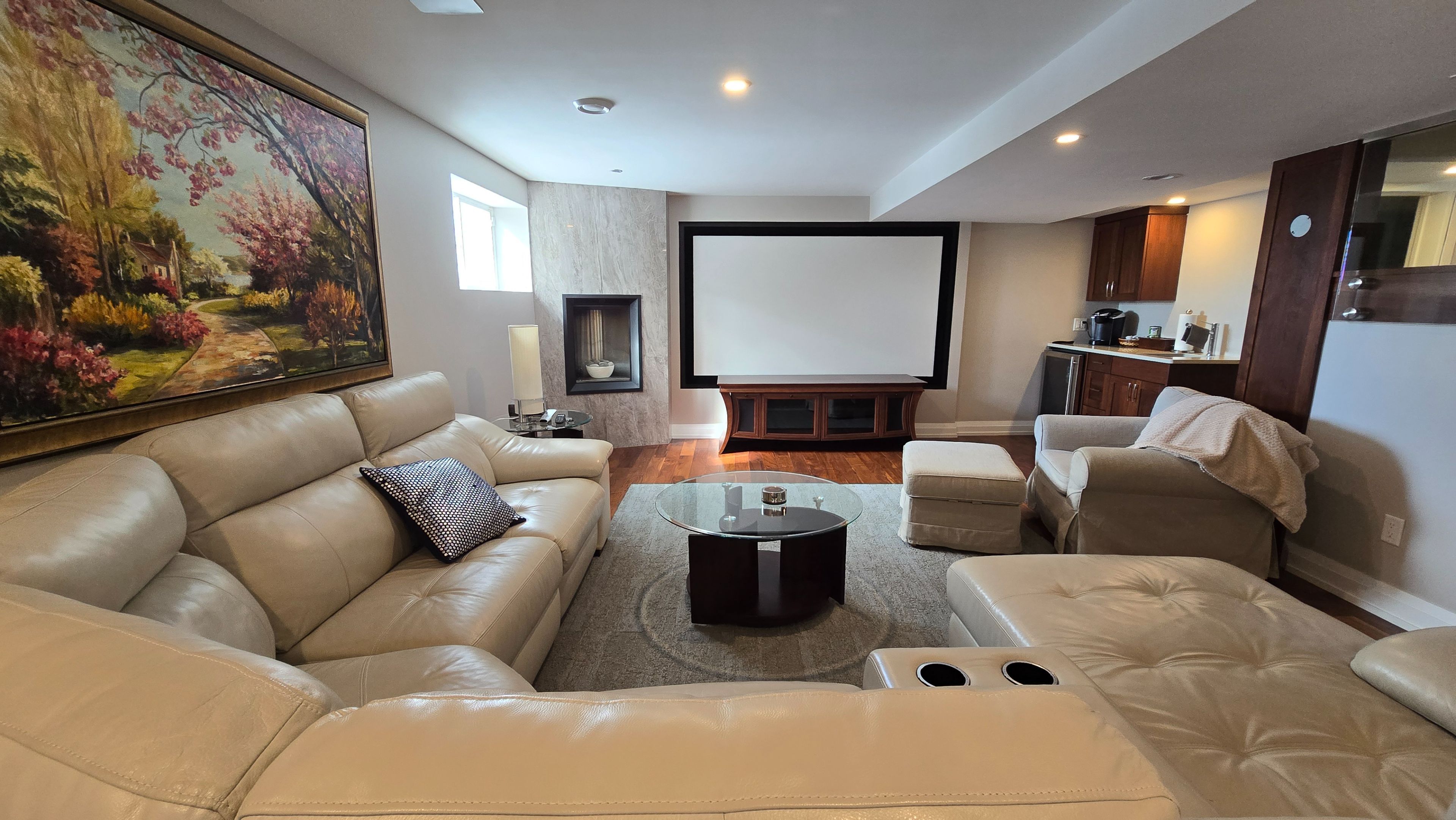• Finished basement with home theater, mini bar, and exercise room.