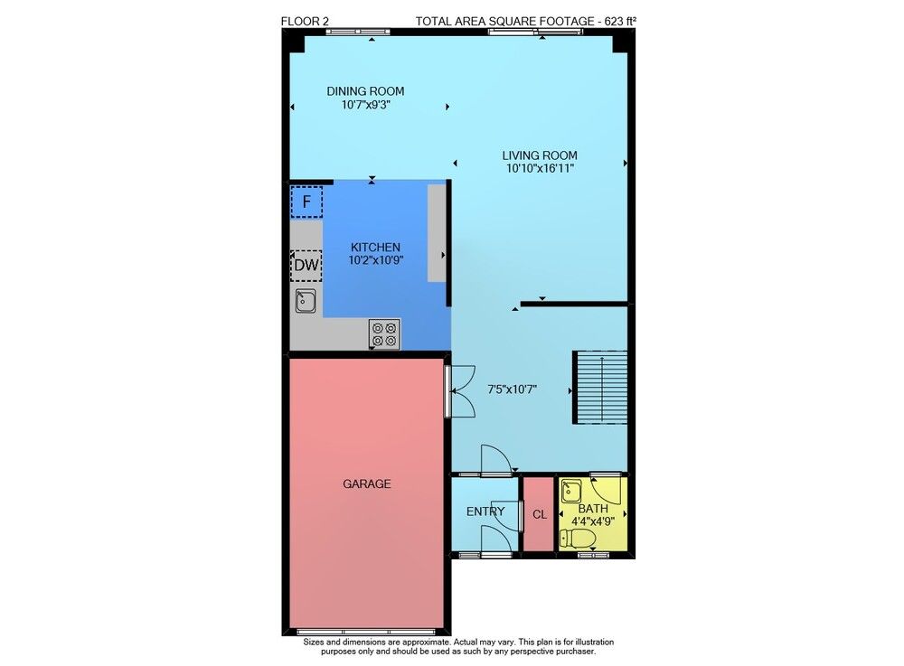 • Attached garage offers parking for two vehicles and extra storage.