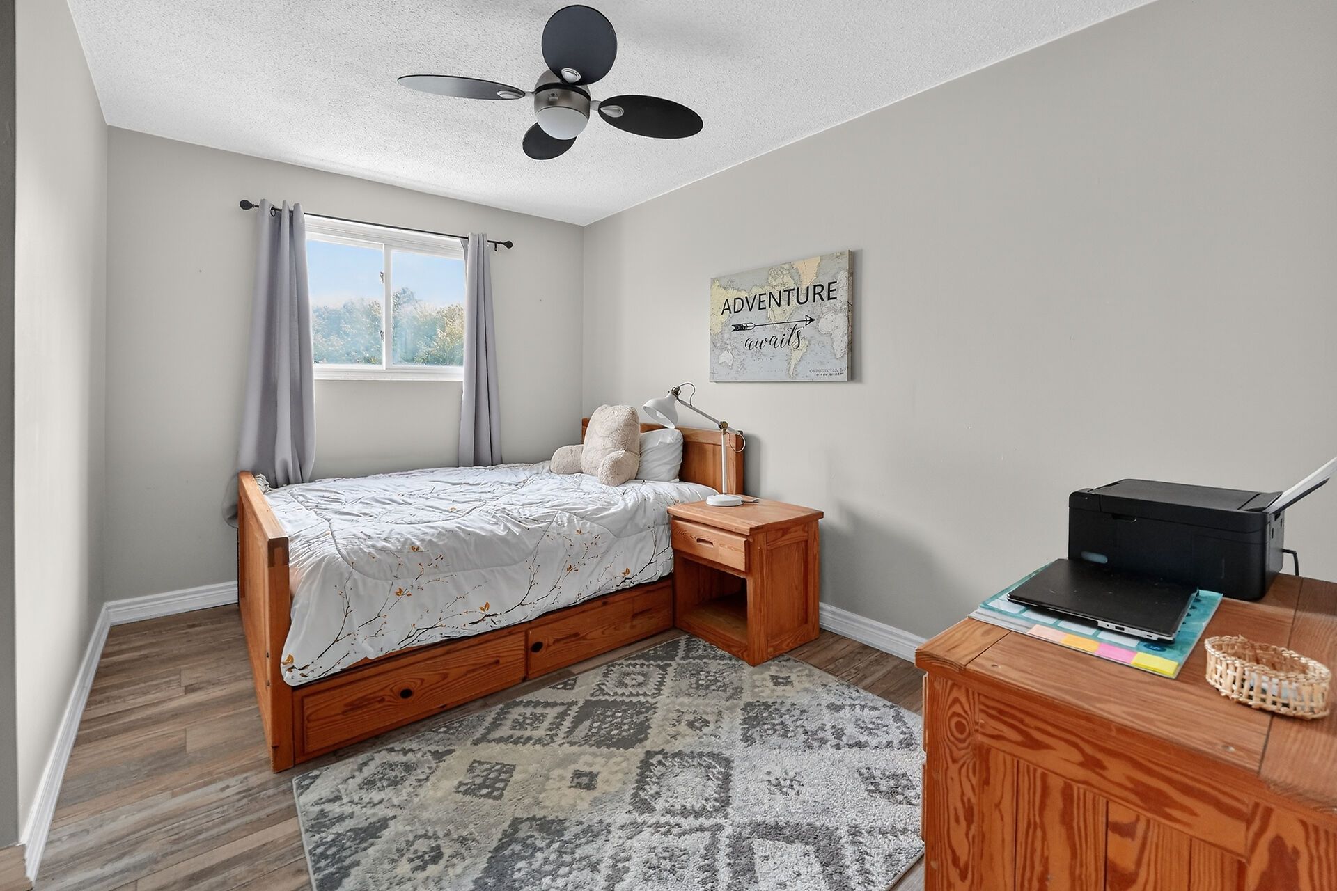 • Large family room in the basement, perfect for movie nights.