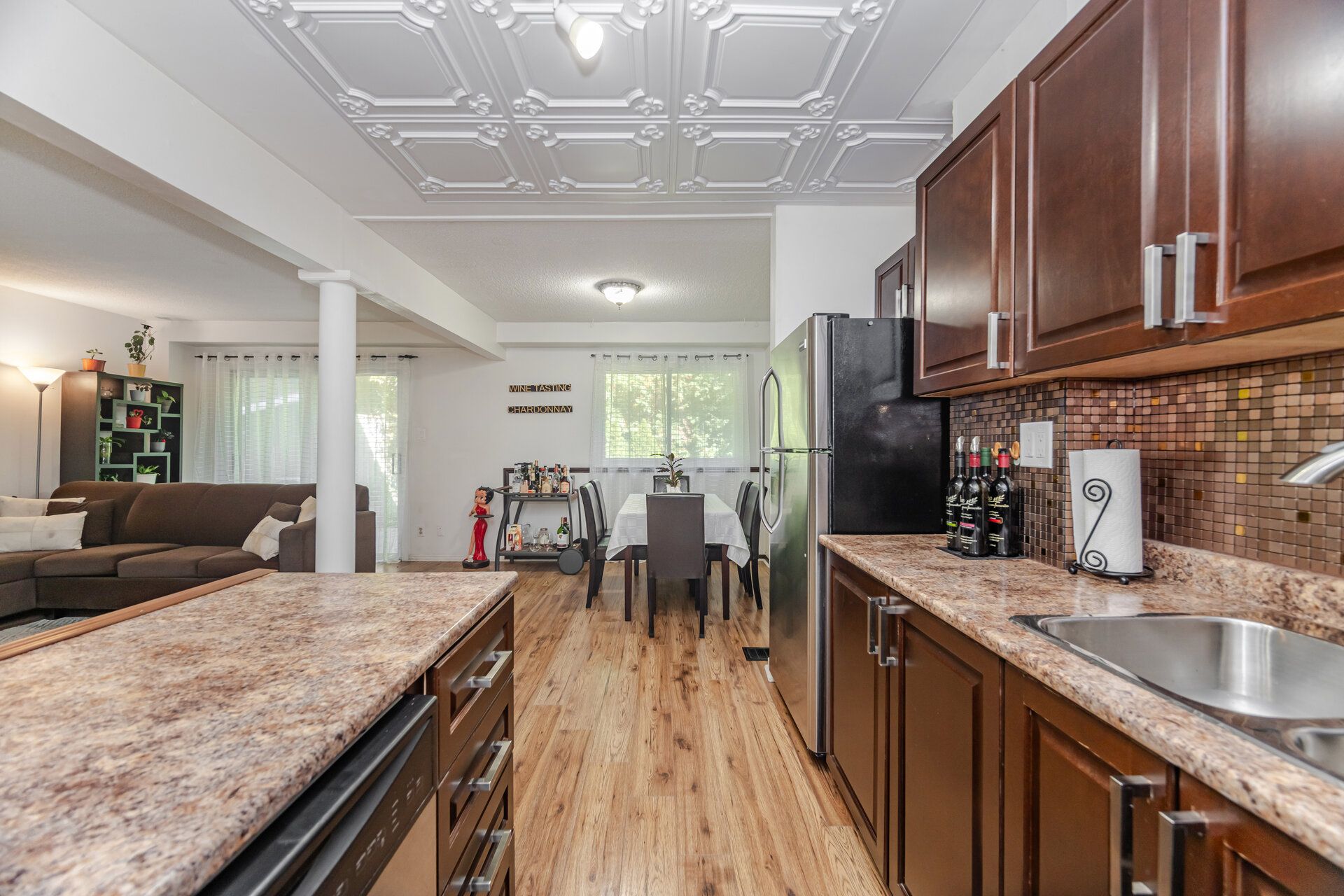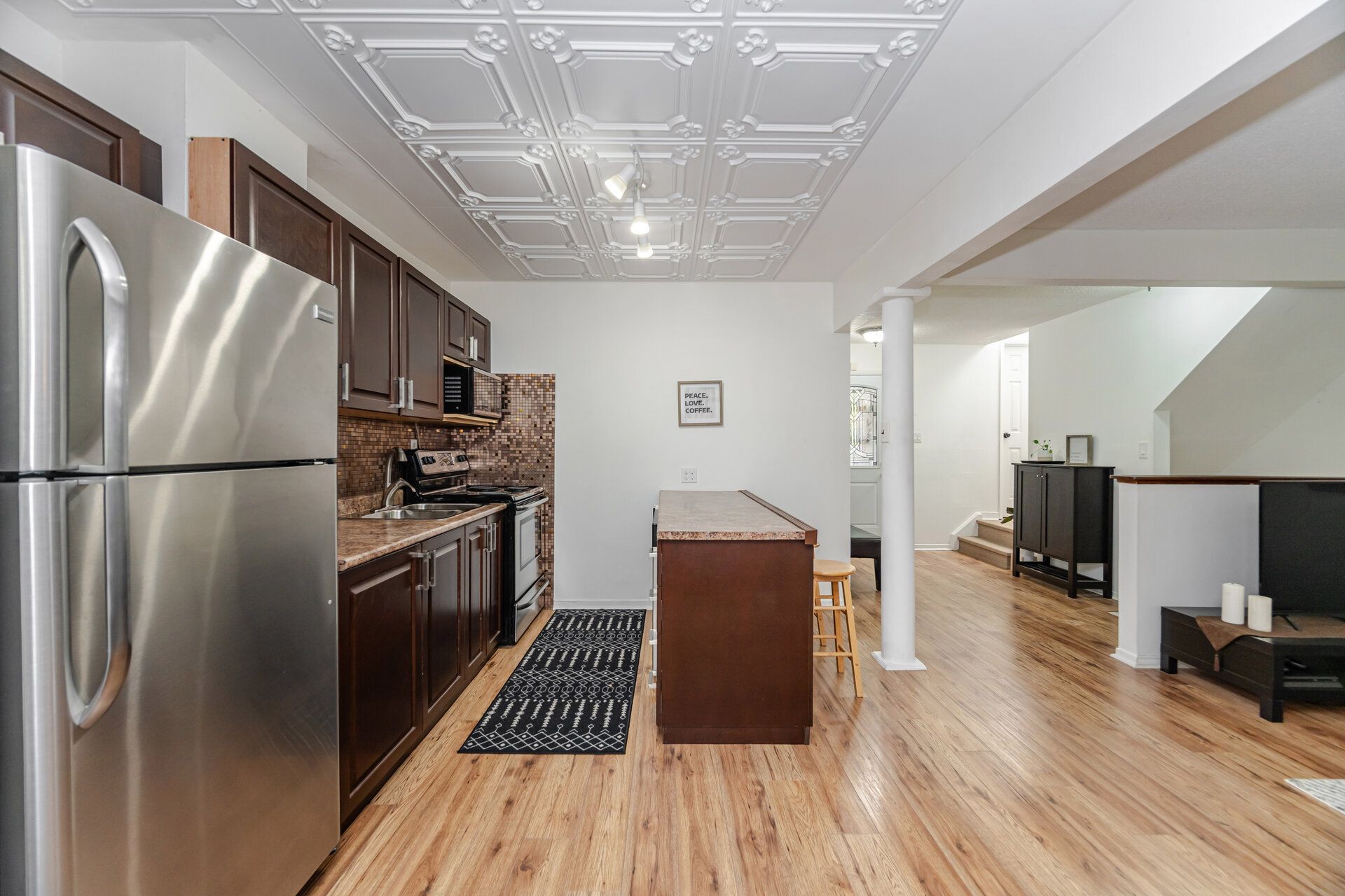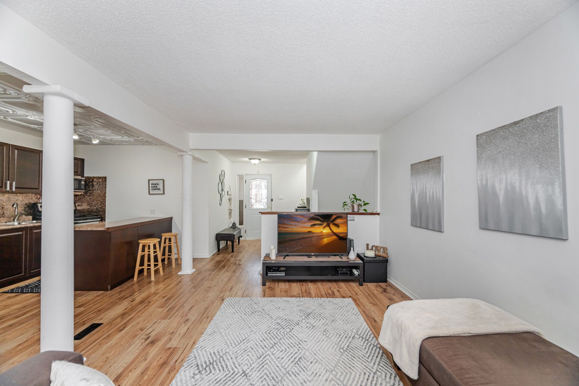 • Bright open-concept kitchen and living area filled with natural light.