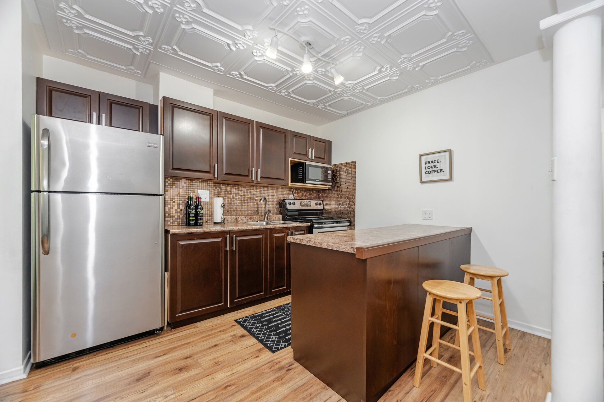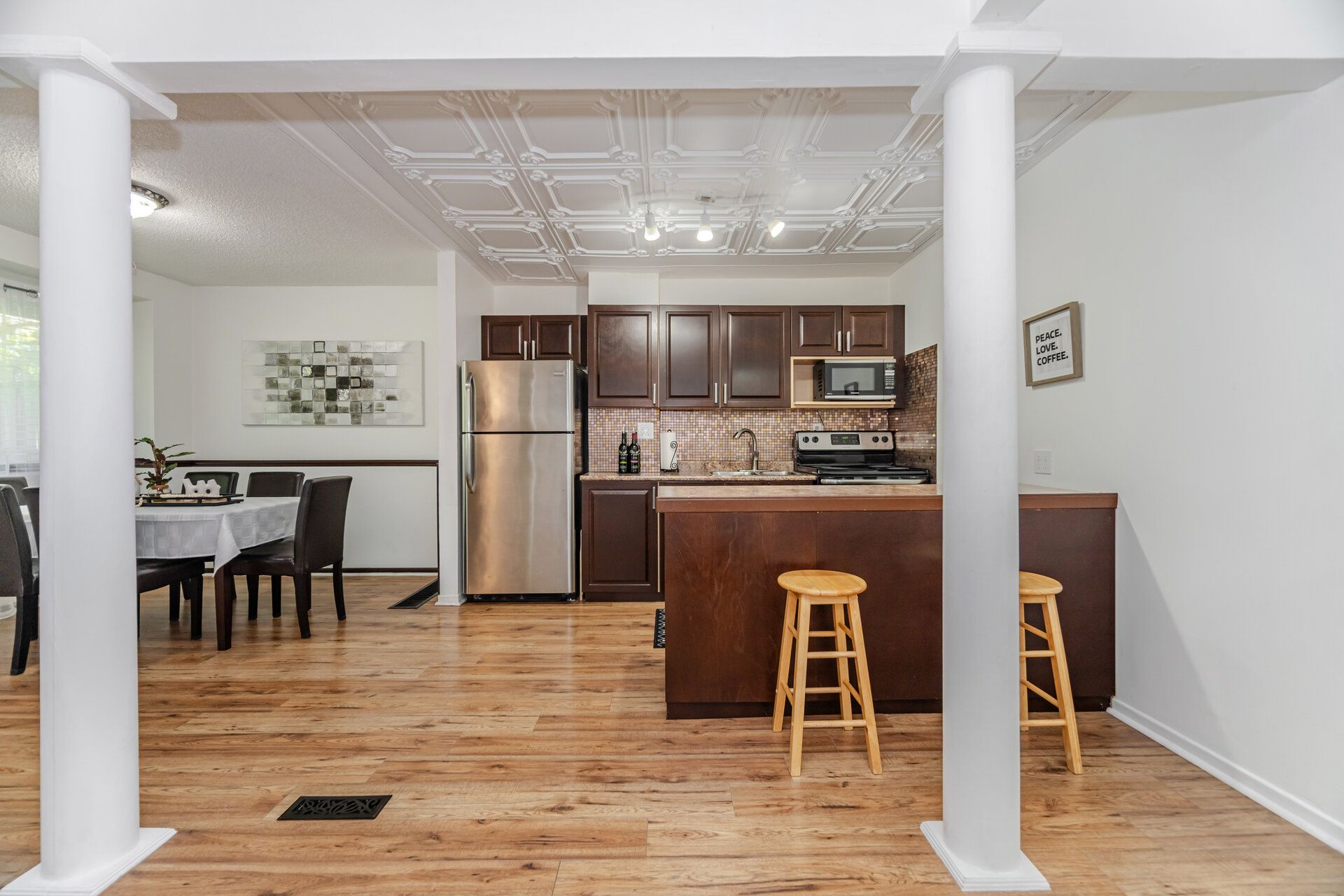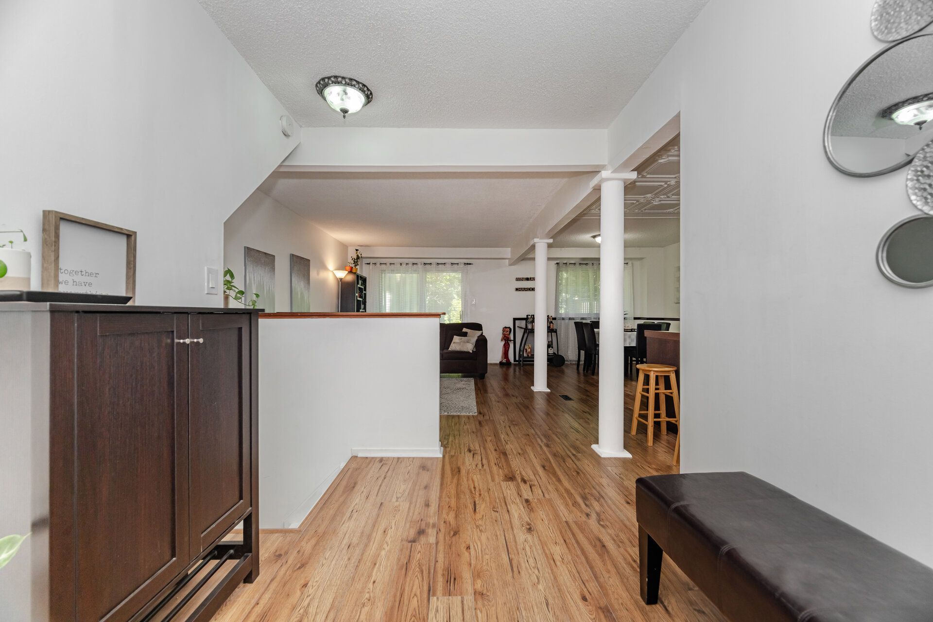 • Bright open-concept kitchen and living area filled with natural light.