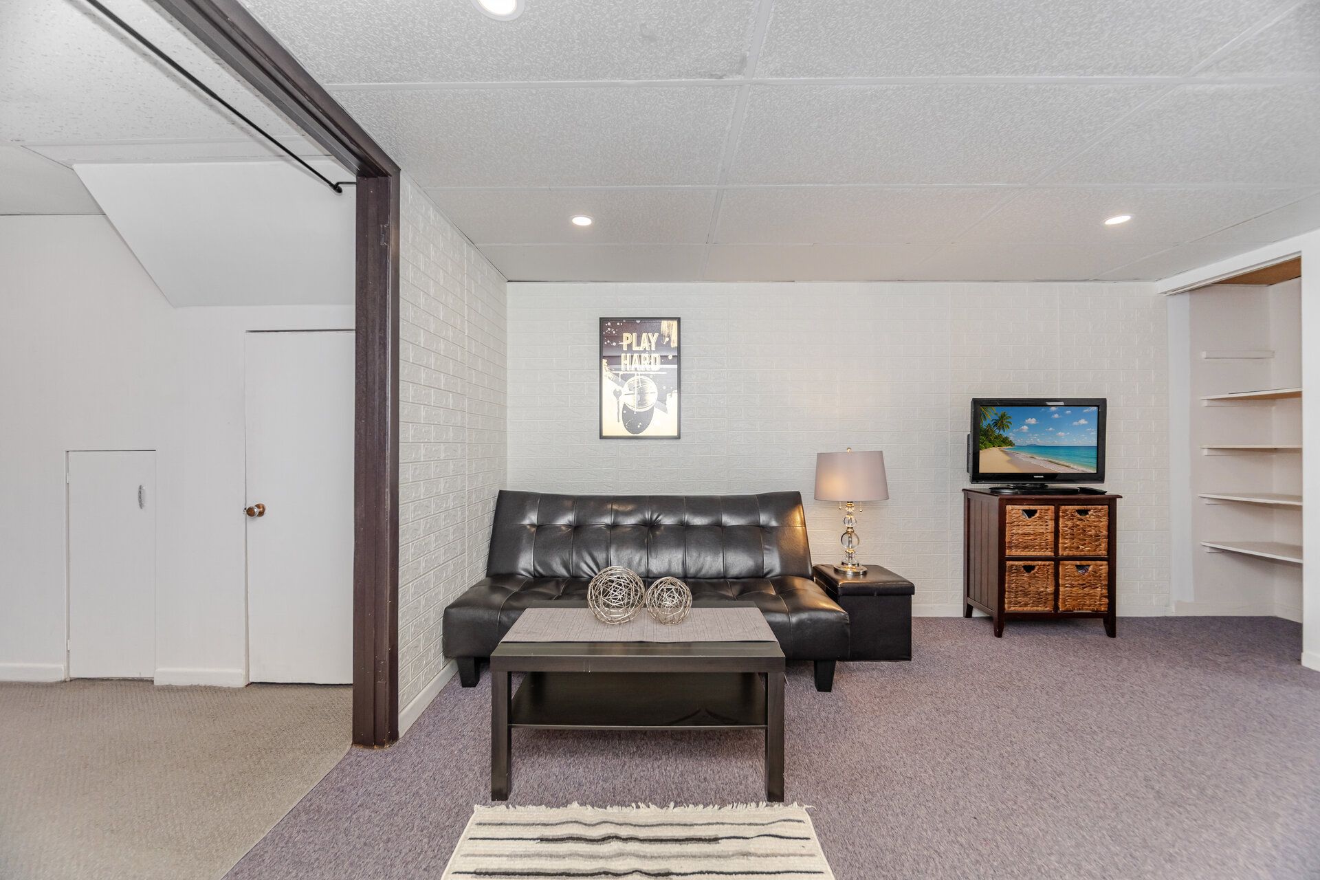 • Versatile finished lower level for a playroom, gym, or office.