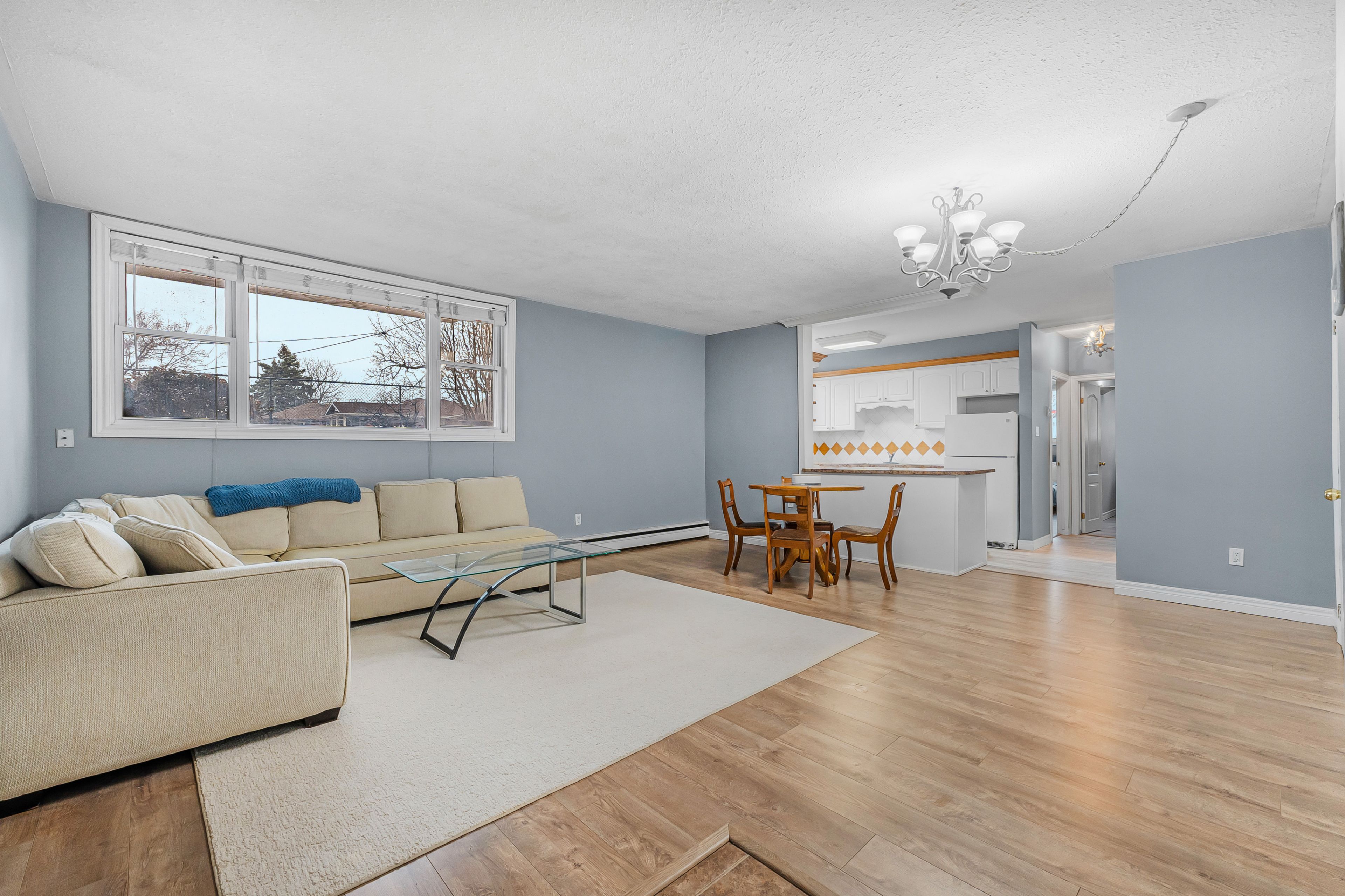 Easy to view: amazing value in the north end of st. Catharines minutes from the lake with easy qew access. Discover the perfect blend of comfort and convenience in this meticulously updated 2-bedroom condo. The interior boasts an expansive open-concept living, dining, and kitchen area highlighted by modern flooring and a neutral, welcoming palette. The kitchen is modern with its large peninsula and ample cabinetry, while the fully renovated bathroom features a sophisticated surround. Positioned for privacy with no neighbours on one side, this unit offers easy access to laundry facilities. Located in a vibrant neighbourhood directly across from pearson park, walking trails, library, indoor pool, and outdoor splash pad. Stop paying rent... This is the one!!!!