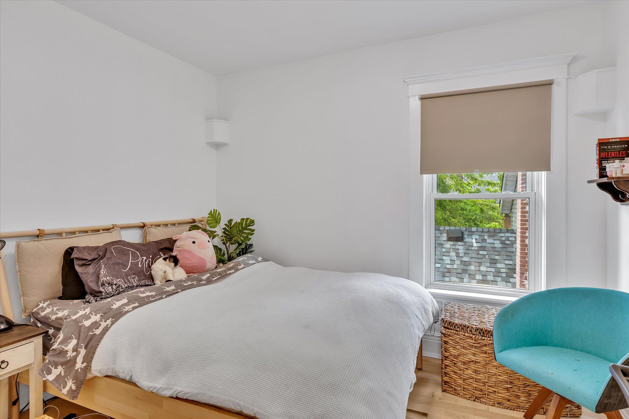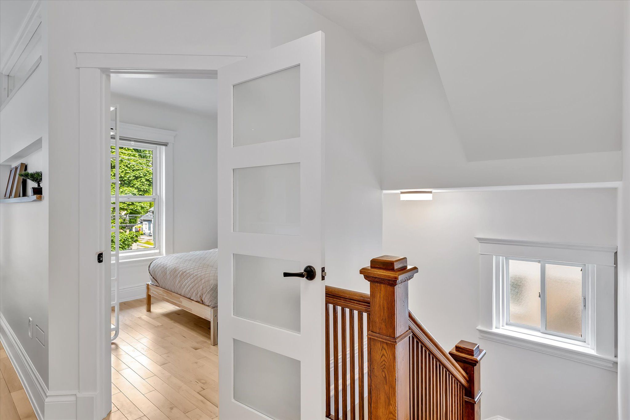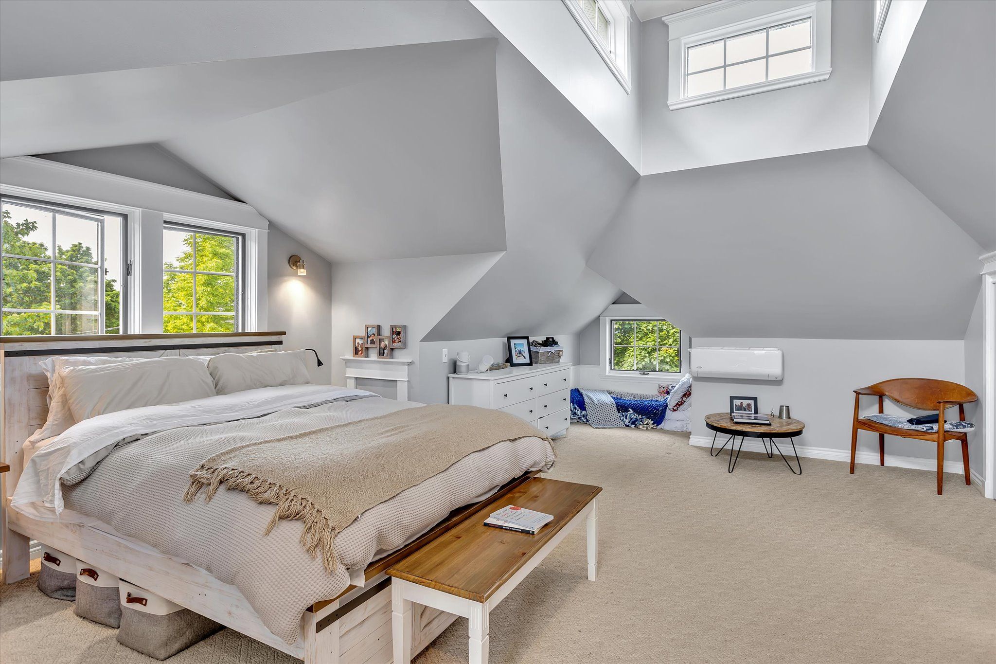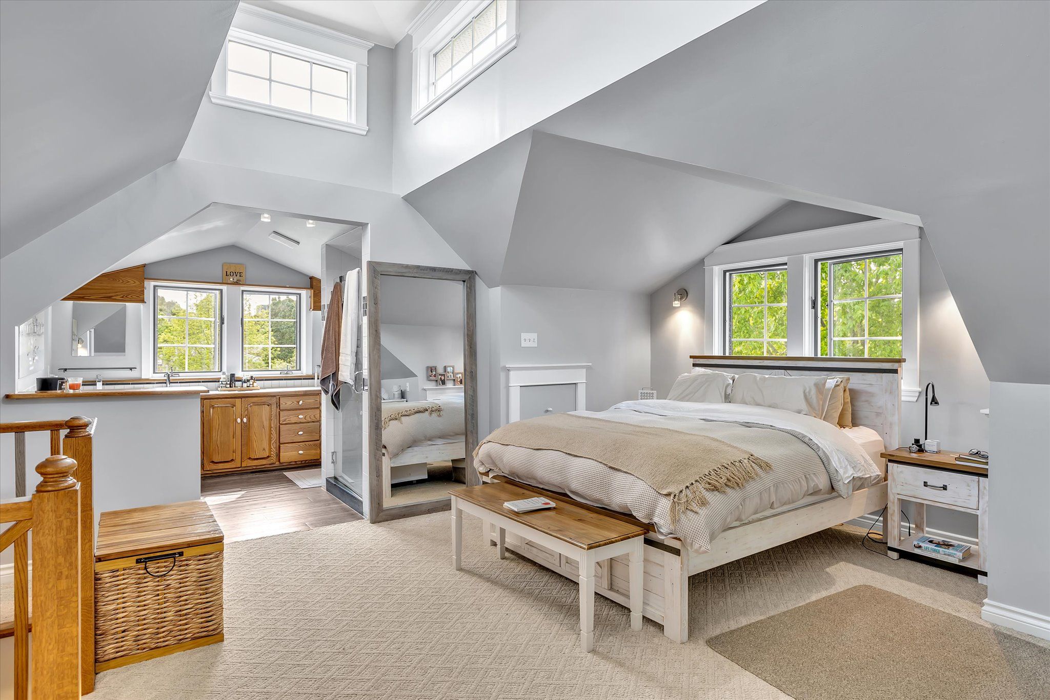 • Private primary bedroom on the third story with vaulted ceilings.
