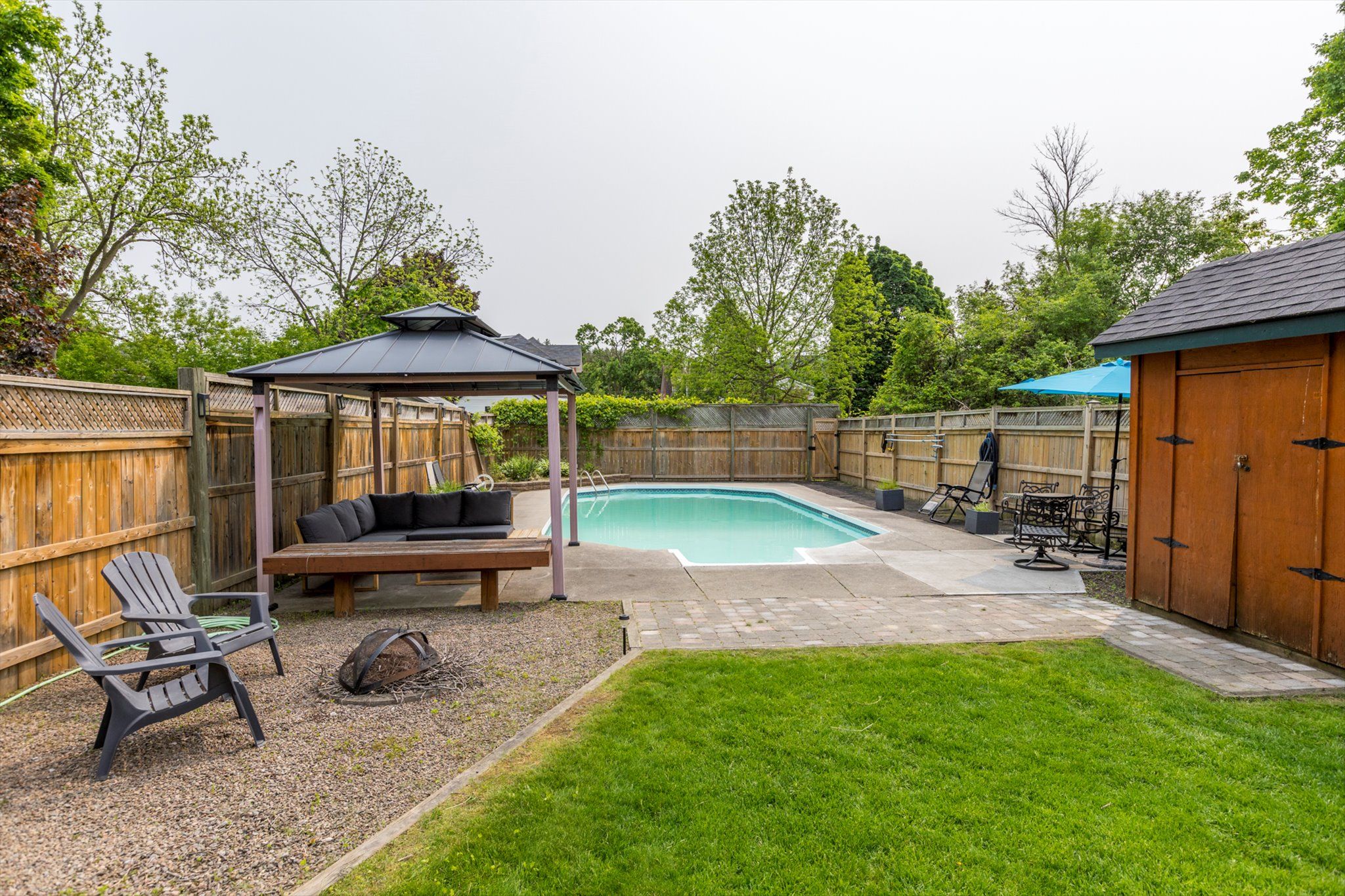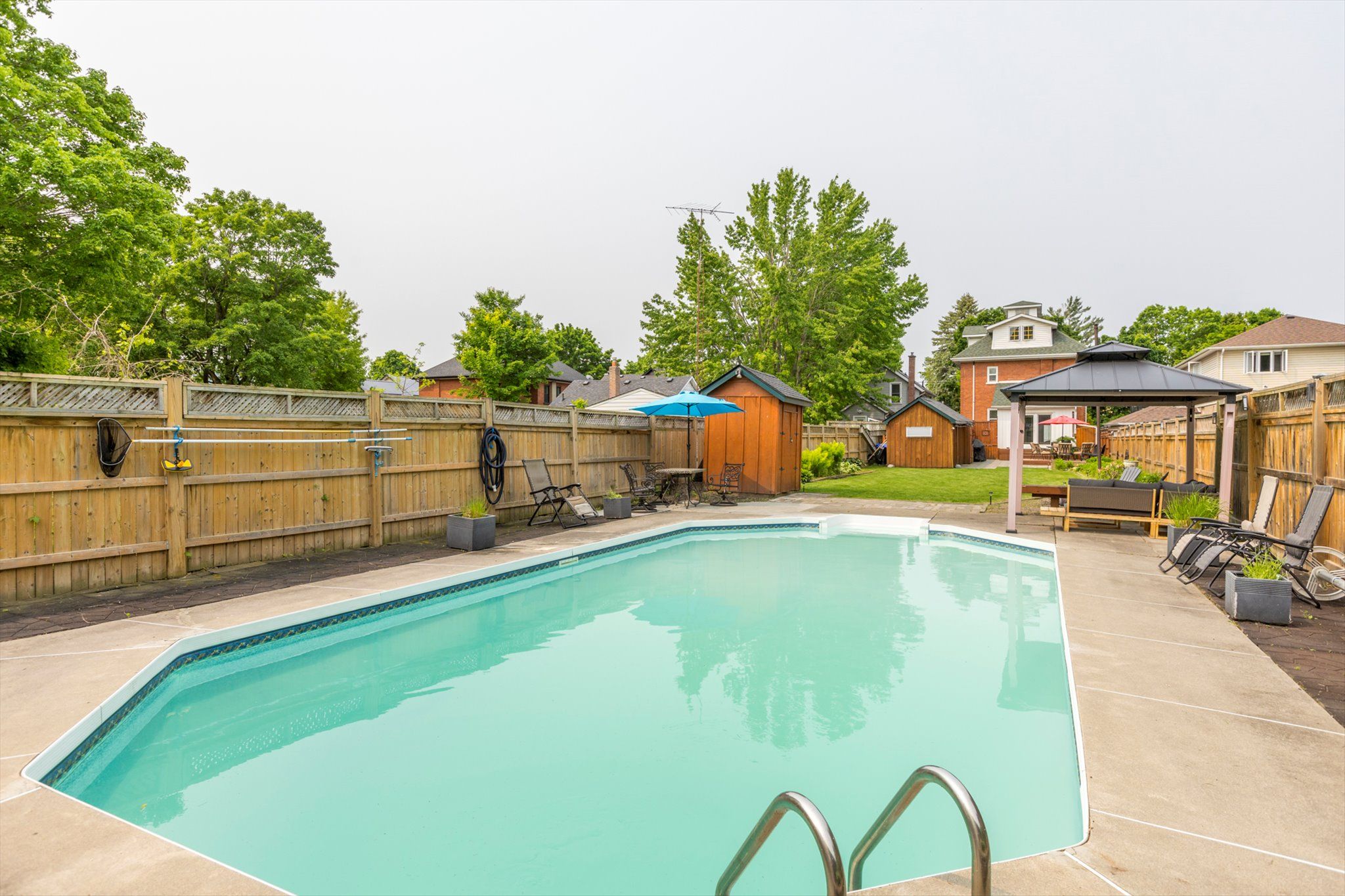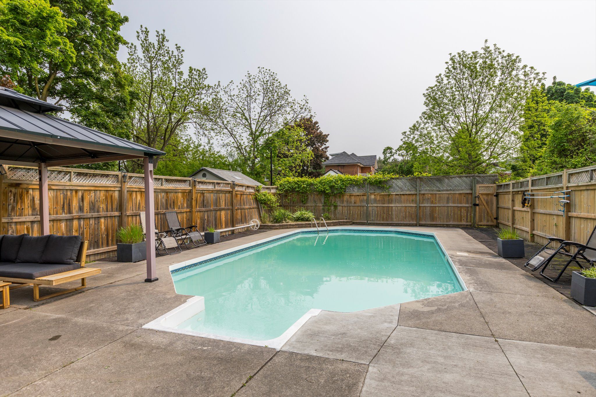 • Heated salt-water pool in a gorgeous lot for summer fun.