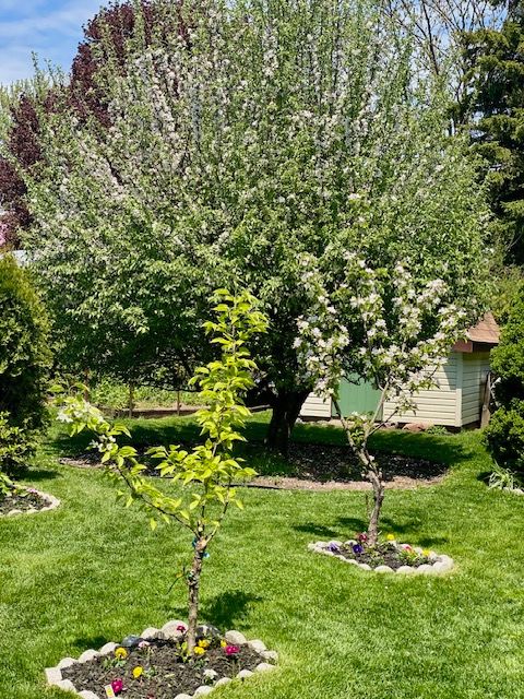 • Private backyard with trees and a lovely apple tree for relaxation.