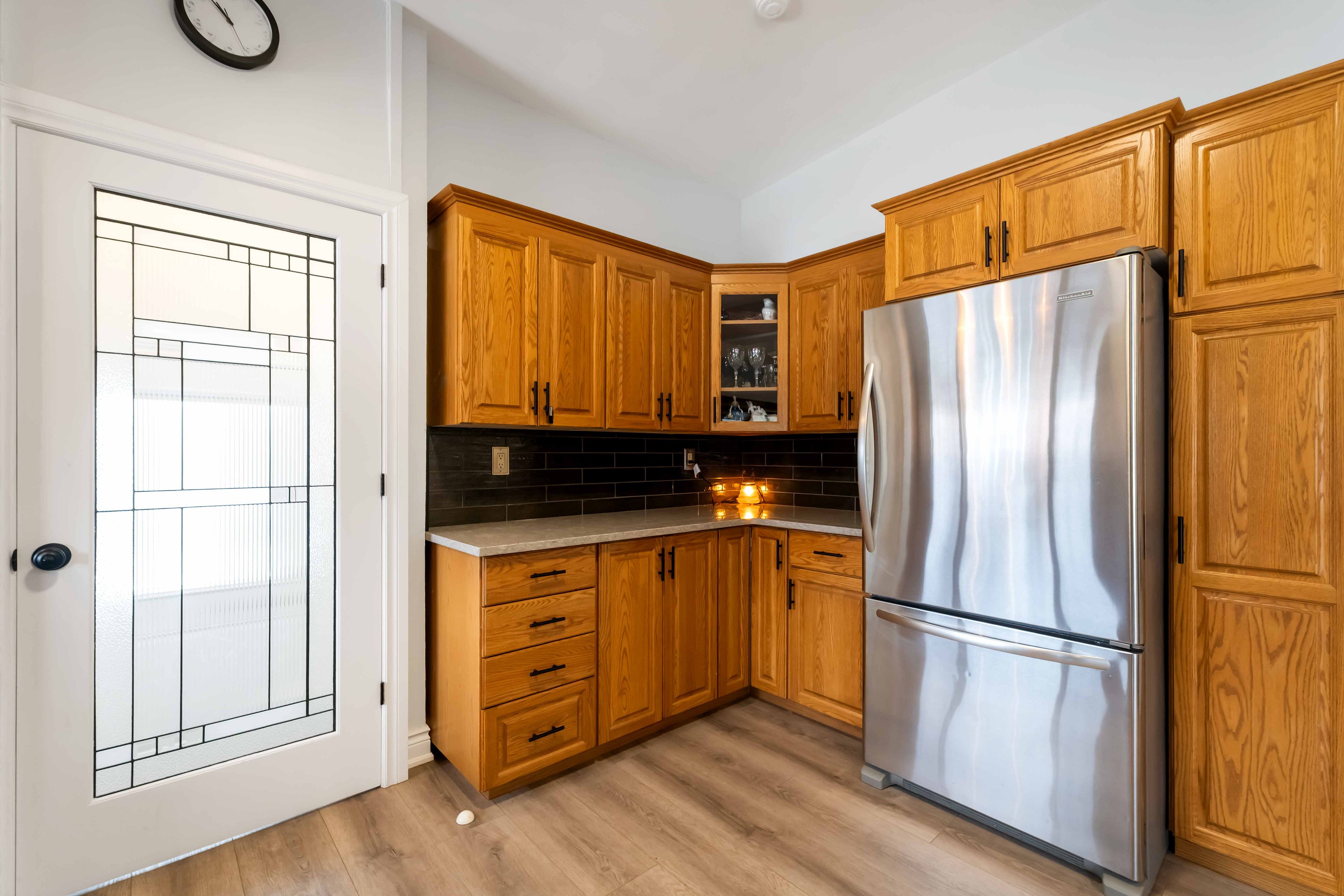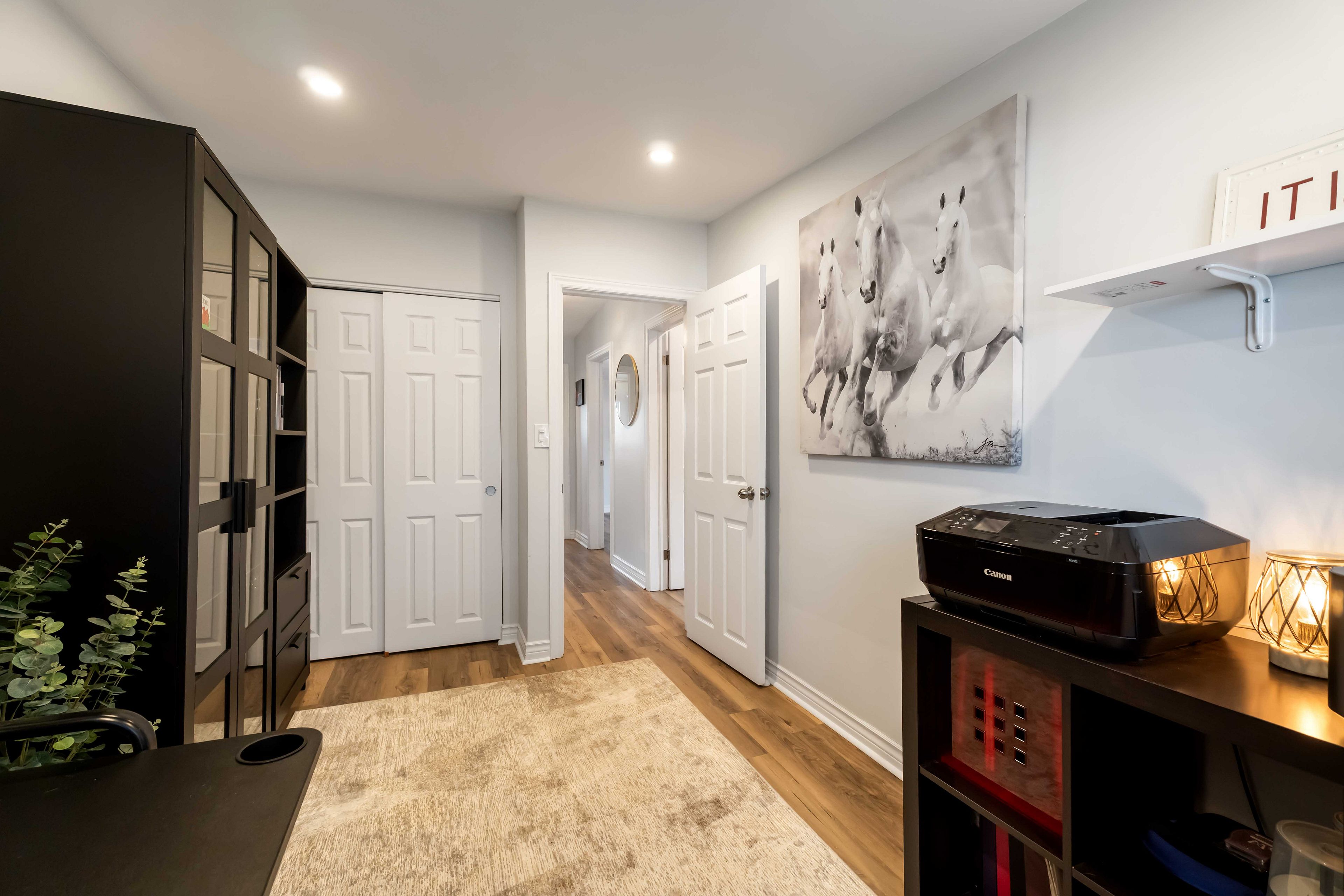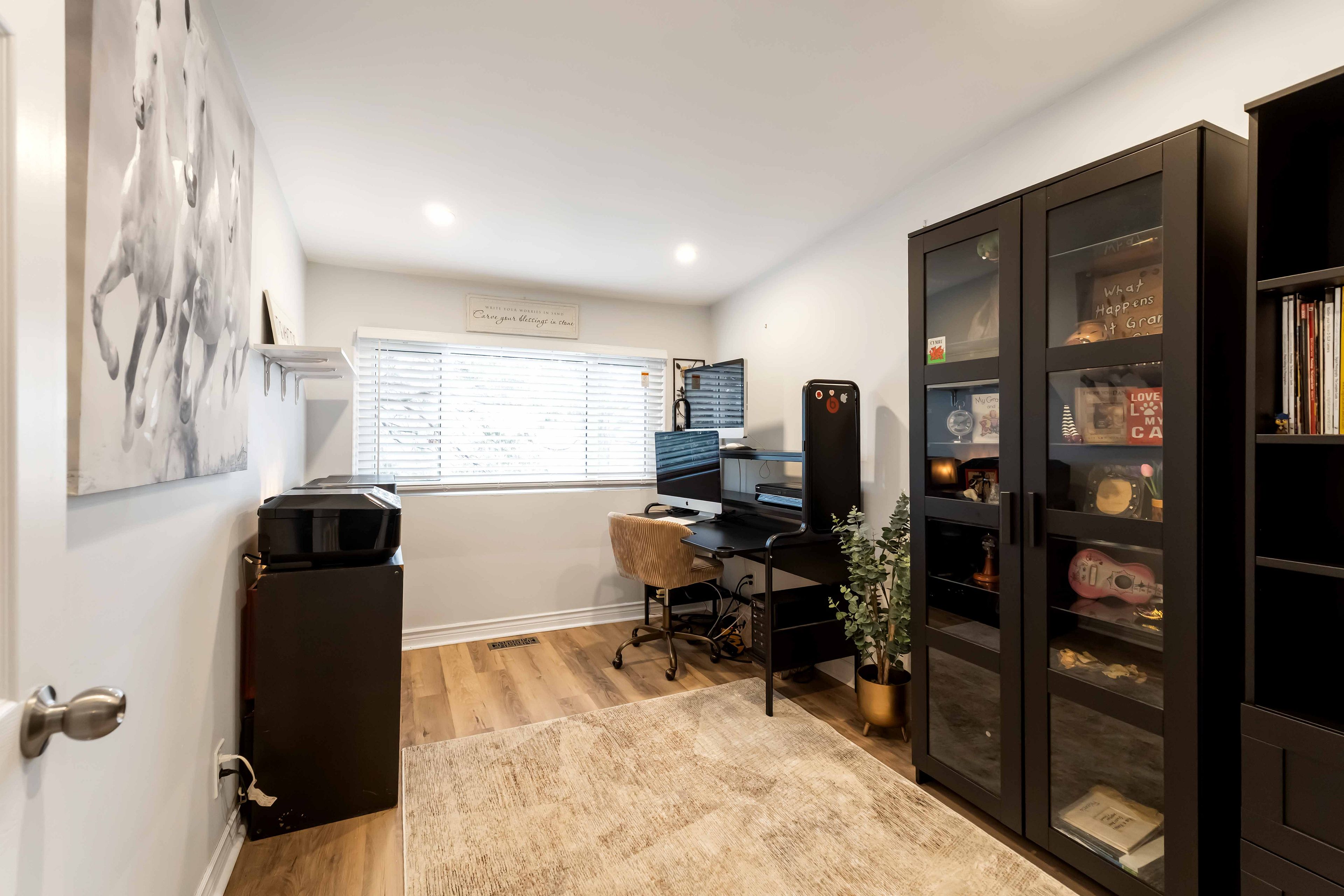 Bright, spacious, and meticulously maintained home on a large, irregular corner lot in a quiet, mature neighbourhood, just a short walk to cherrywood acres public school. Enjoy a private, tree lined backyard with a lovely apple tree. High ceilings and large windows fill the home with natural light. The living room features a beautiful fireplace feature wall and flows nicely from the kitchen, making it perfect for everyday living and entertaining. The kitchen combines classic oak cabinetry with modern touches including quartz countertops, new backsplash and stainless steel appliances. A split bedroom wing, set a few steps up, adds privacy from the main living area. Flexible layout with 3 bedrooms on the main level, while the lower level can easily serve as 2 extra bedrooms or a large family room plus an additional bedroom or multi purpose room, depending on your needs. Additional highlights include an attached garage with a rear workshop area. Roof (2013), windows and doors (2011), furnace (2019), a/c (2019), and brand new luxury vinyl flooring throughout, backsplash in kitchen and oven. A fantastic opportunity in a family friendly neighbourhood.