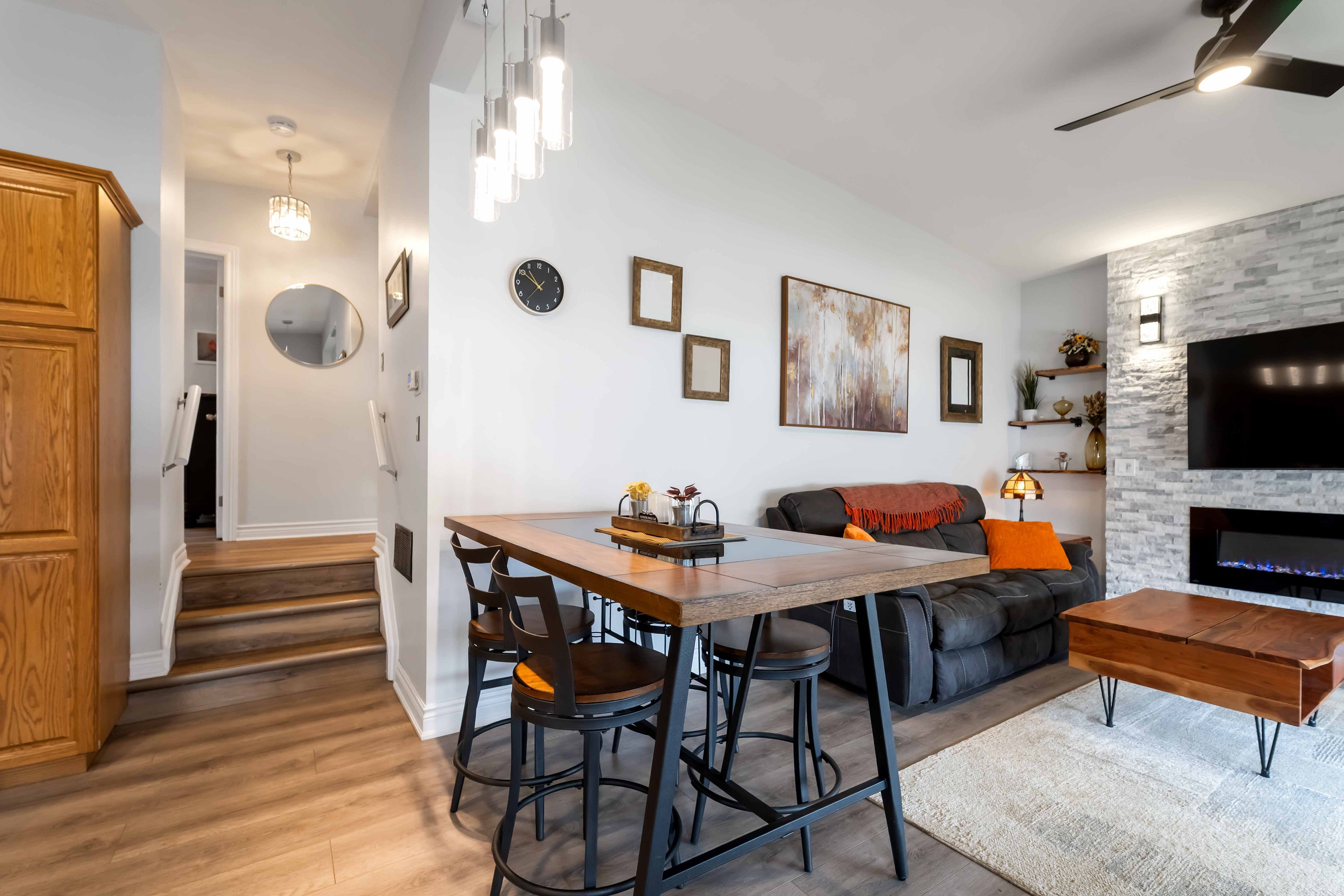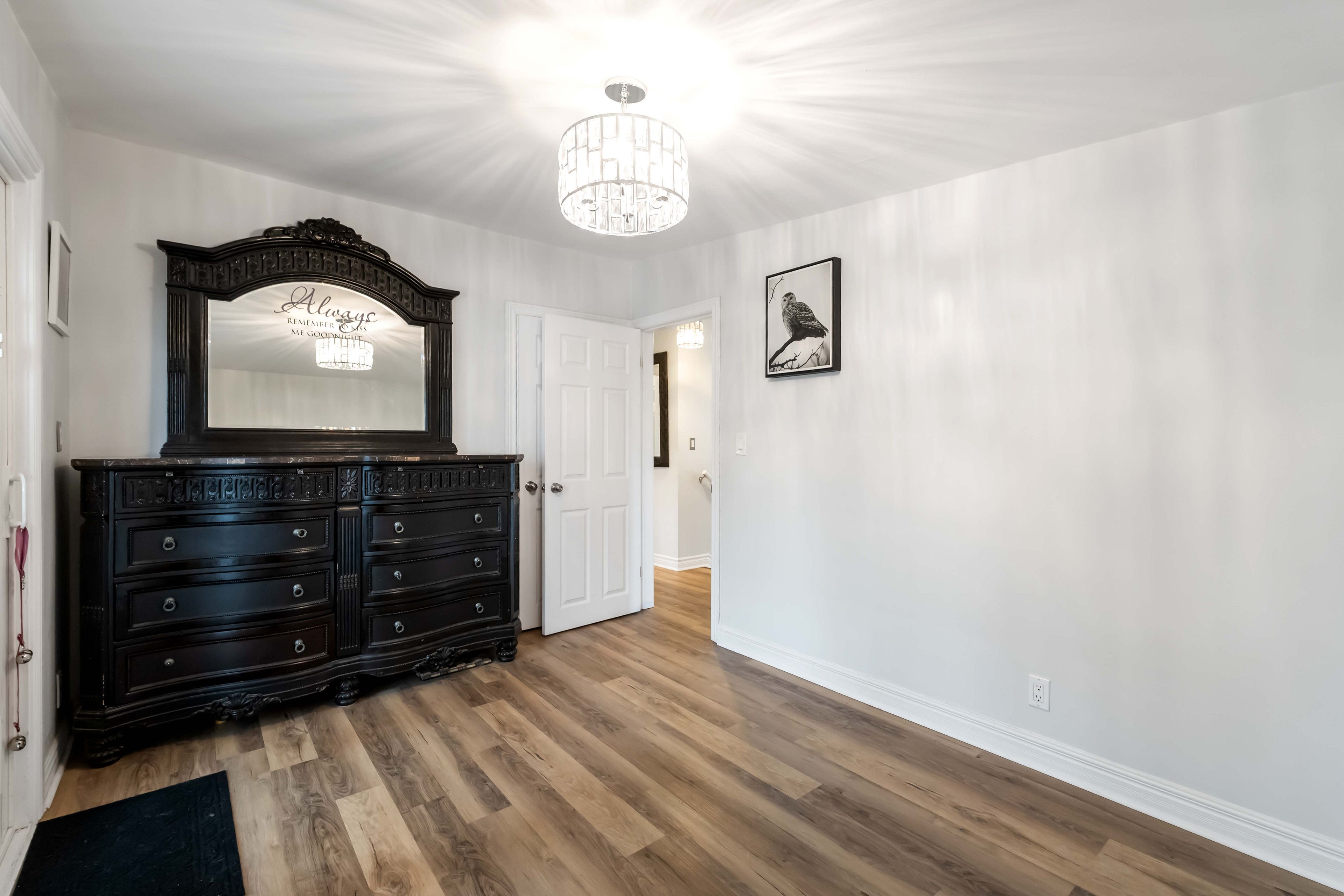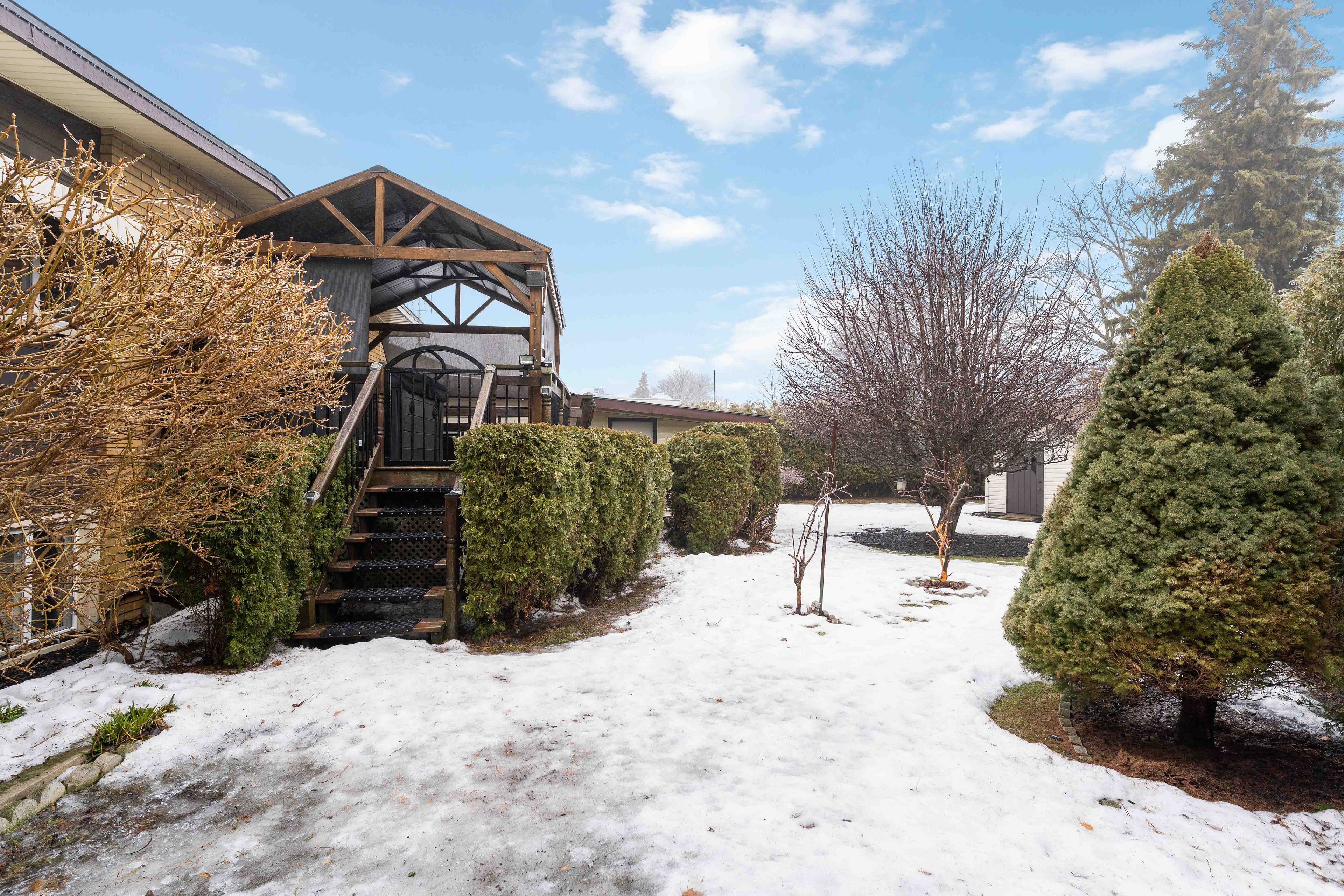 Bright, spacious, and meticulously maintained home on a large, irregular corner lot in a quiet, mature neighbourhood, just a short walk to cherrywood acres public school. Enjoy a private, tree lined backyard with a lovely apple tree. High ceilings and large windows fill the home with natural light. The living room features a beautiful fireplace feature wall and flows nicely from the kitchen, making it perfect for everyday living and entertaining. The kitchen combines classic oak cabinetry with modern touches including quartz countertops, new backsplash and stainless steel appliances. A split bedroom wing, set a few steps up, adds privacy from the main living area. Flexible layout with 3 bedrooms on the main level, while the lower level can easily serve as 2 extra bedrooms or a large family room plus an additional bedroom or multi purpose room, depending on your needs. Additional highlights include an attached garage with a rear workshop area. Roof (2013), windows and doors (2011), furnace (2019), a/c (2019), and brand new luxury vinyl flooring throughout, backsplash in kitchen and oven. A fantastic opportunity in a family friendly neighbourhood.