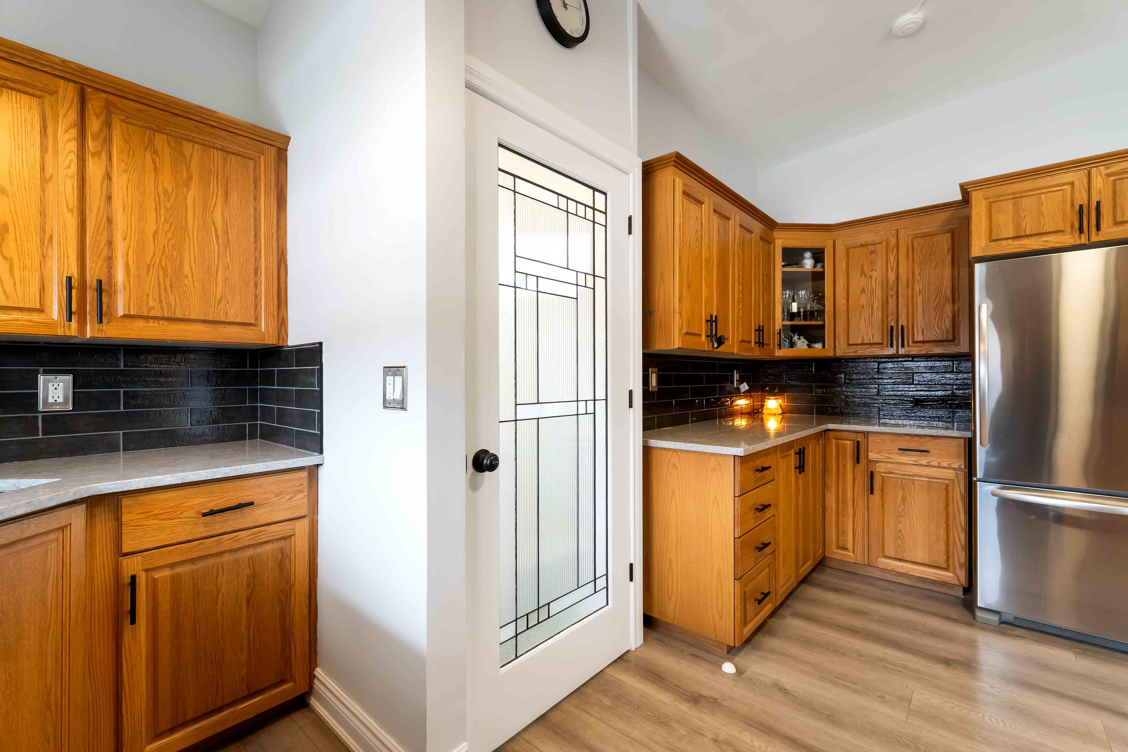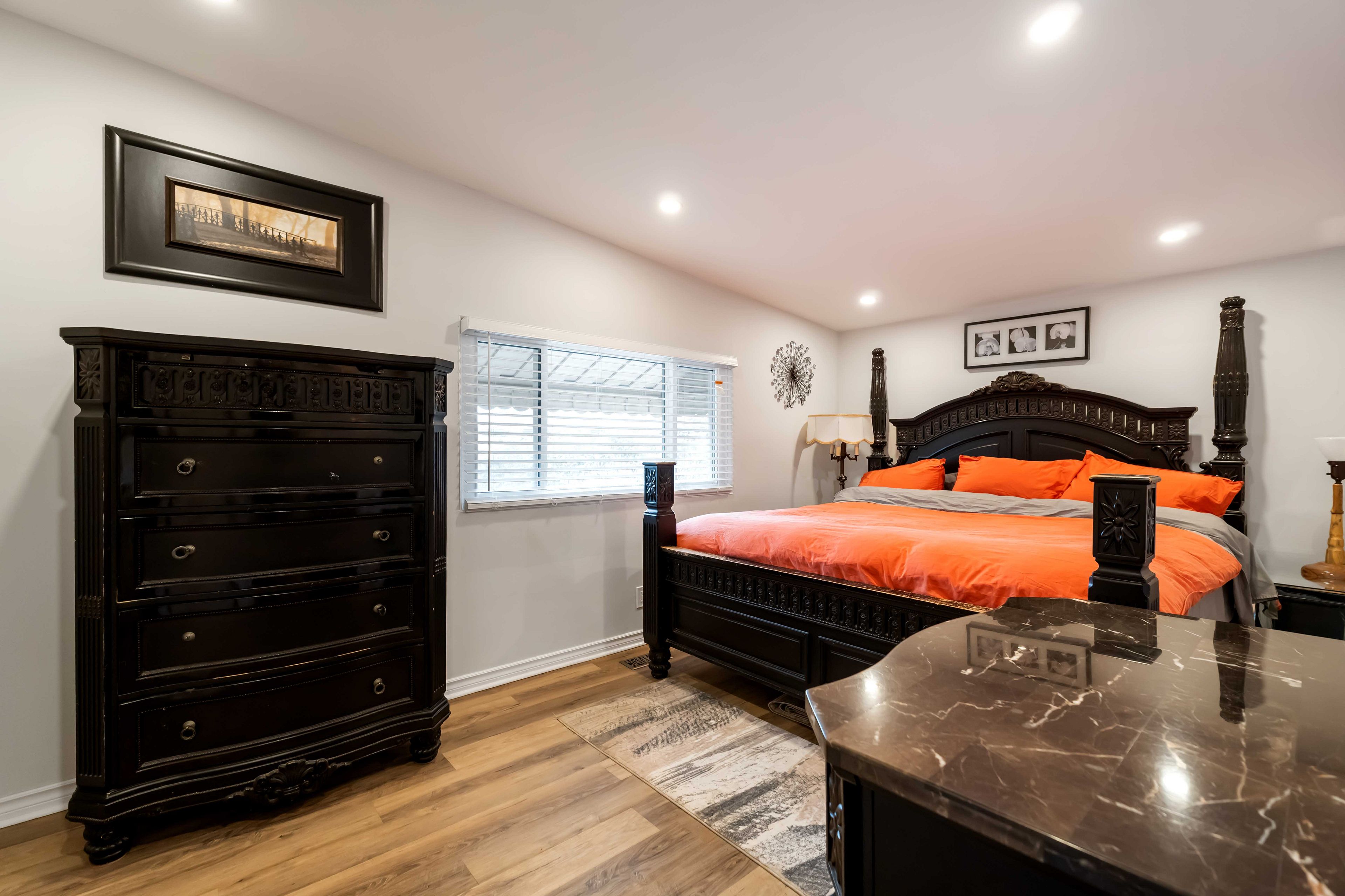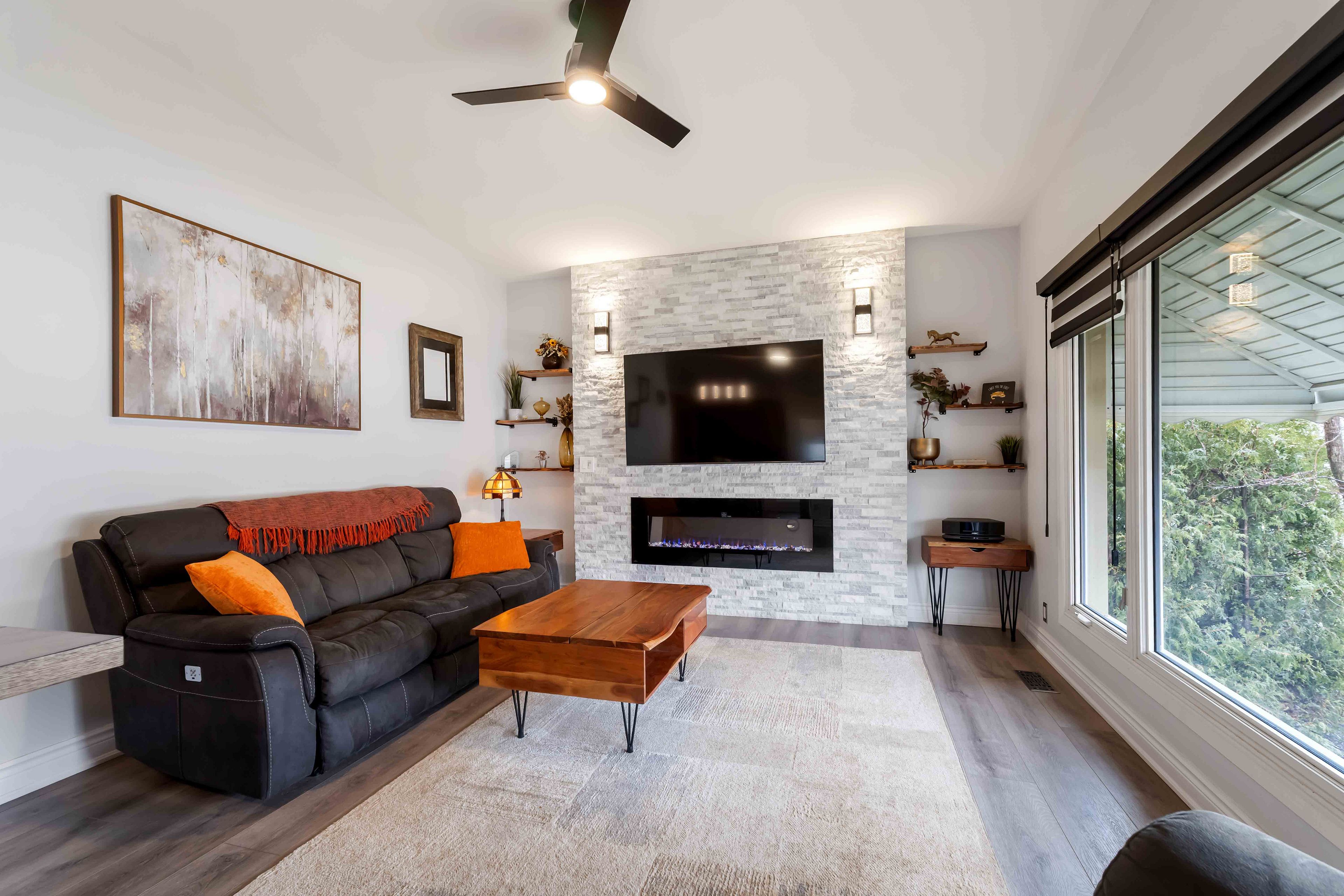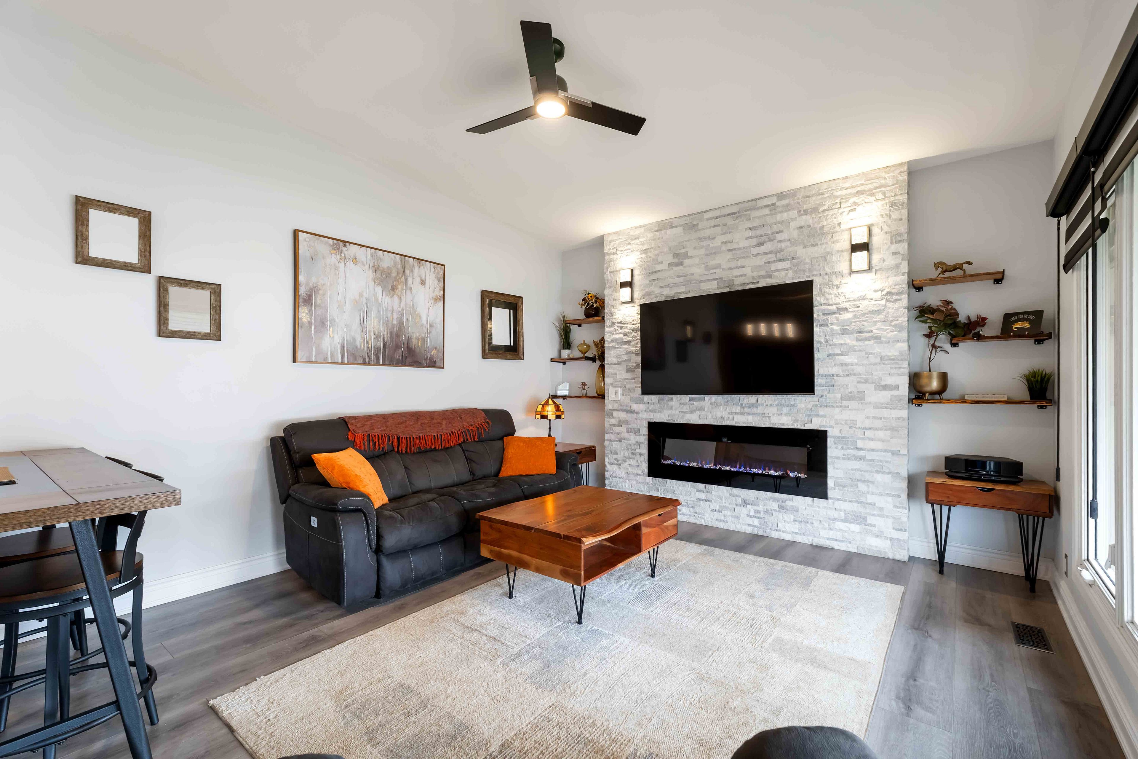 Bright, spacious, and meticulously maintained home on a large, irregular corner lot in a quiet, mature neighbourhood, just a short walk to cherrywood acres public school. Enjoy a private, tree lined backyard with a lovely apple tree. High ceilings and large windows fill the home with natural light. The living room features a beautiful fireplace feature wall and flows nicely from the kitchen, making it perfect for everyday living and entertaining. The kitchen combines classic oak cabinetry with modern touches including quartz countertops, new backsplash and stainless steel appliances. A split bedroom wing, set a few steps up, adds privacy from the main living area. Flexible layout with 3 bedrooms on the main level, while the lower level can easily serve as 2 extra bedrooms or a large family room plus an additional bedroom or multi purpose room, depending on your needs. Additional highlights include an attached garage with a rear workshop area. Roof (2013), windows and doors (2011), furnace (2019), a/c (2019), and brand new luxury vinyl flooring throughout, backsplash in kitchen and oven. A fantastic opportunity in a family friendly neighbourhood.