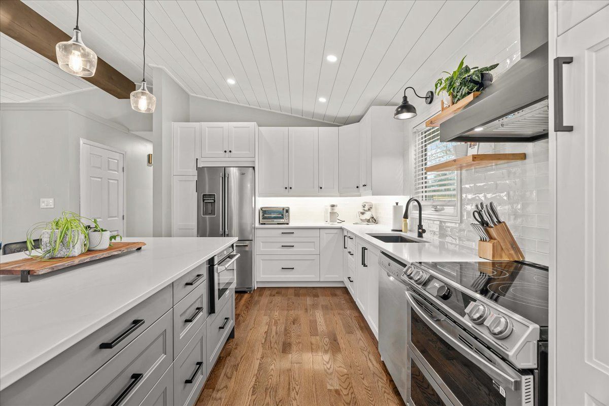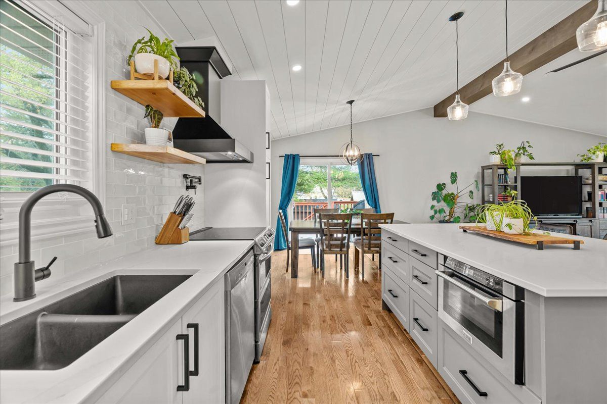 • Updated kitchen with custom cabinetry and quartz countertops for modern living.